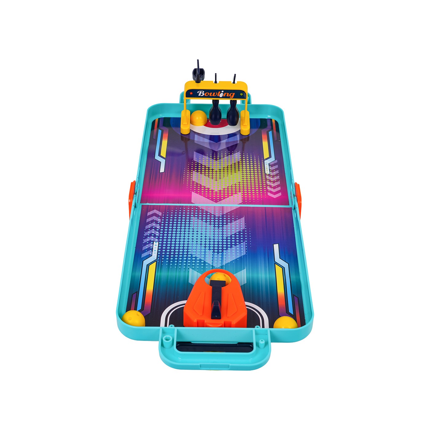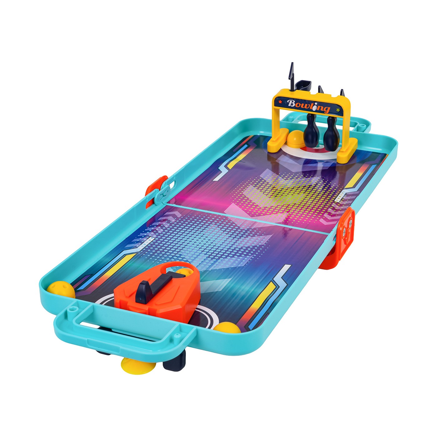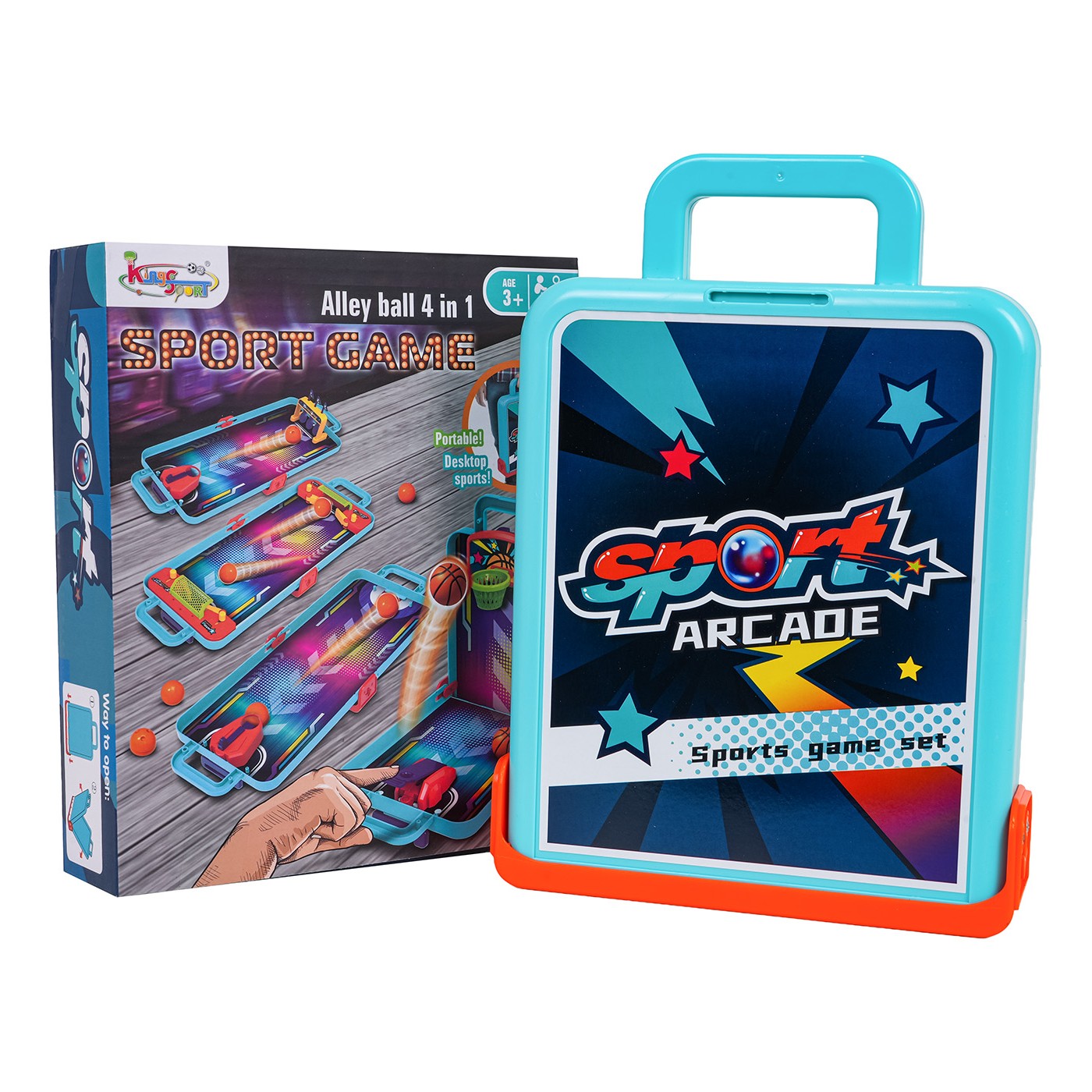 A 4-in-1 arcade game set for children aged three and up. Designed to fit into a compact suitcase, this compact set combines four games: air hockey, bowling, basketball, and pinball . Its compact size makes it easy to take the set with you anywhere and enjoy exciting entertainment wherever you go. Made of the highest quality materials and vibrant colors, the game improves hand-eye coordination, concentration, and fine motor skills.
