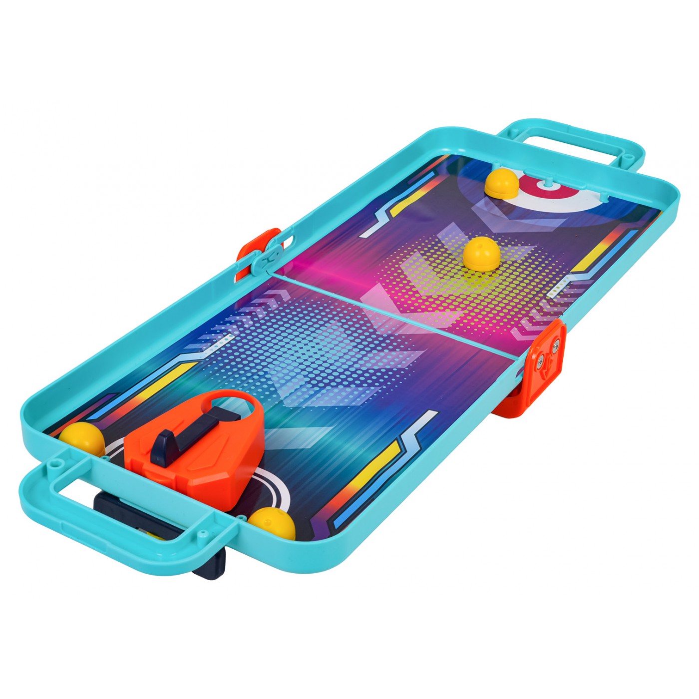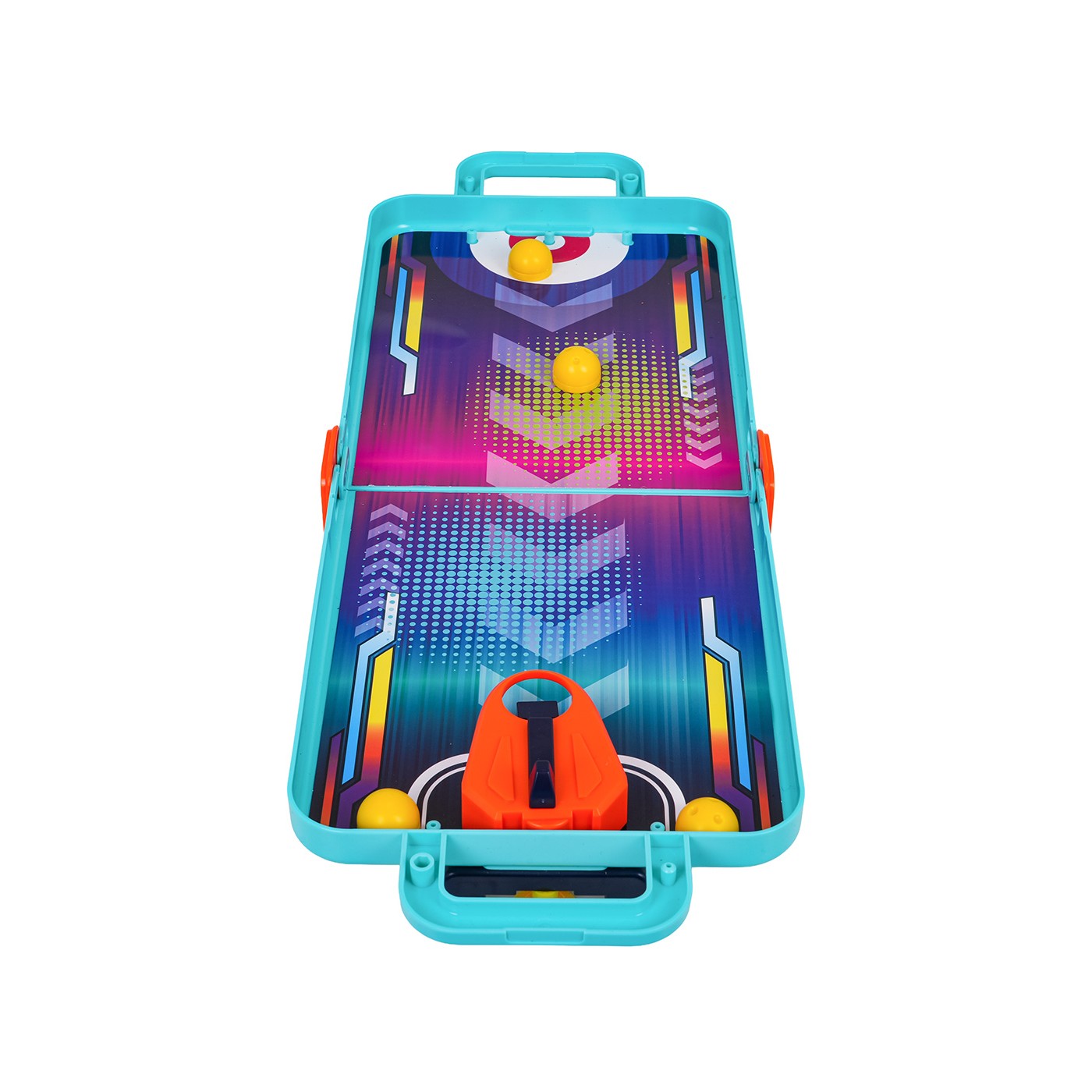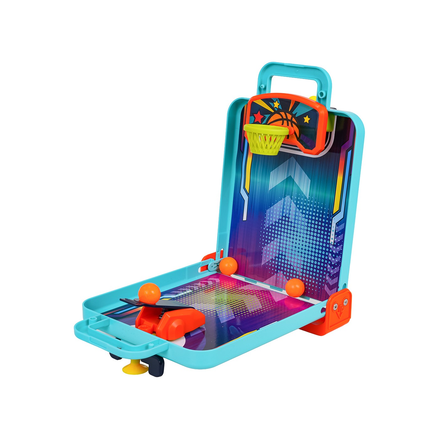 A 4-in-1 arcade game set for children aged three and up. Designed to fit into a compact suitcase, this compact set combines four games: air hockey, bowling, basketball, and pinball . Its compact size makes it easy to take the set with you anywhere and enjoy exciting entertainment wherever you go. Made of the highest quality materials and vibrant colors, the game improves hand-eye coordination, concentration, and fine motor skills.