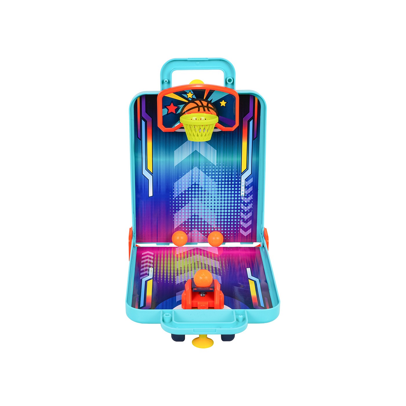 - suitcase, game board, - 3 x ball, - 2 x goal - bowling set, - 4 x disk, pinball gate , - basketball backboard, - launcher, - decorative stickers. |
