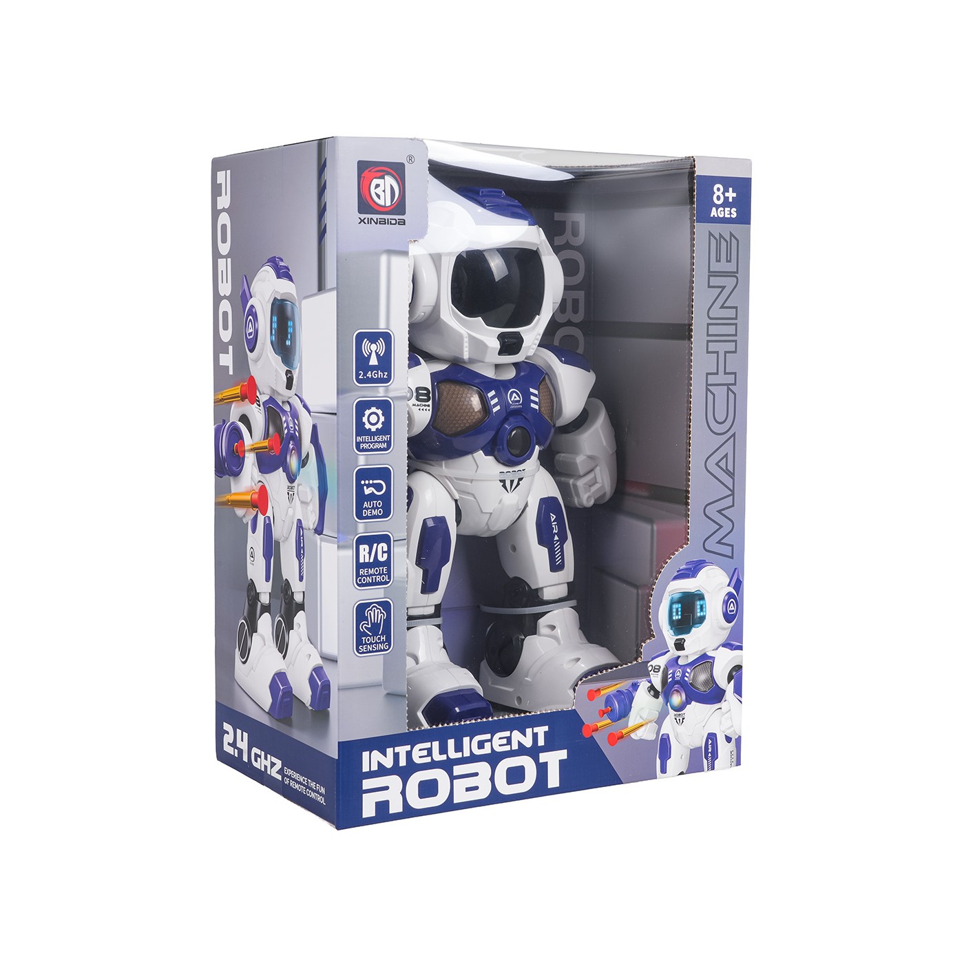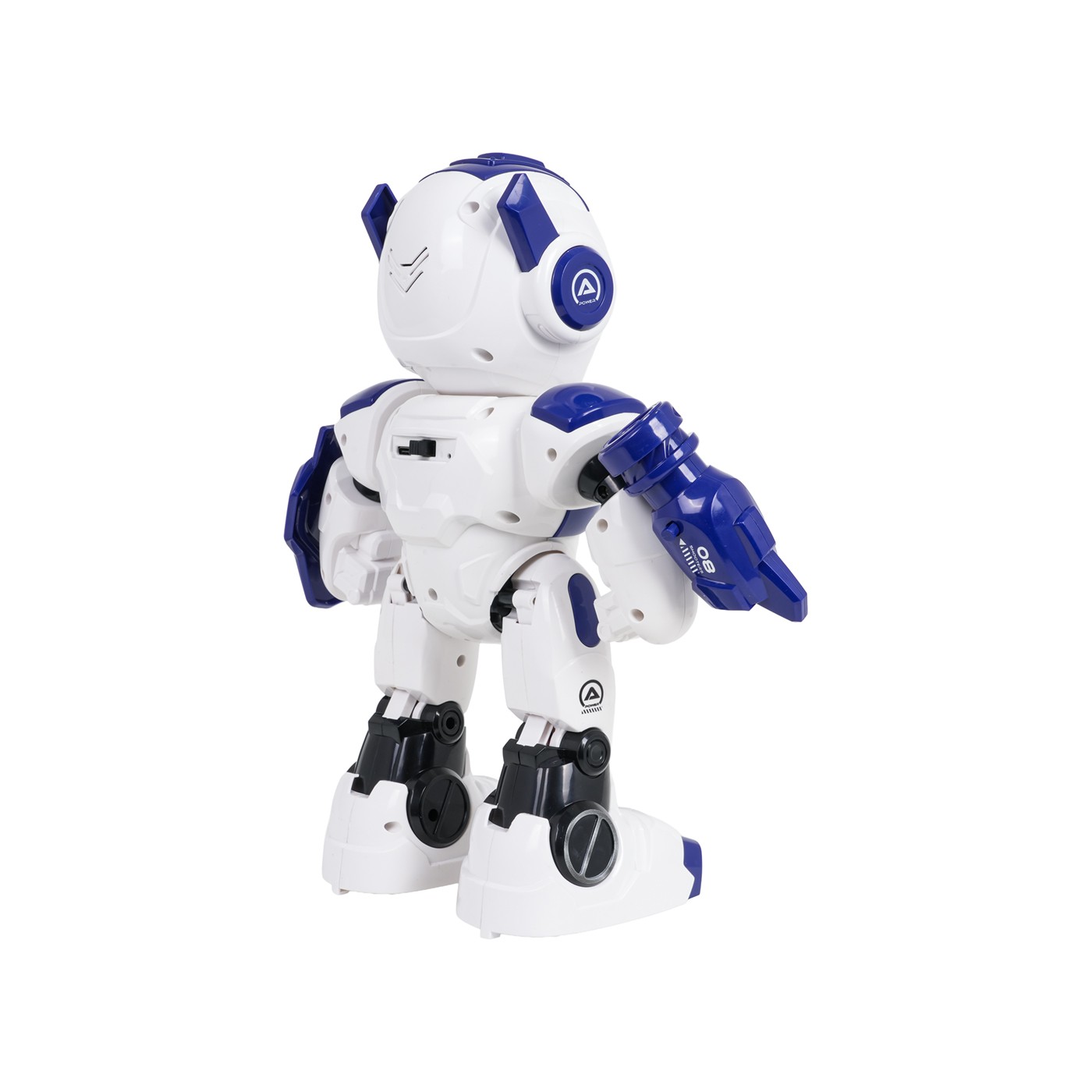 Features: - for children from eight years of age, - made of the best quality plastic, - light-up eyes and a button on the belly, - robot head touch sensor, - demo mode, - every minute a readiness command appears, - moves forward and backward, turns right and left, - dancing, - moves his shoulders, - shoots projectiles with suction cups (manually, press the button on the shoulder), - we can remove the shooting pads and shield from the arms, - plays melodies (5 musical pieces), - tells stories (5 stories), - programming mode, - shooting sounds, - leans back when shooting, - volume control, - remotely controlled 2.4 GHz, - the perfect toy for a gift. |