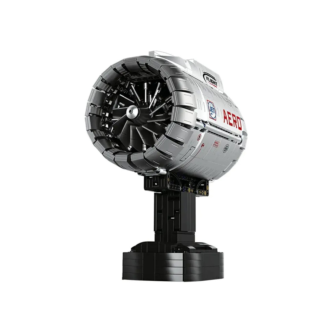 High-quality building blocks for children aged fourteen and up. This set consists of 1,786 pieces, allowing you to build an airplane engine. This stunning model is sure to captivate with its detail. The engine has an opening cover, revealing realistic engine movements and rotating turbofan blades. The set includes a 7.4V rechargeable battery; the battery box requires six 1.5V AAA batteries (not included).