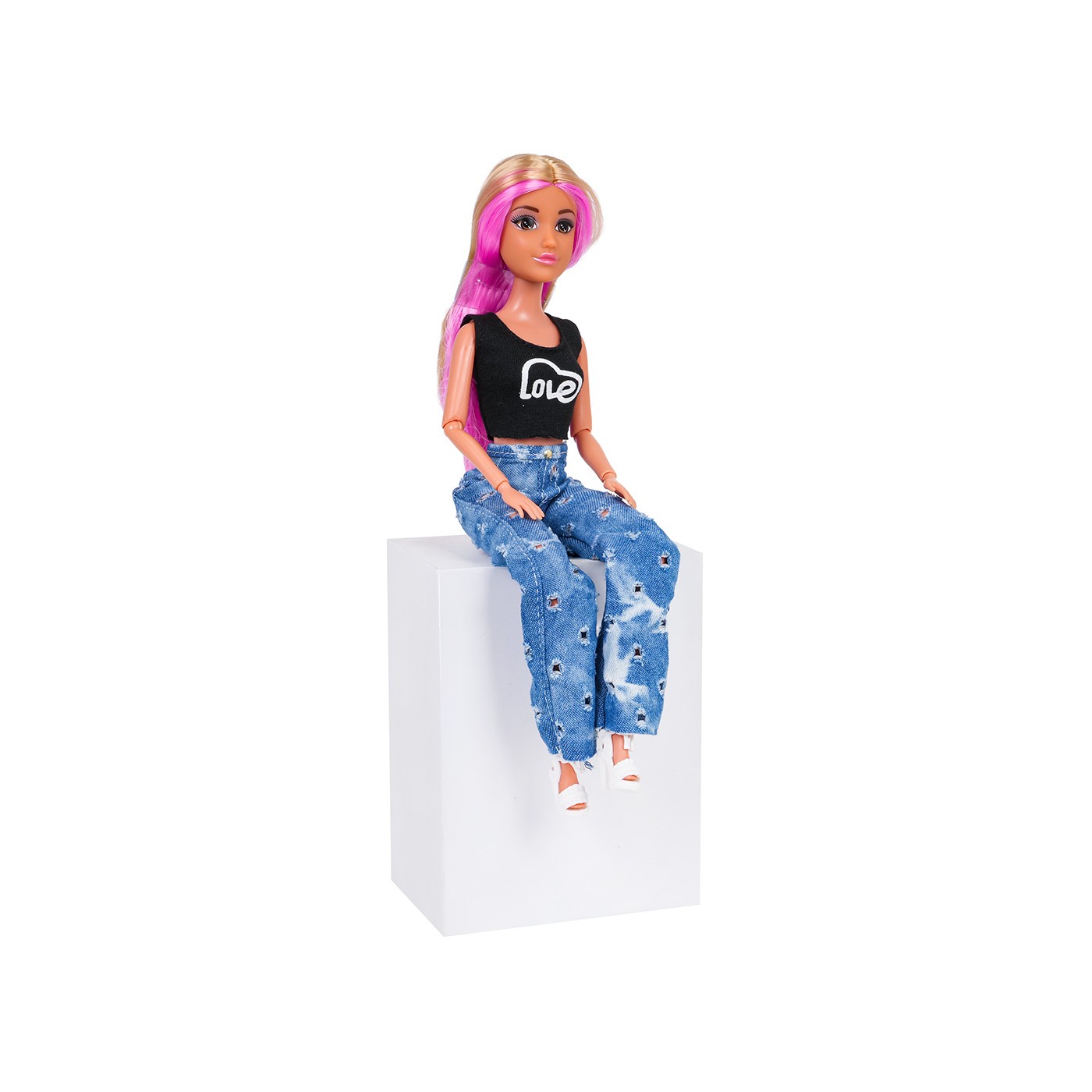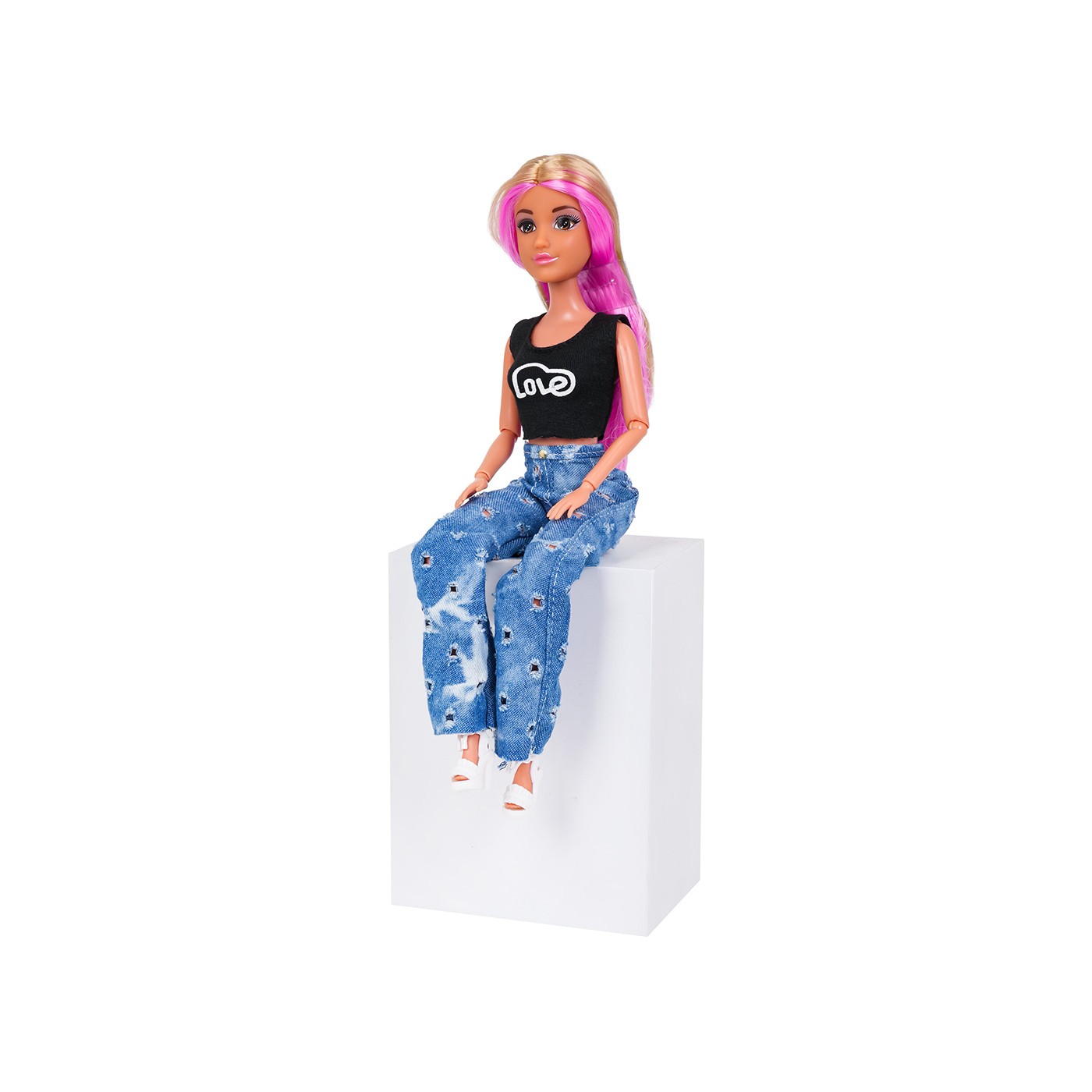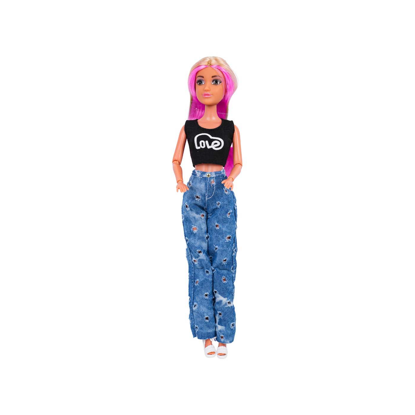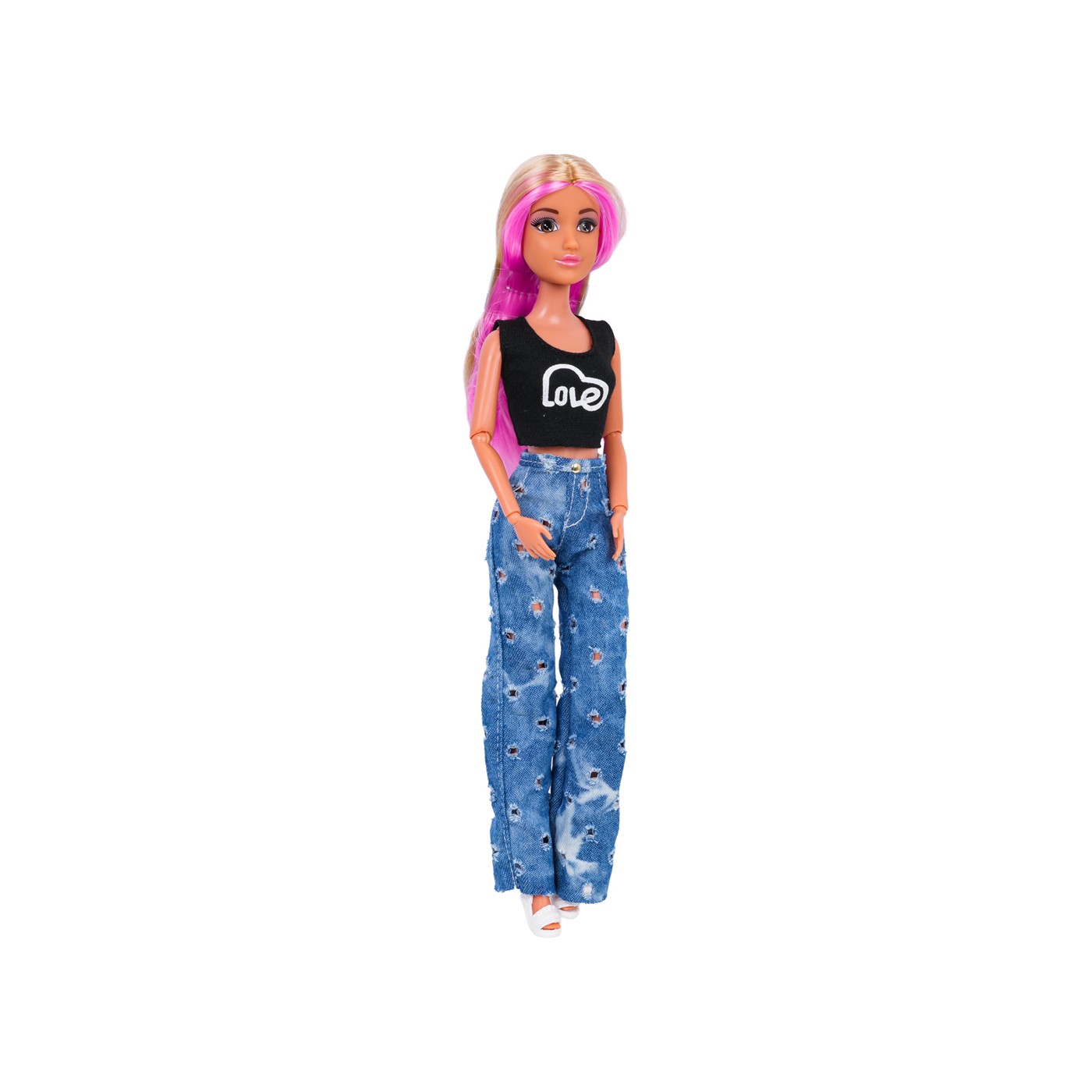 A beautiful doll for children aged three and up. The doll is impeccably crafted, with attention to every detail, and completely safe for children. She wears a blouse, pants, and high heels. The outfits can be removed and the doll can be changed into other outfits. Movable legs and arms, as well as bendable elbows and knees, make it easy to pose the doll in various positions.