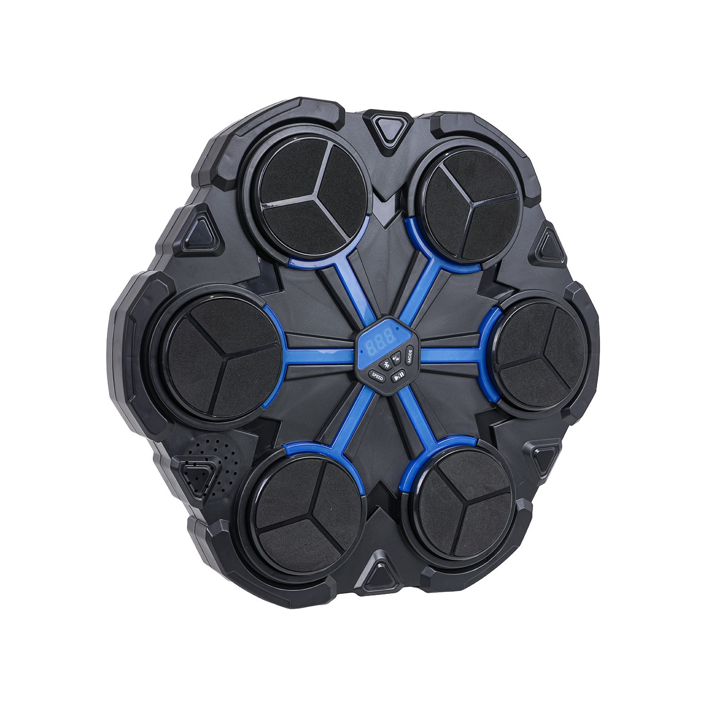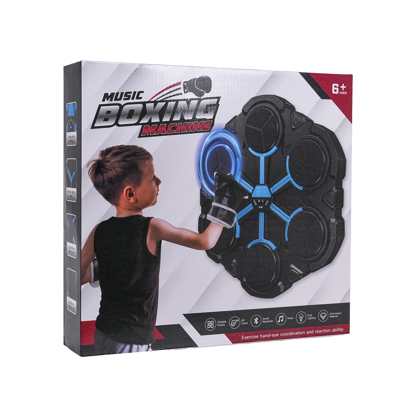 A boxing board with sound and light functions for children aged six and up. This board combines training with fun. Simply mount it anywhere, put on gloves, and enjoy the action. Thanks to the Bluetooth connection, you can train to the rhythm of your favorite music. The LED display in the center of the board displays points, and you can choose the speed and game mode. The board is ideal for both beginners and advanced players. The set will improve reflexes, motor coordination, and endurance. The board is powered by a 3.7V battery (included).