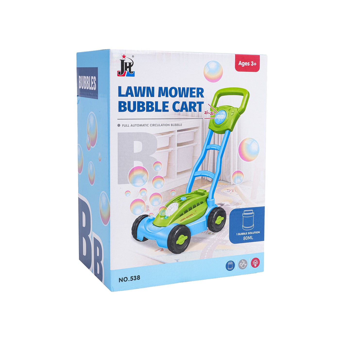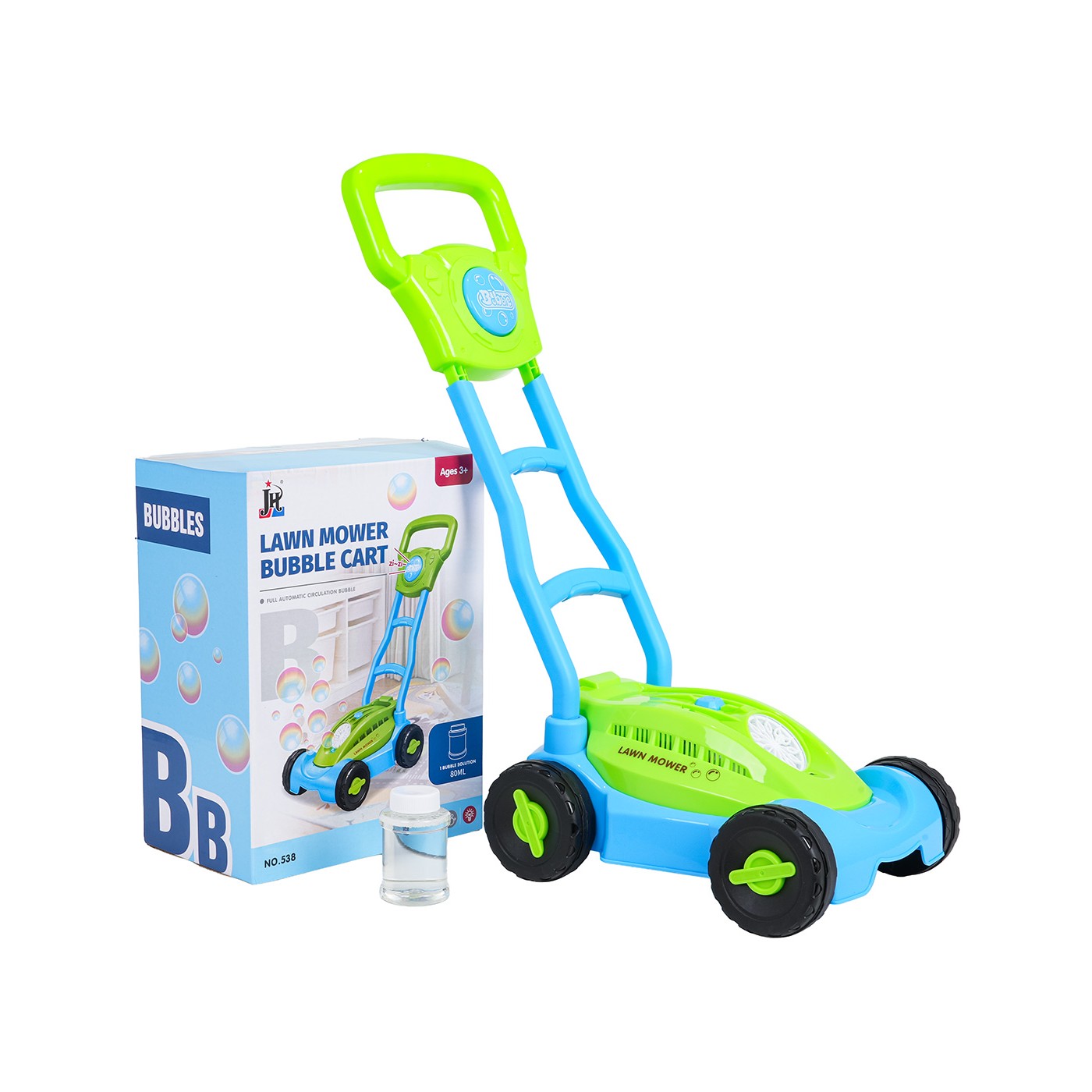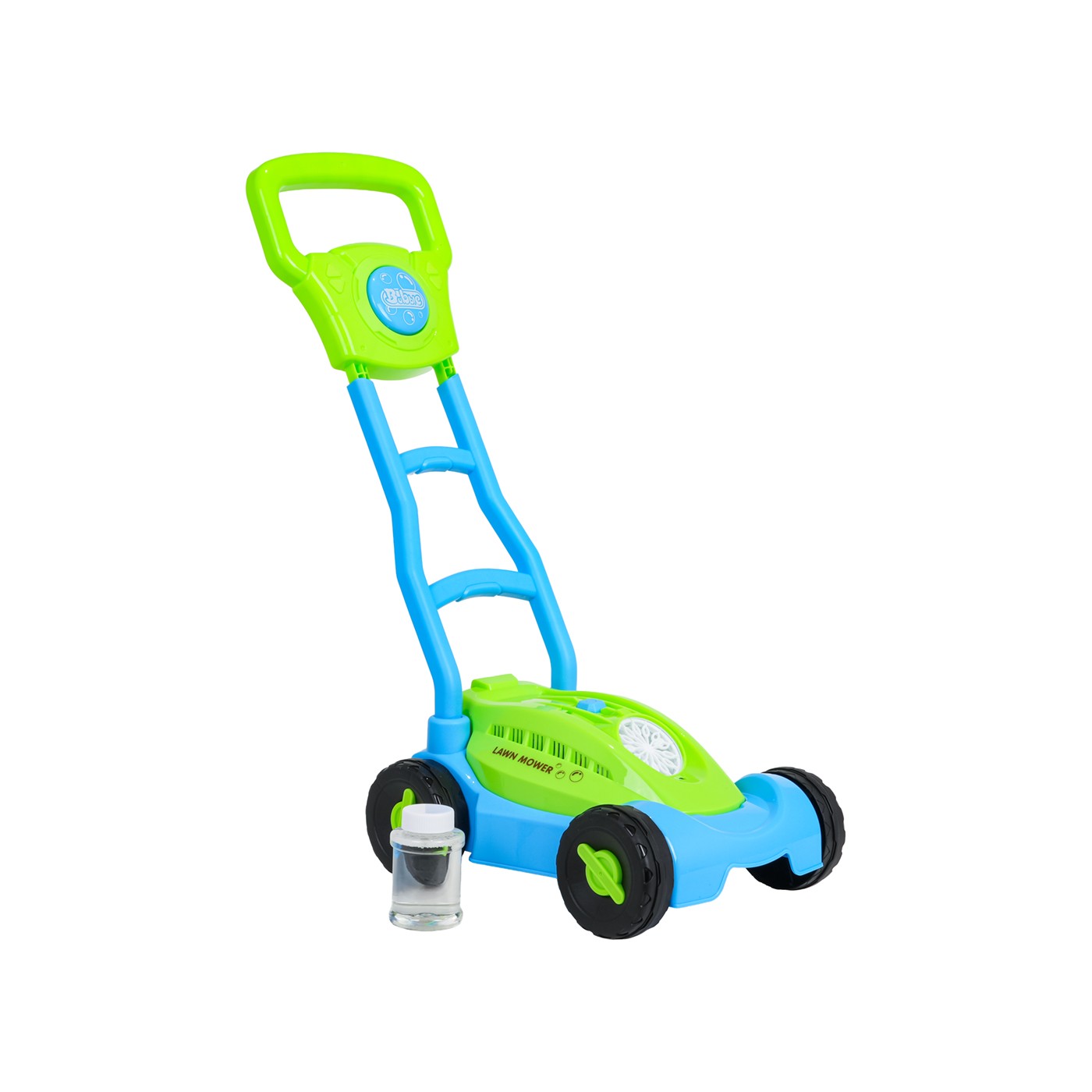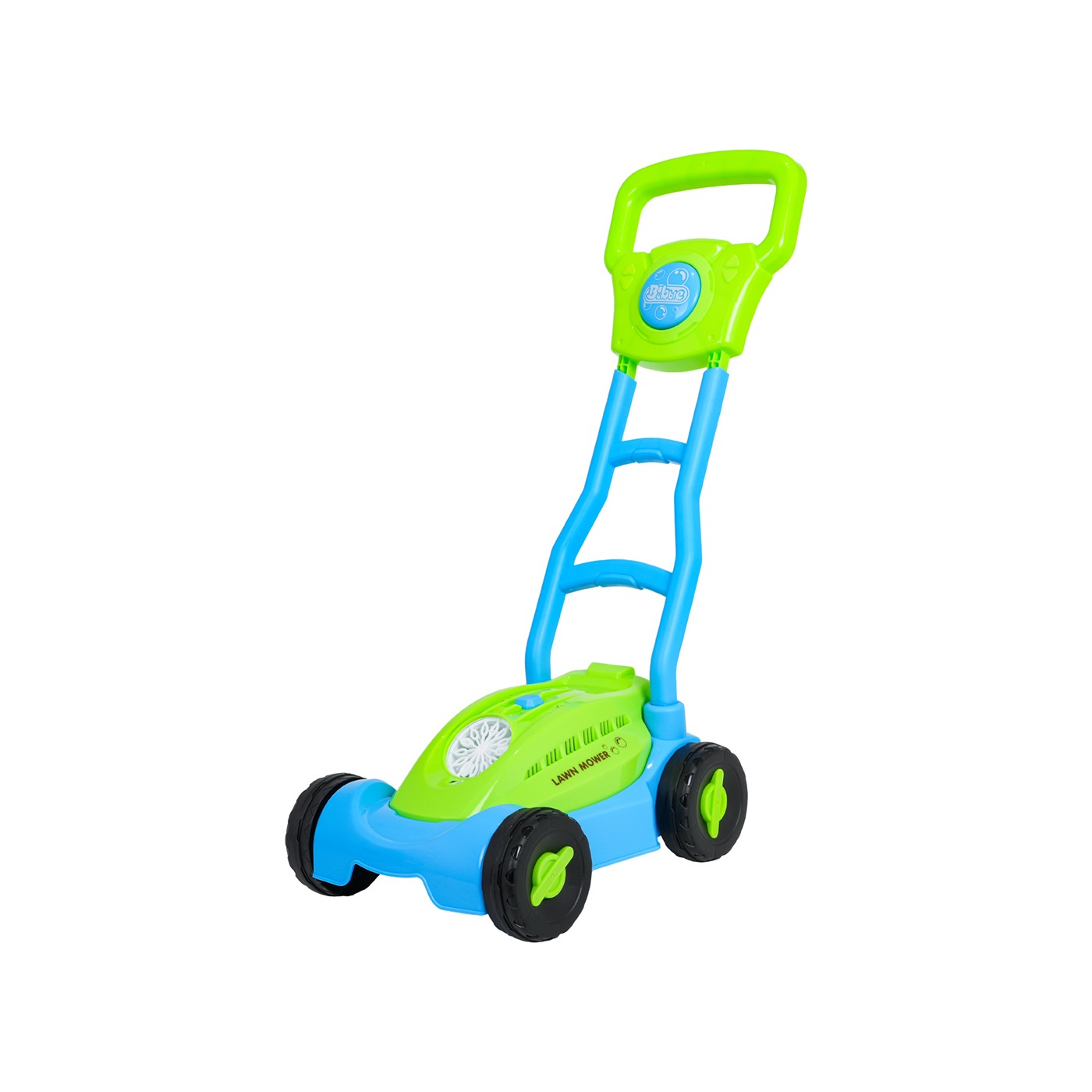 This bubble-blowing lawnmower with lights is perfect for children aged three and up. The toy features a comfortable, stable handle and four movable wheels, making it easy for little ones to maneuver. The mower's biggest attraction is the built-in bubble generator. Simply attach the included bubble bottle to the bottom of the mower to enjoy beautiful, colorful bubbles. The light on the bottom of the bubble generator makes the bubbles shimmer with colors. The toy is powered by 4 x AA 1.5V batteries (batteries not included). The mower's handle also features a squeaker. Features: - for children from three years of age, - easy assembly, - stable construction, - made of the highest quality plastic, - it has no sharp elements, it is safe for the baby, - easy to move, - built-in soap bubble generator, - pipe, - bubble generator lighting. |