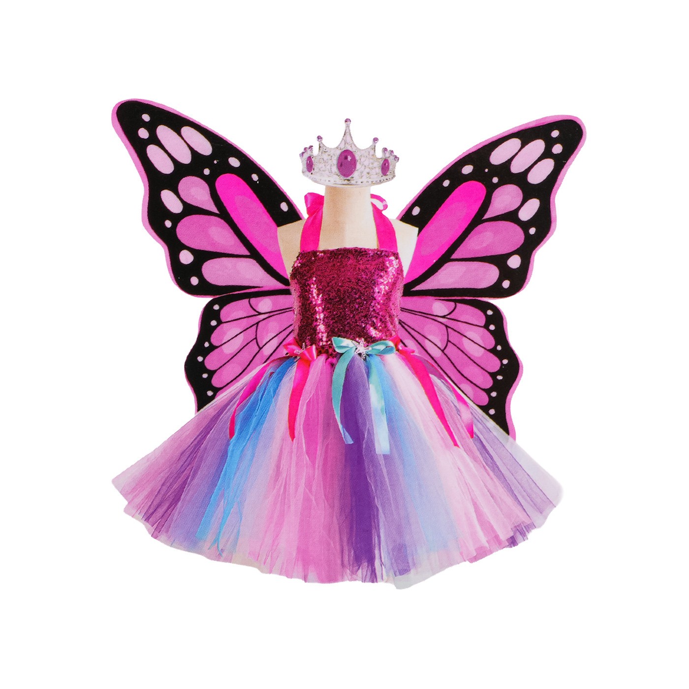 A fabulous set featuring butterfly wings, a rainbow dress, and a crown for children aged three and up. The set is crafted with meticulous attention to detail and captivates with its rich colors. Your little one will feel fabulous and special in this costume. Perfect for a ball, a performance, or everyday play. The wings are powered by 4 x AA 1.5V batteries (not included). The wings operate in several modes: - music, fluttering, lights on the wings, - fluttering, lights, - fluttering, blinking lights, - fluttering. Features: - suitable for children from three years of age, - lighting effects: multi-colored lights on the wings, - made with attention to detail, - perfect for a ball, a show or everyday fun, - Your child will feel magical in them, - the wings work in several modes, - adjustable straps - dress with a rainbow effect, - a crown included so your little one can feel like a queen, |