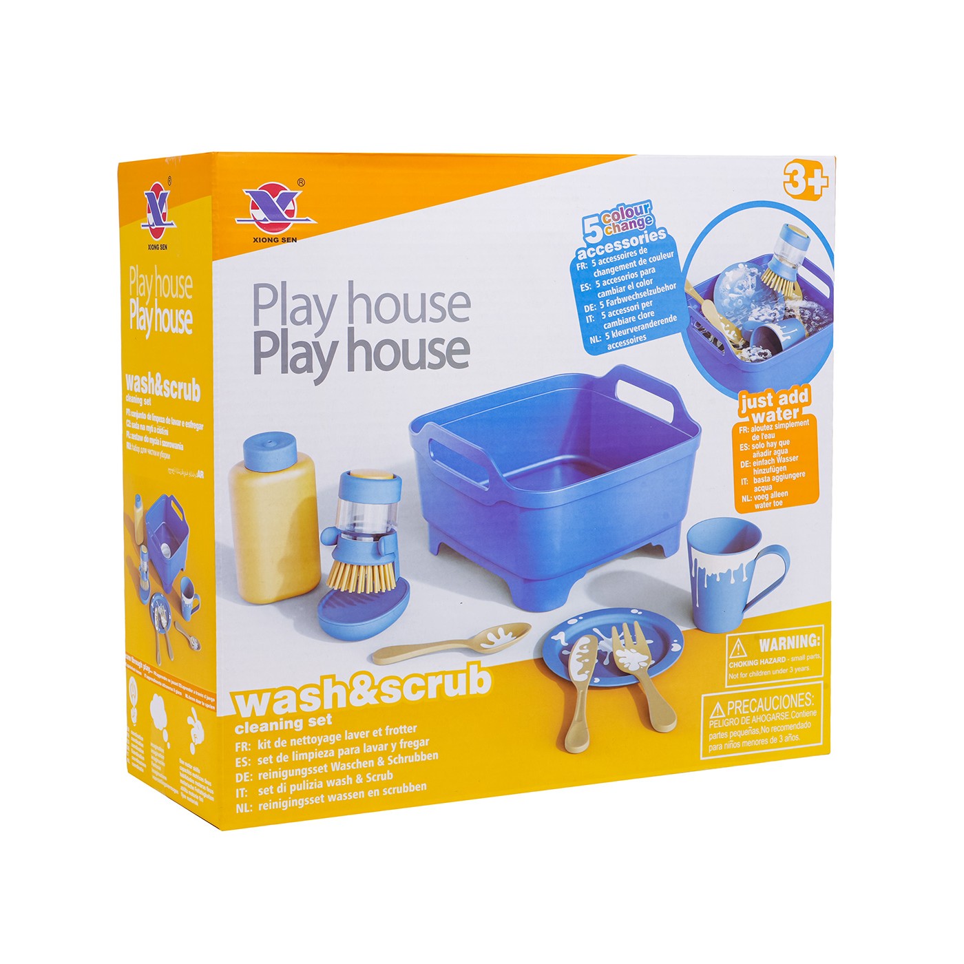 A color-changing kitchen set for children aged three and up. The set includes a bowl, a bottle of dishwashing liquid, a brush, and dirty cutlery, a plate, and a mug. Simply pour warm water over everything, and magic happens; dirt disappears. The set is made with meticulous attention to detail and is made of child-safe materials. Features: - for children from three years of age, - made of child-safe materials, - dirt (paint) from dishes and cutlery disappears after adding warm water. |