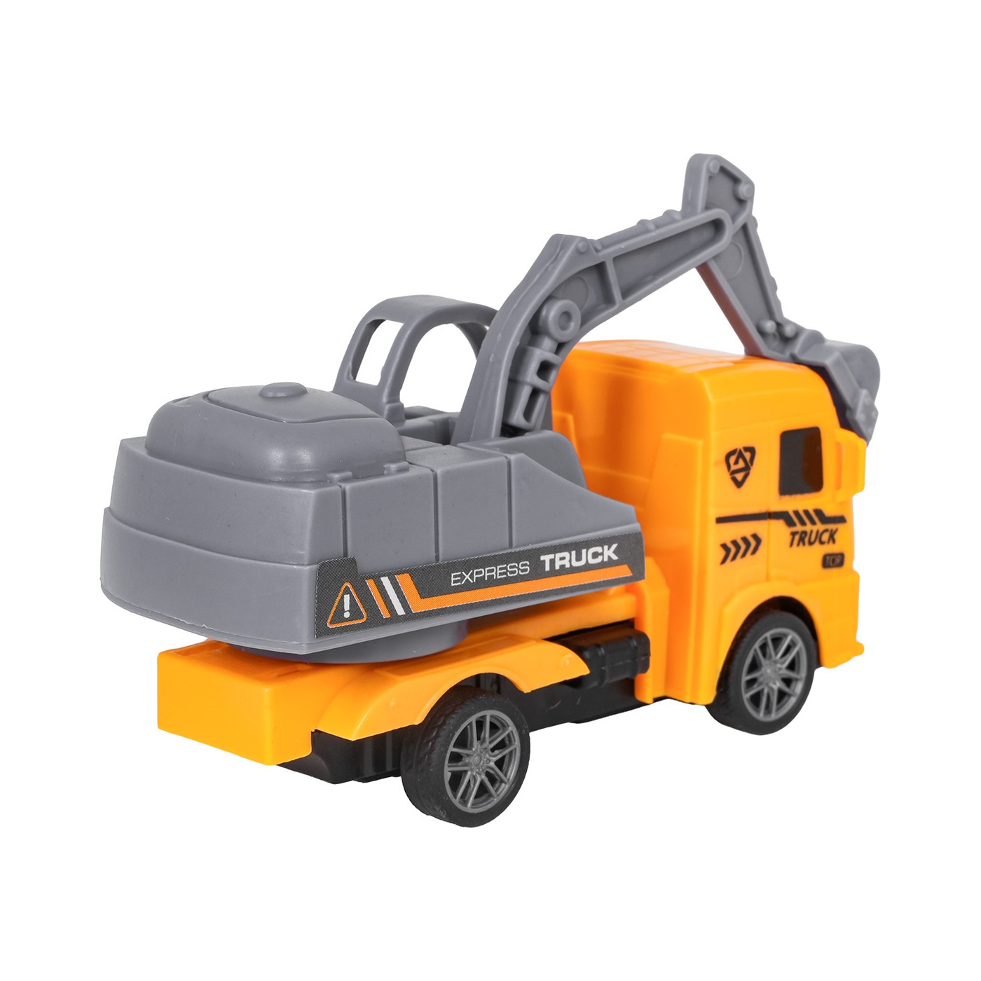 A set of four construction vehicles with movable parts for children aged three and up. Crafted from the highest quality materials with meticulous attention to detail, the vehicles' compact size makes them easy to take anywhere. The set includes a concrete mixer, a dump truck, a backhoe loader, and a tanker truck.