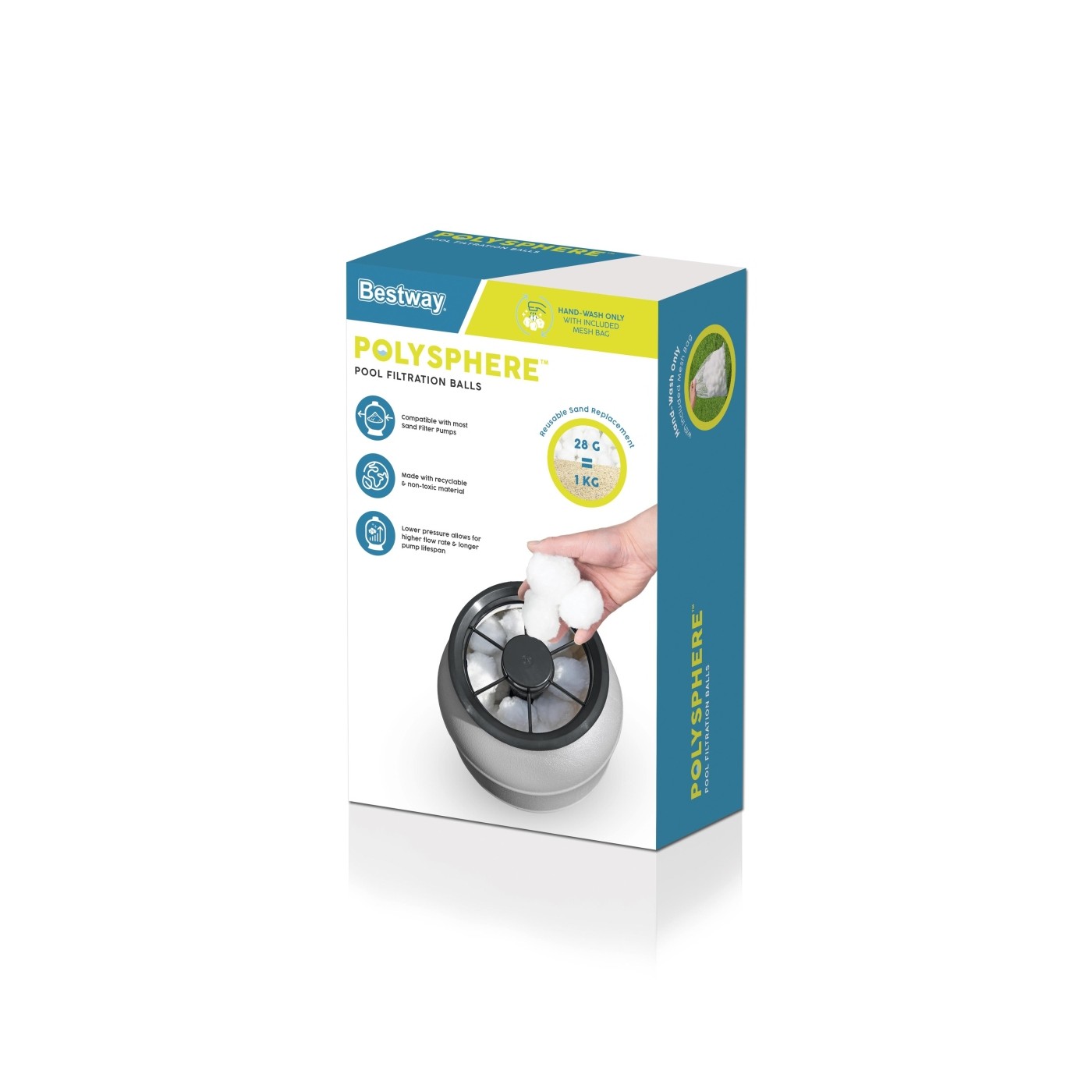 Notes: Flowclear™ Polysphere can also be used for other sand filters using 28 g (0.06 lbs) Flowclear™ Polysphere to replace for 1 kg (2.20 lbs) sand.