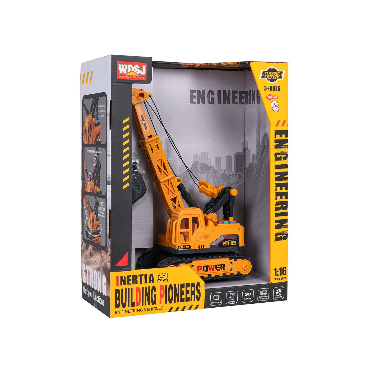 An interactive crawler crane, made in 1:16 scale, with movable parts, suitable for children aged three and up. Crafted from the highest quality materials with meticulous attention to detail, the crane's boom can be manually controlled and the grabber can be lowered and raised for loading. The machine's base can rotate 360 degrees. Buttons on the roof activate sound and light controls. Small motorized wheels are located on the underside of the crane. The toy is powered by 3 x AG13 batteries (included). Features: - a toy suitable for children from three years of age, - performance room 1:16, - made of the best quality materials, - manually raised and lowered boom, - manually raised and lowered gripper, - 360-degree rotating base, - sound effects: cheerful songs, machine sounds, - lighting effects, approx. a flashing light, - front-wheel drive. |