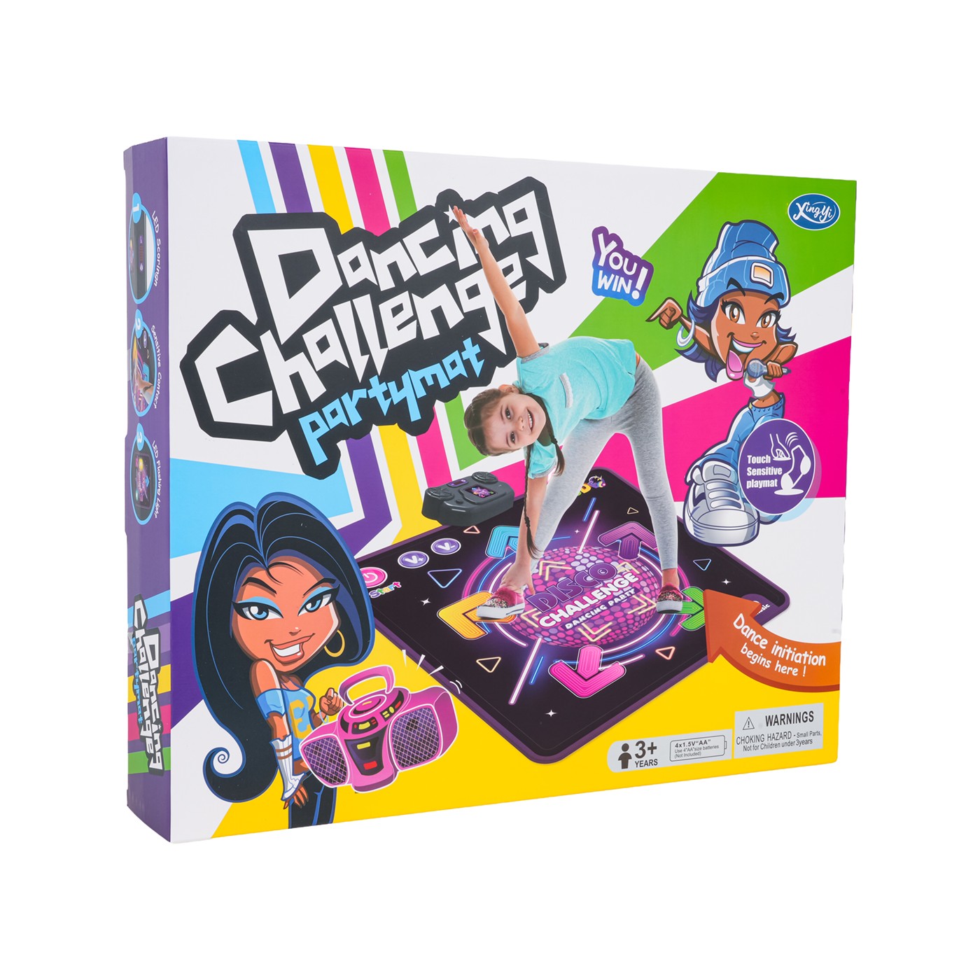 A dance mat with sound and light effects for children aged three and up. Made of the highest quality materials, the mat is waterproof and has a non-slip base. A panel on the top of the mat displays earned points and tasks—flashing arrows indicating which squares to touch on the mat. Children can press these squares with their hands or feet. The mat features a dance square, an on/off switch, and volume control. There are four game modes: default mode, play mode, challenge mode divided into 9 levels, and memory mode divided into 10 levels. Playing with the mat promotes hand-foot coordination, improves physical fitness, and increases interest in dancing. The mat is powered by 4 x AA 1.5V batteries (not included).