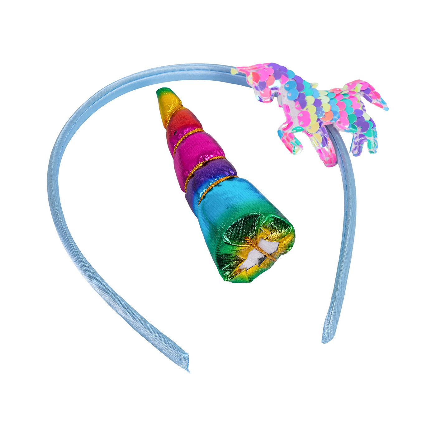 - headband before decoration approx. 12 cm x 13.5 cm x 1 cm, - unicorn horn approx. 9.5 cm x 2.5 cm, - large bow approx. 10 cm x 6 cm, - flower approx. 3.5 cm x 2.5 cm, - sequin unicorn approx. 5 cm x 6 cm, - clip approx. 3.5 cm long, - star approx. 2.5 cm, - butterflies approx. 4 cm x 2.5 cm, - scissors approx. 7 cm x 4.5 cm, - packaging approx. 30.5 cm x 20 cm x 10 cm. |