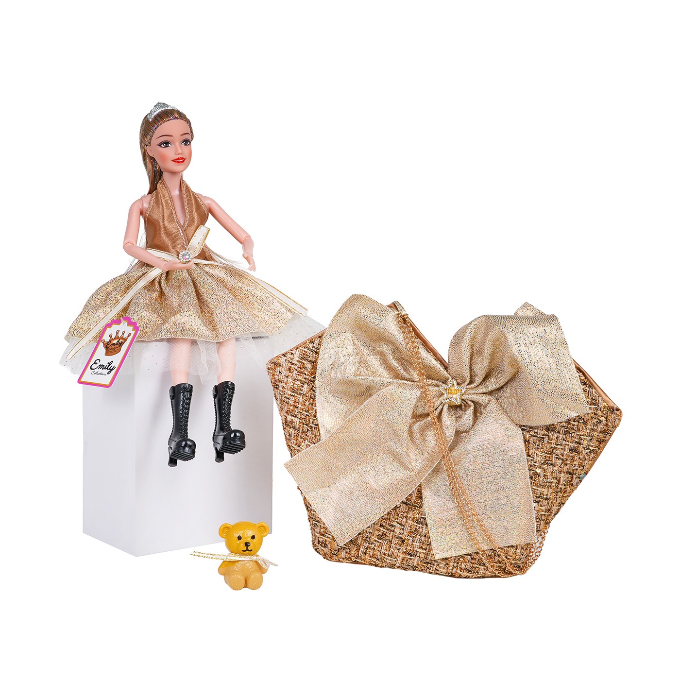 This doll and handbag set is perfect for children aged three and up. The set is crafted with meticulous attention to detail and includes a beautiful doll in a ball gown and a large handbag with a bow. The doll can be stored inside the bag and taken anywhere.