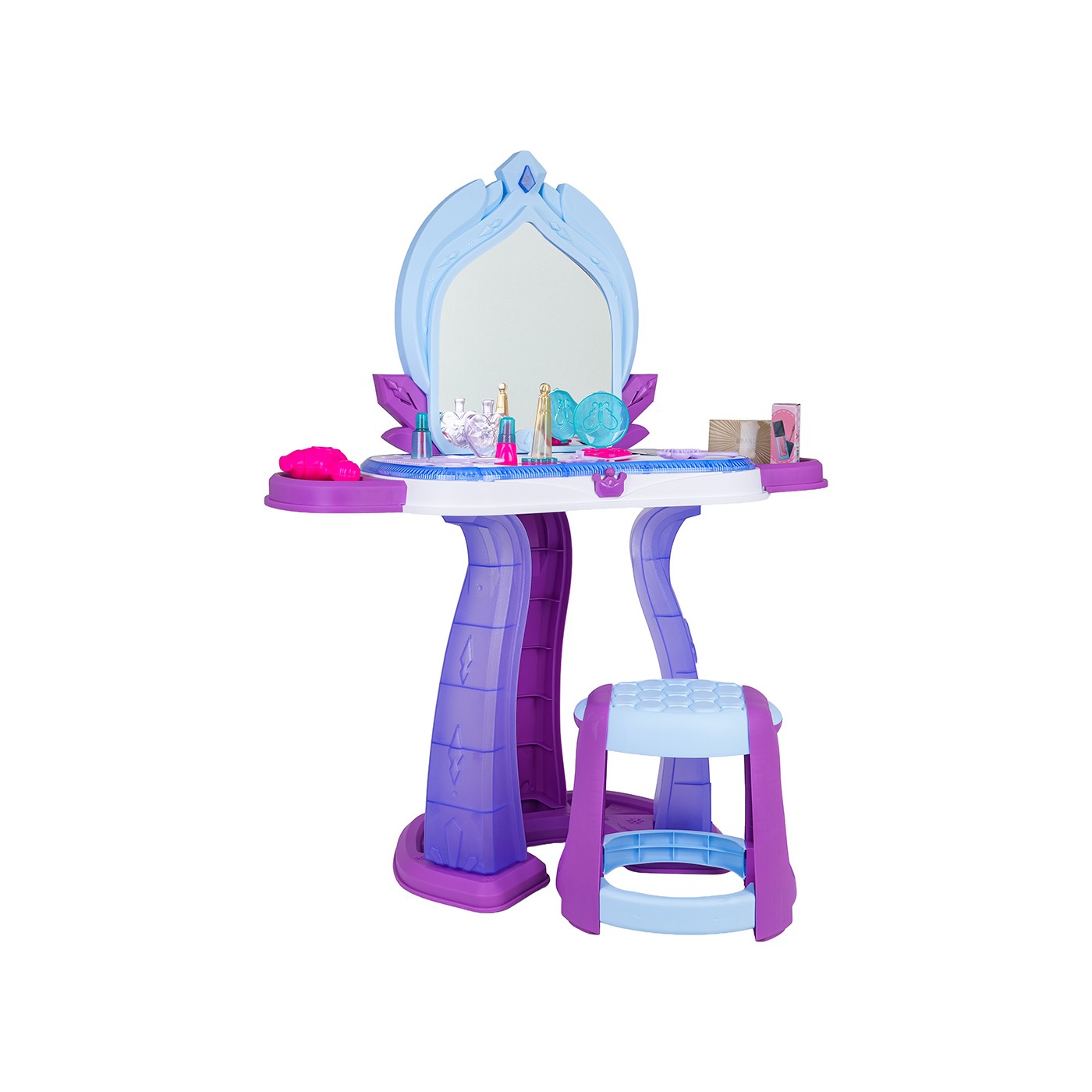Features: - set suitable for children from three years of age, - made of safe, top-quality materials, - vivid colors encourage play, - lots of care accessories and cosmetics, - sound effects: melodies, - lighting effects: images of princesses displayed on the mirror, lighting around the dressing table. |