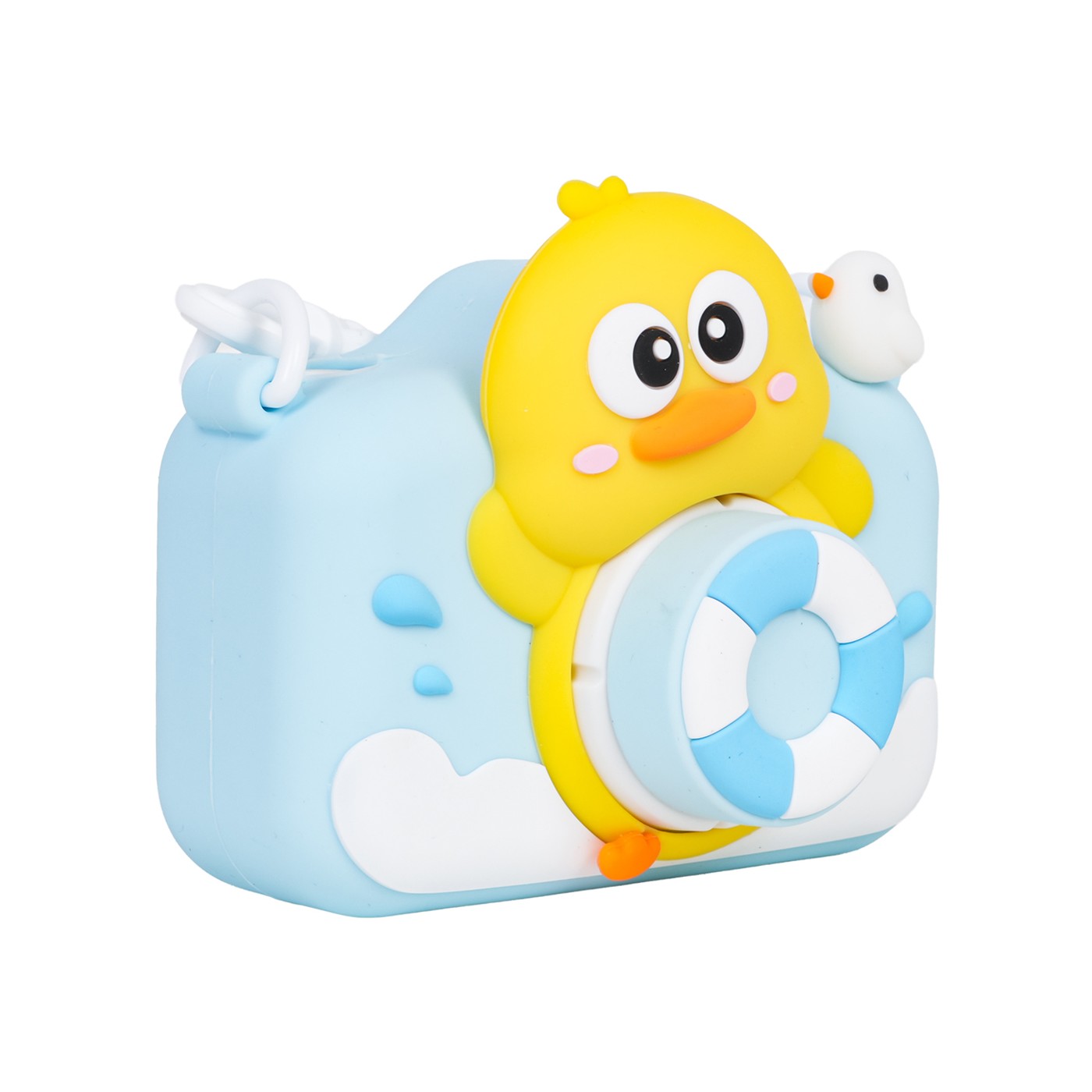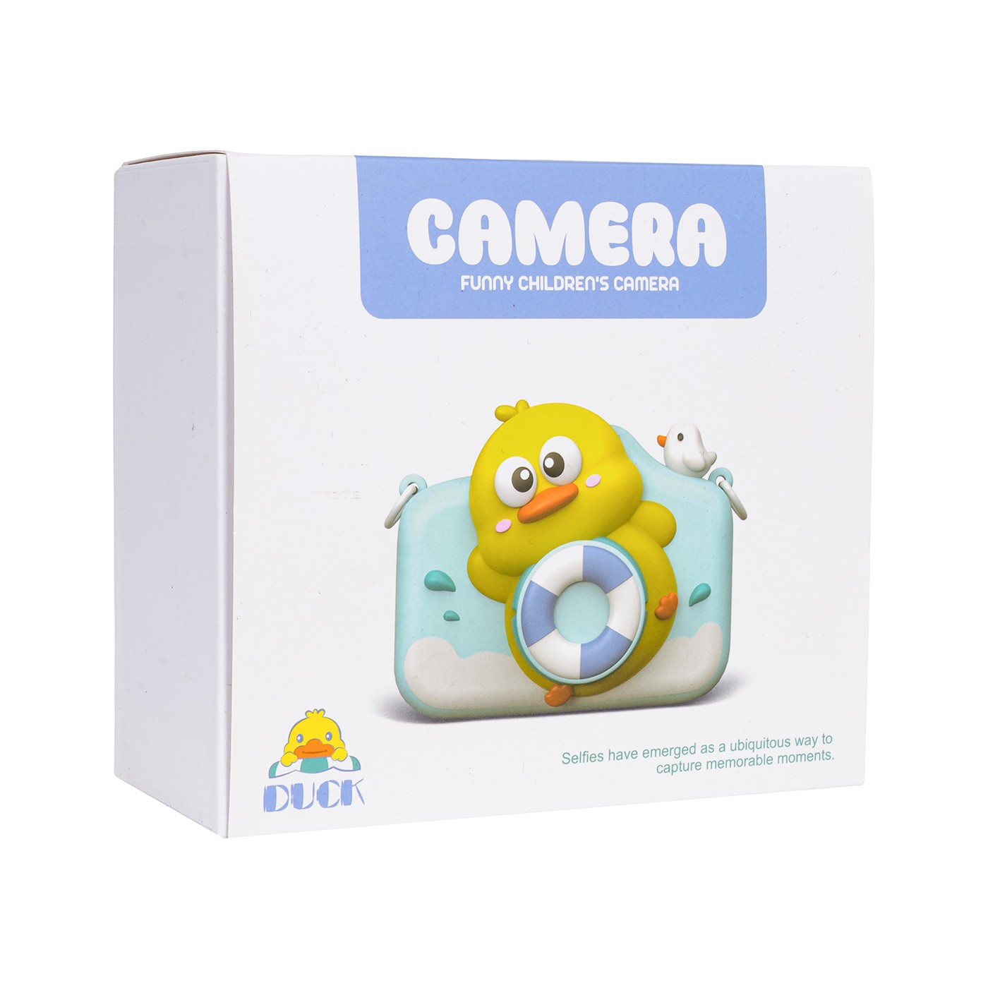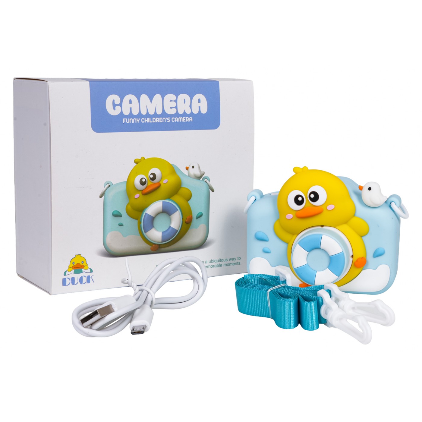 A camera with recording function, additional photo effects, and games included in the set for children aged six and up. The set is made of high-quality materials with attention to detail. Each photo can be decorated with various fun effects. The camera also has five games built into the memory. The camera can take up to 50 photos without a memory card. With a 32GTF card, it can take approximately 8,500 photos. The set includes a lanyard, USB charging cable, and instructions, as well as a rubber lens case with a fun duck and lifebuoy. The camera is powered by a 5V 1000mAh rechargeable battery (included).
