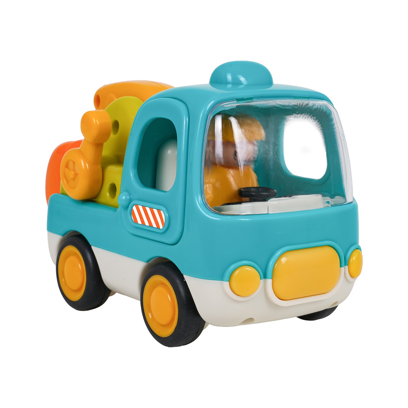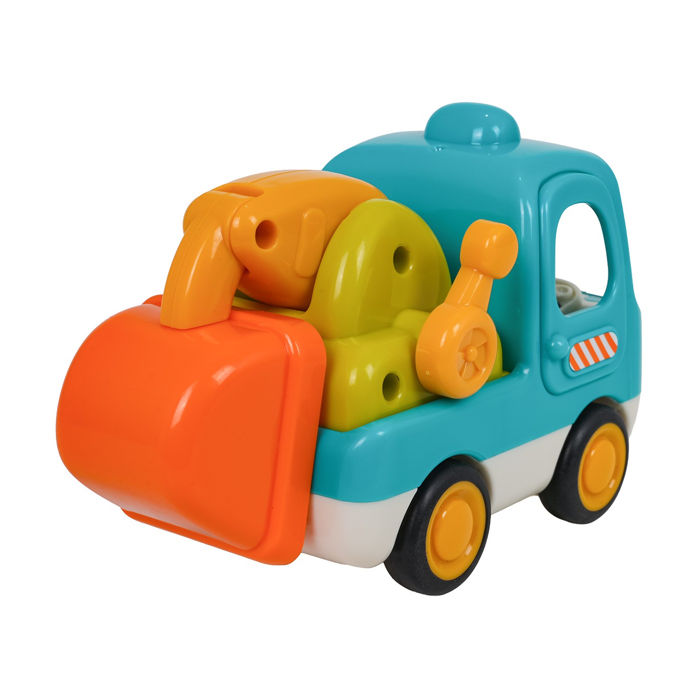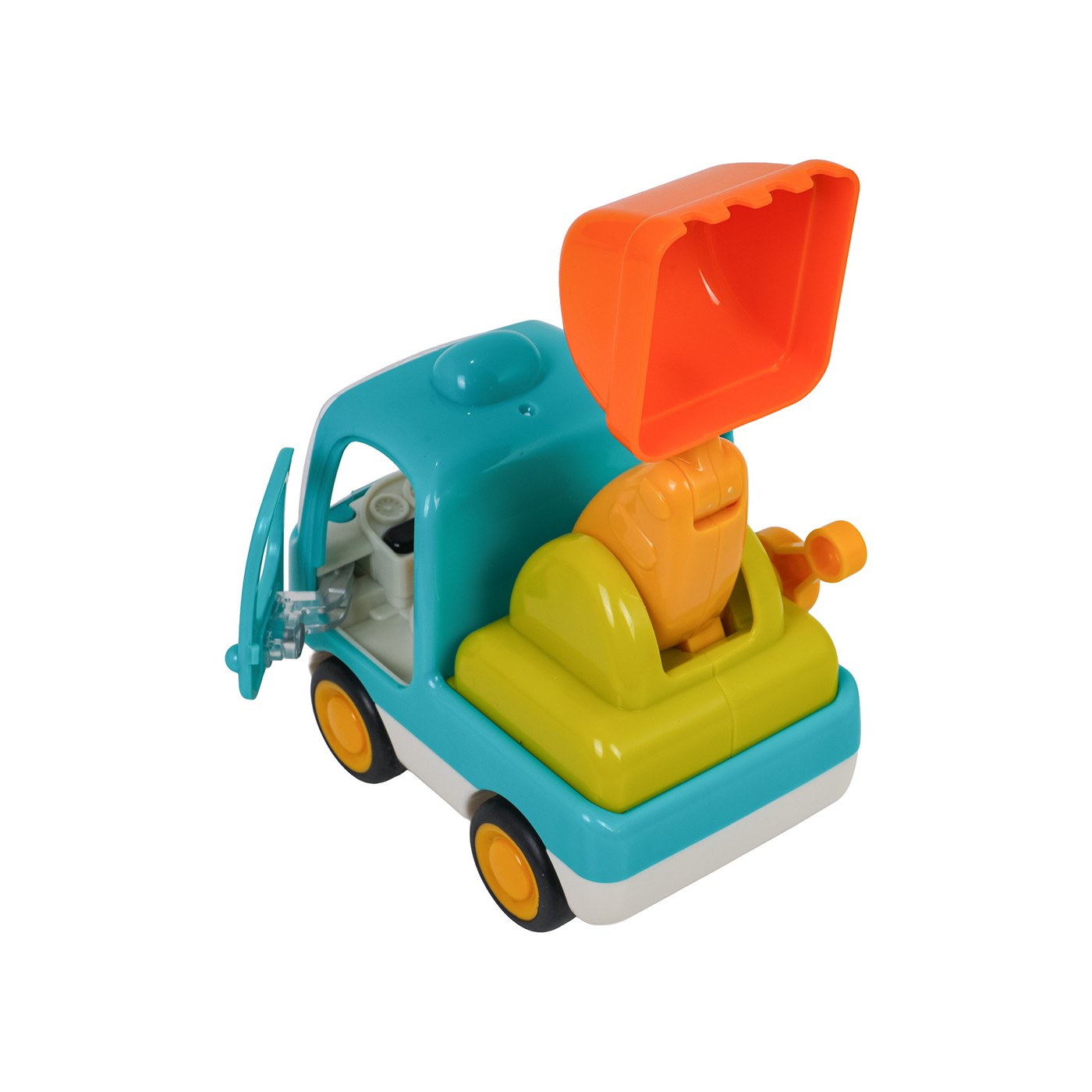 An interactive excavator with sound and light functions for children aged ten months and up. Made of durable and safe plastic, it has no sharp edges and will withstand the most energetic play. Vibrant colors attract baby's attention and encourage play. Sound and light effects stimulate baby's senses and add realism to play. The wheels easily glide across the ground, and the excavator's door and bucket are movable. The toy is powered by 3 x AG13 batteries (included).
