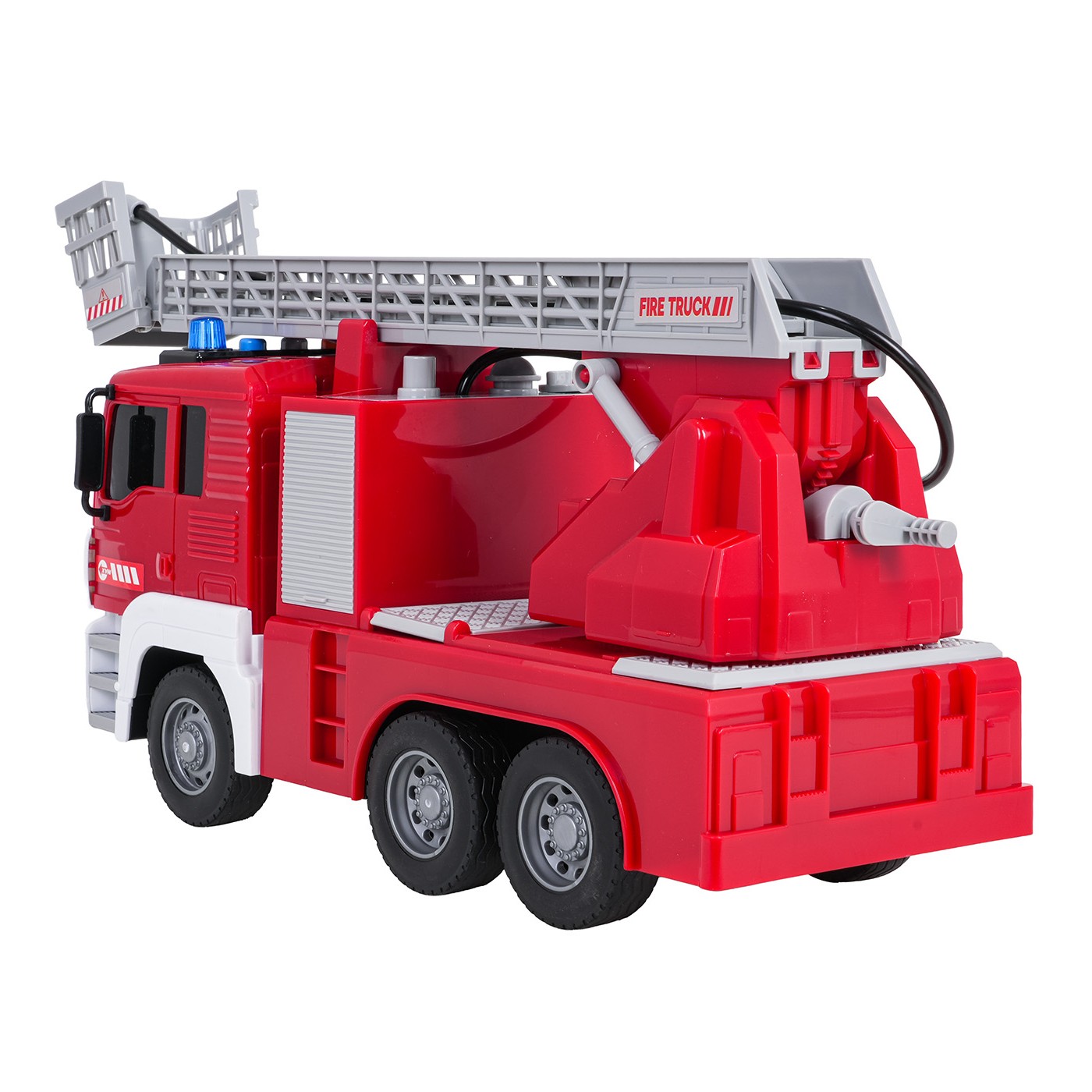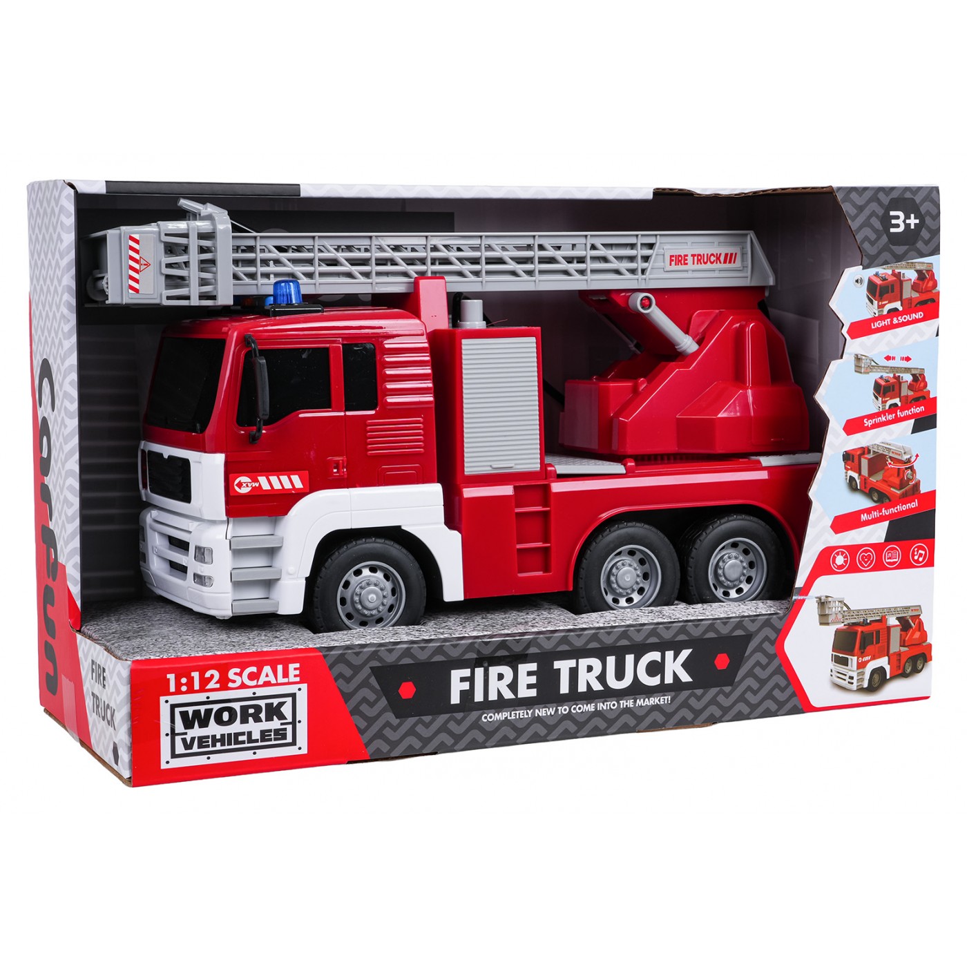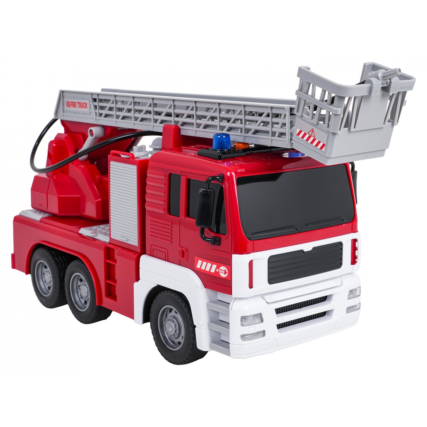 An interactive fire truck with a water feature for children aged three and up. The truck is made of high-quality plastic in vibrant colors. It features rubber tires with good grip and a friction drive . Buttons on the top of the truck generate siren sounds, engine start sounds, and an alarm. Lights also illuminate on the sides of the sound buttons. The fire truck's ladder can be raised, lowered, and extended manually. Fill the tank located next to the truck's cab with water and press the pump to release water from the hose. The toy is powered by 3 x AG13 batteries (included). Fire truck functions: - intended for children from three years of age, - scale 1:12, - made of the highest quality plastic in vivid colors, - rubber tires, Friction drive , - lighting effects: lights on top of the cabin, - sound effects: sirens, vehicle starting sounds, - raised, lowered and extendable ladder with basket (crank), - 360 degree rotating boom (manual). - water function, - opening flap on the boom, - batteries are included in the set. |