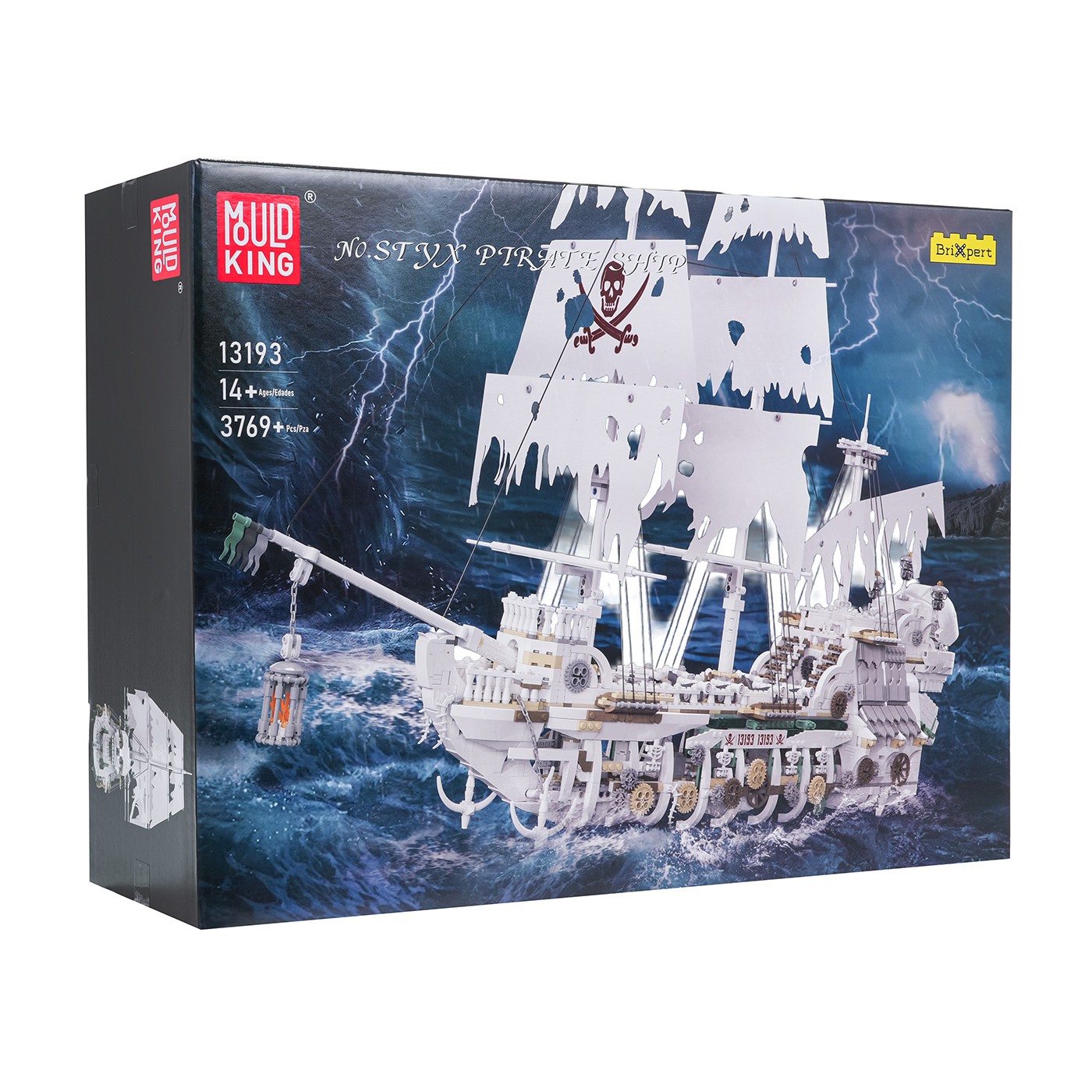 Mold King building blocks for children aged fourteen and up. This set consists of 3,769 pieces, from which you can build a ghost pirate ship. This magnificent ship model is sure to attract attention with its detailed masts, sails, cannons, and deck. This dark, majestic vessel will be the perfect addition to any collection.