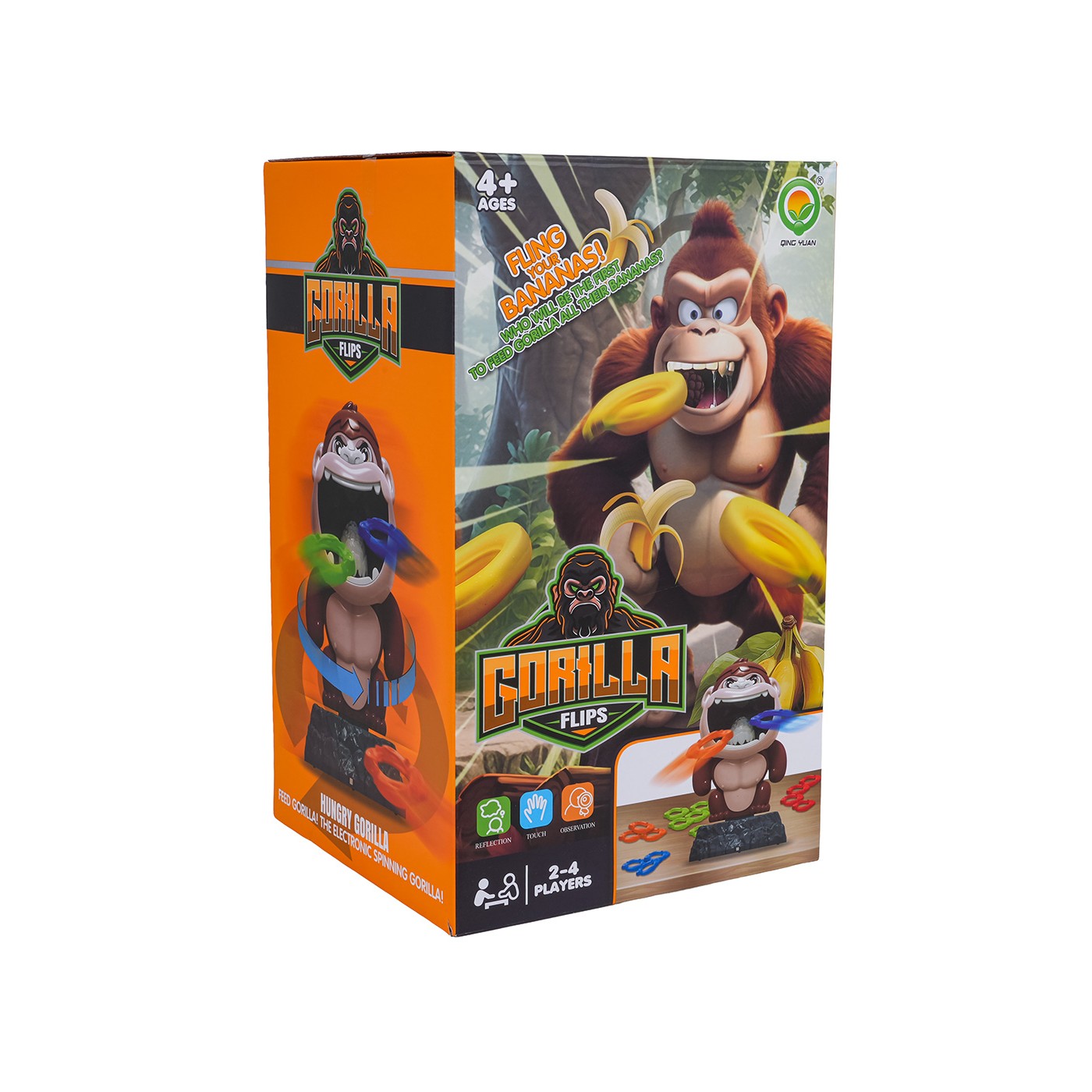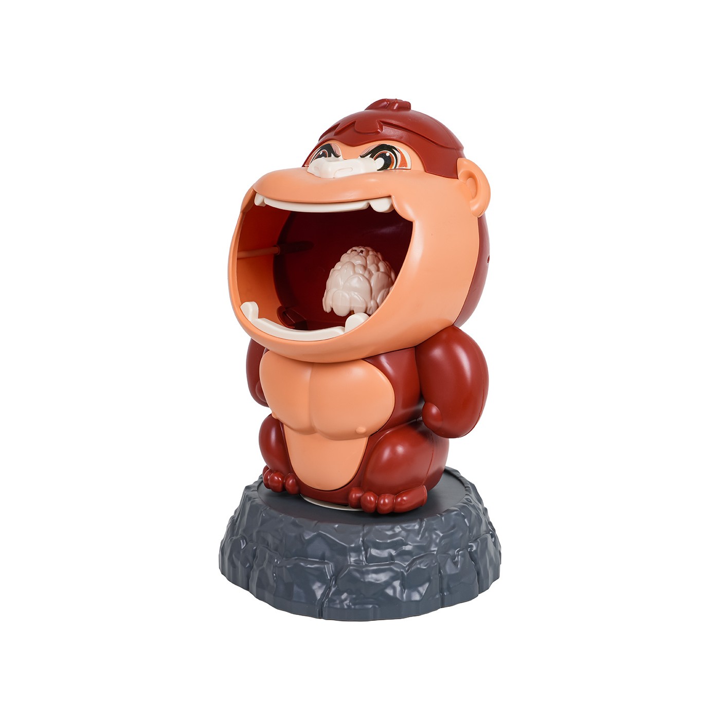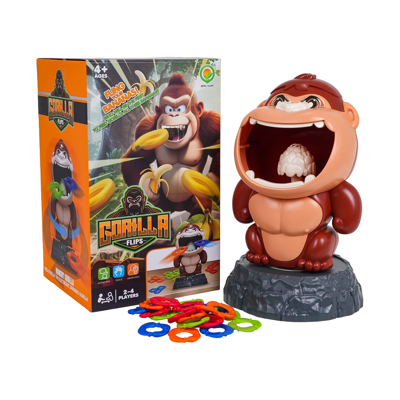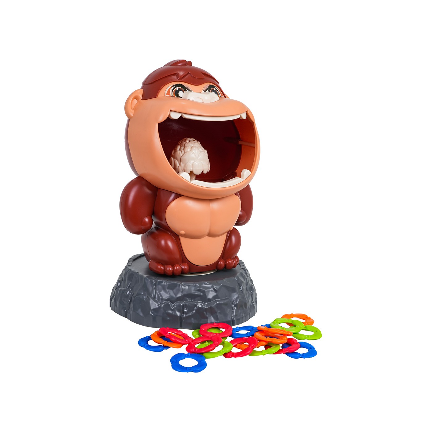 Gorilla is a skill game for children aged four and up. The game consists of a gorilla figure on a base and discs. The set components are made of the highest quality, child-safe materials. Players' task is to throw the disc and hit it squarely in the center of the gorilla's mouth. This task is made more difficult because the gorilla rotates on its axis. The first player to place all the discs in the gorilla's mouth wins. The game develops dexterity and can be played by two to four players. The game is powered by three 1.5V AA batteries (not included). Features: - for children from four years of age, - made of the best quality plastic, - a fun family and arcade game, - 2-stage gorilla rotation speed adjustment, - the gorilla plays a cheerful melody while spinning, - after throwing the disc into its mouth and hitting its tongue, the gorilla stops and lets out cries of joy. |