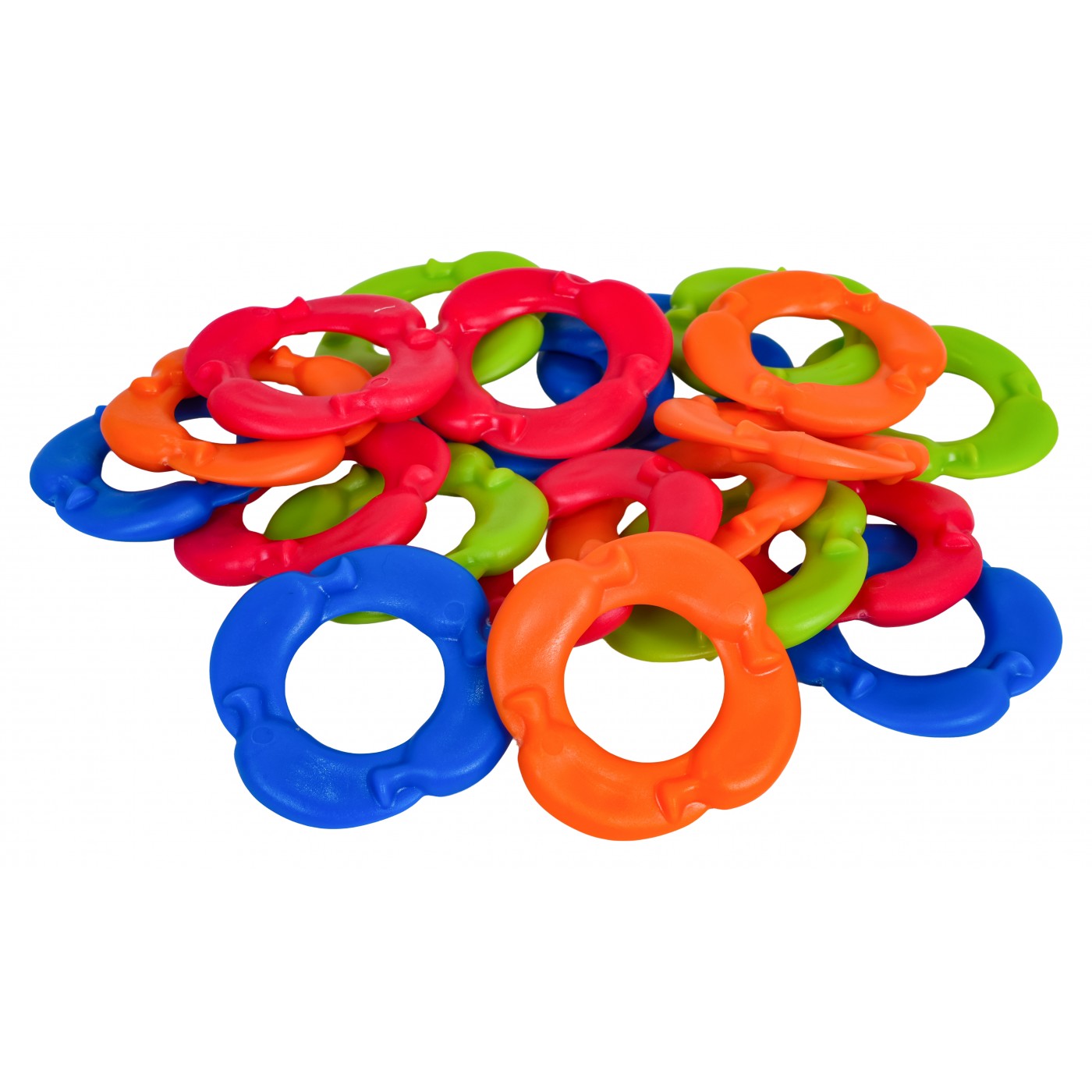 - movable gorilla figure, - 5 green discs, - 5 red discs, - 5 blue discs, - 5 orange discs. |