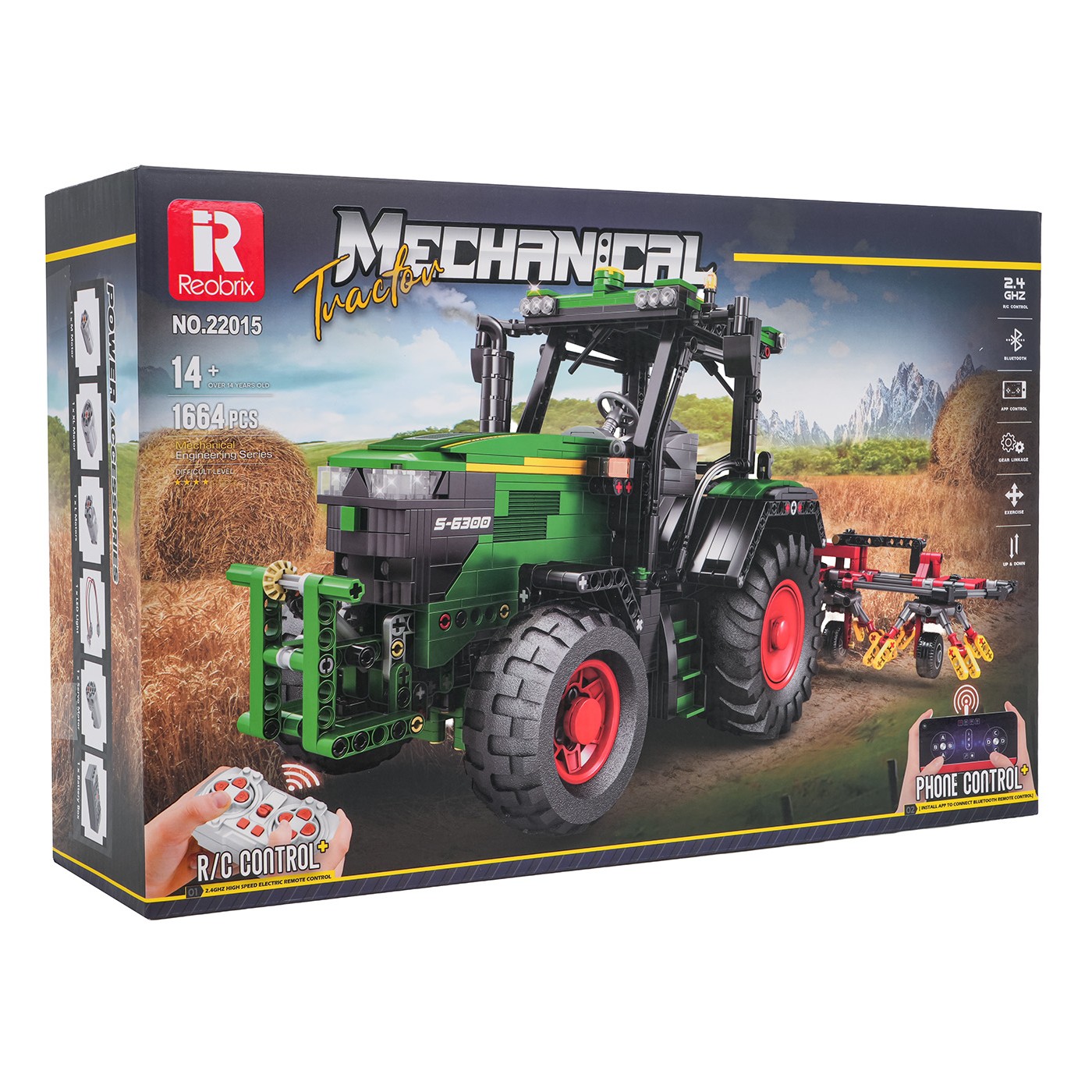 High-quality building blocks for children aged fourteen and up. The set consists of 1,664 pieces, from which you can build a remote-controlled tractor. It can be controlled using the included remote control or via a smartphone app. The app can be downloaded by scanning the QR code on the packaging. With the app, you can not only move the vehicle but also design its movements. The set comes with motors and a battery box.