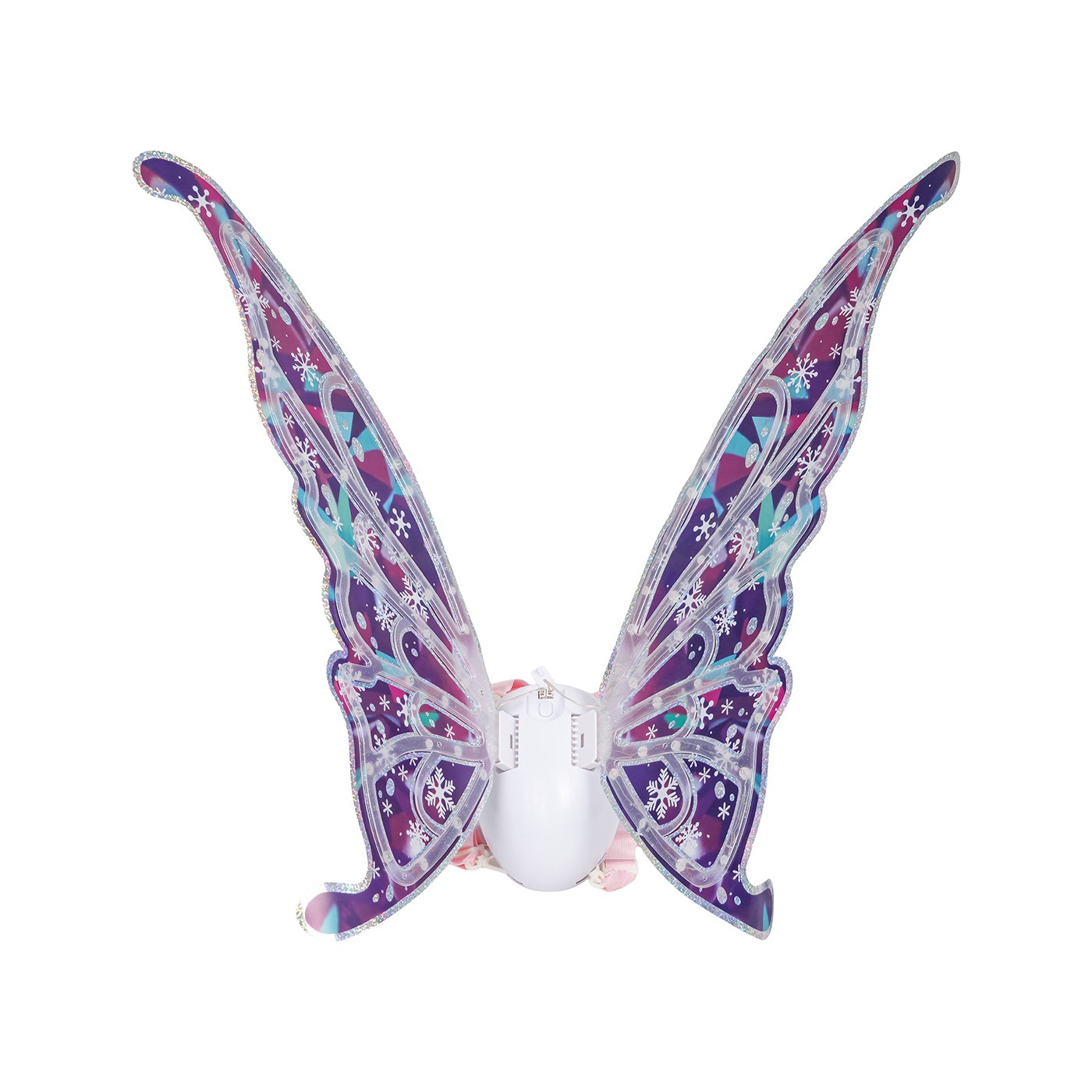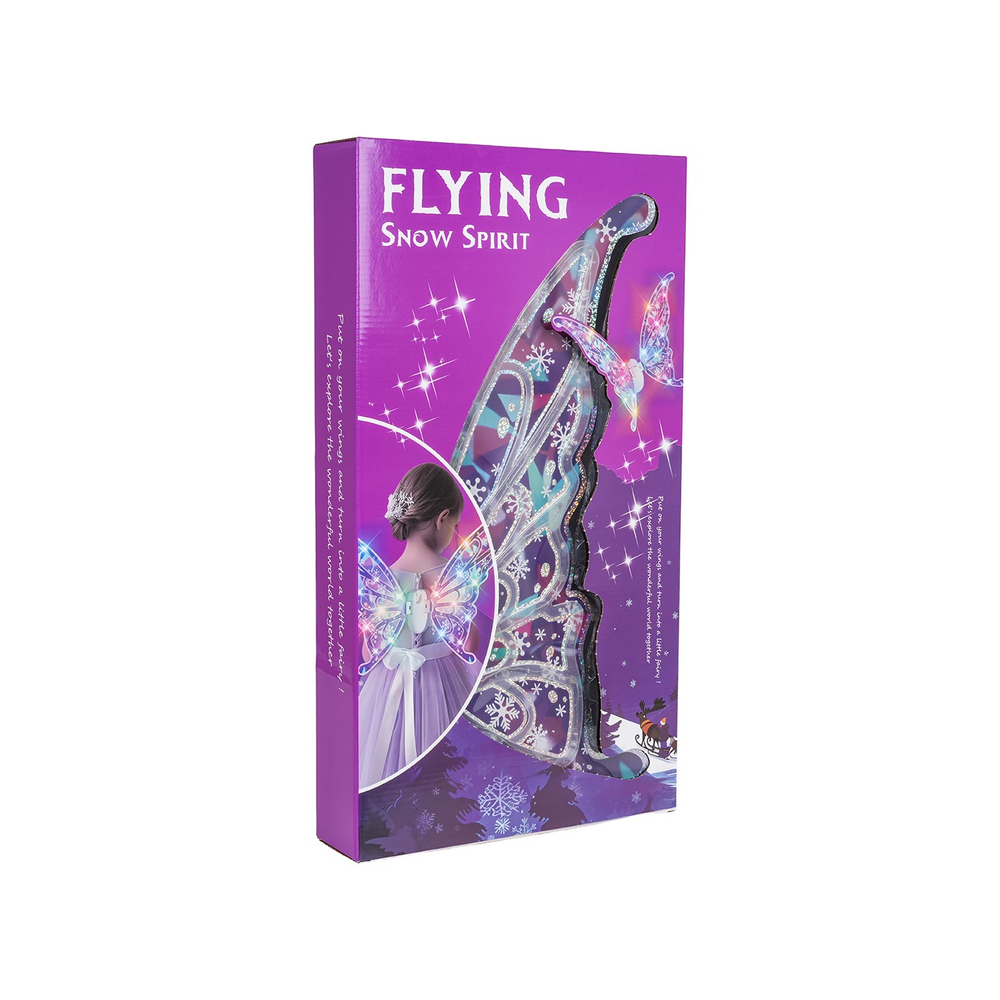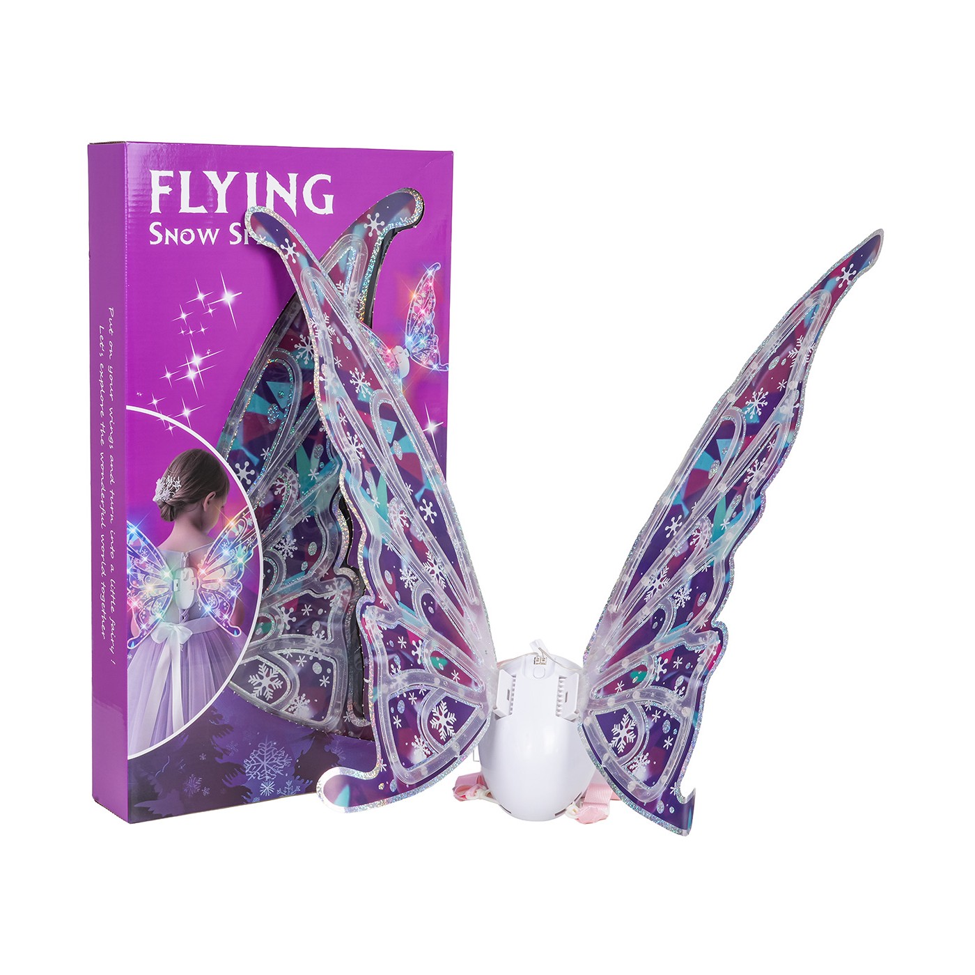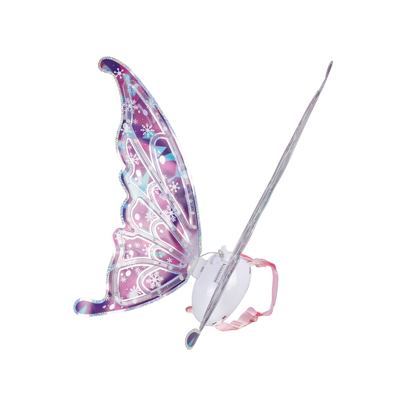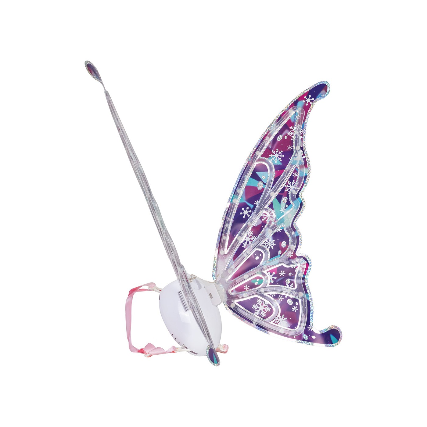 Magical, interactive butterfly wings with light and sound effects, suitable for children aged three and up. Crafted with meticulous attention to detail, your little one will feel magical wearing them. These wings are perfect for a ball, a performance, or everyday play. The toy is powered by 4 x AA 1.5V batteries (not included). The wings operate in several modes: - music, fluttering, lights on the wings, - fluttering lights, - only lights.