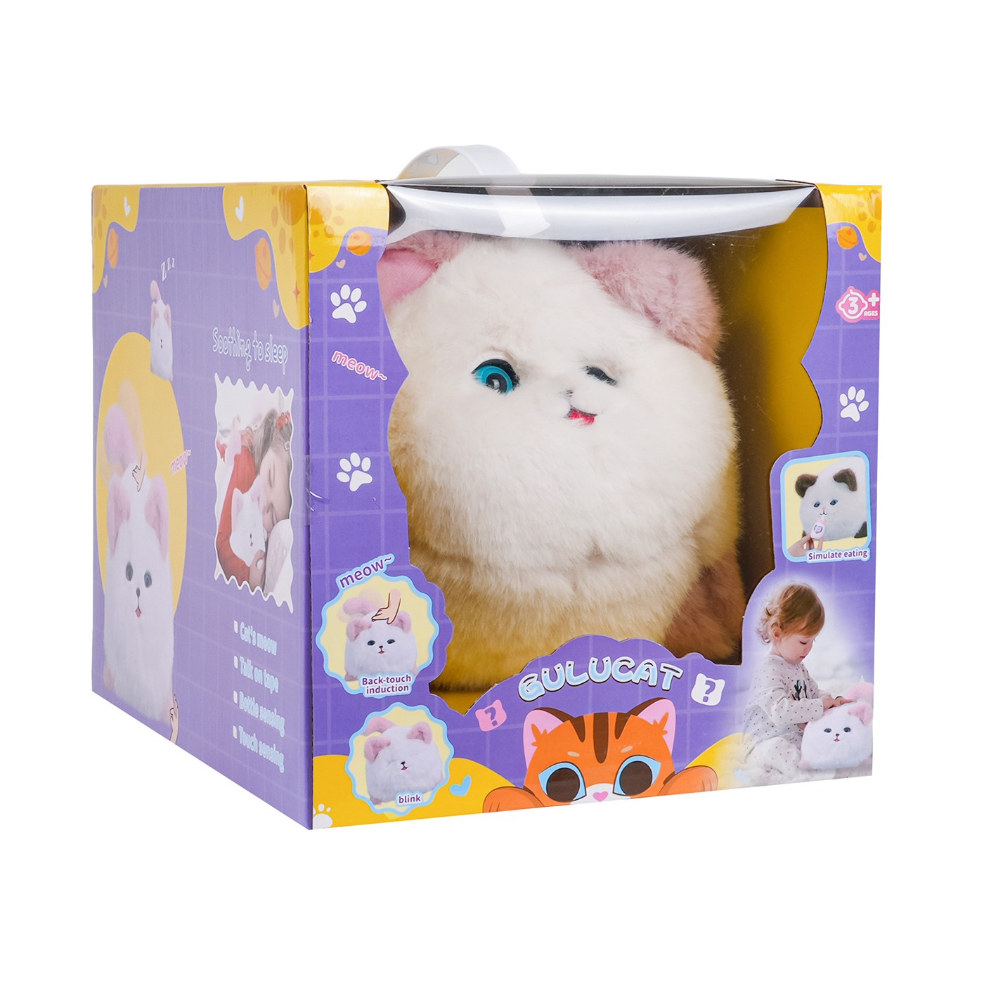 An interactive, sensory white kitten for children aged three and up. Made of soft, child-safe material, the kitten is perfect for petting and cuddling. The toy closely resembles a real animal and features interactive features. If you pet the kitten, it will wag its tail, blink its eyes, meow, and purr with contentment. The kitten responds to the bottle; if you give it to it, you'll hear drinking sounds. The kitten's paw features a button for recording and playback. Press the paw, and the kitten will speak your language. The toy is powered by 3 x AA 1.5V batteries.
