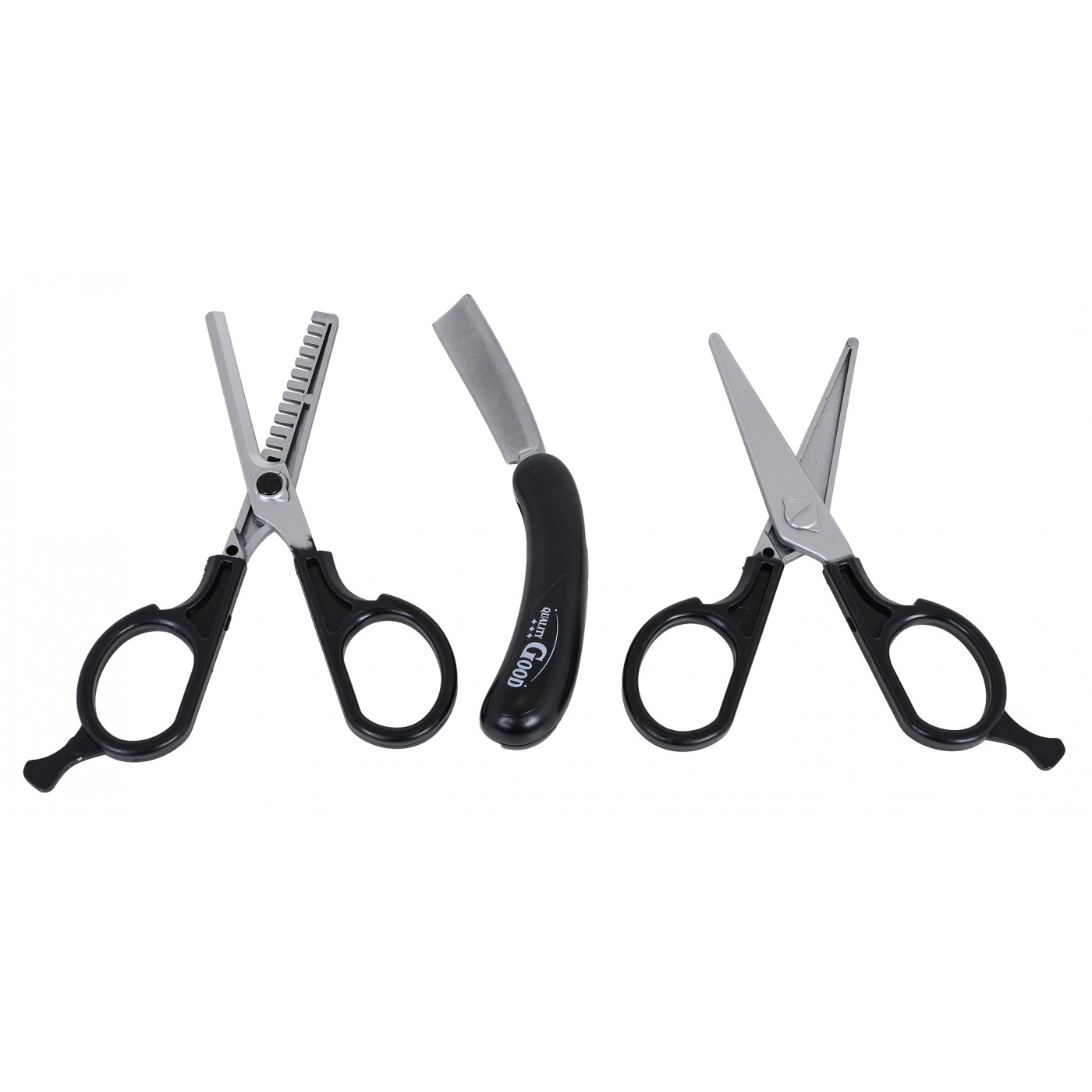 - machine, - 2 x replaceable razor heads, - 2 x cosmetics containers, - comb, - 2 x scissors, - 2 x VIP card |