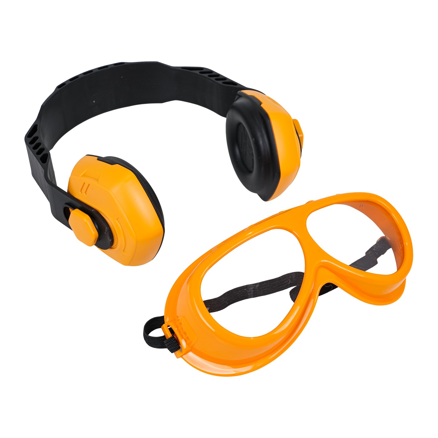 A DIY kit for little ones with a sander, safety glasses, and noise-canceling headphones for children aged three and up. The set is meticulously crafted, and the toy sander resembles a real one. Pressing a button causes the sanding disc to rotate, and you can also change the sanding disc depending on the material you're working on. The tool requires no batteries; it operates manually.