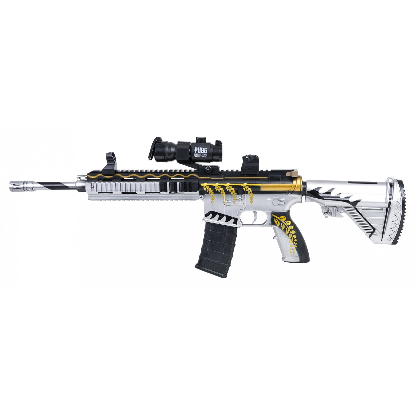 - M416 rifle, - magazine, - muffler, - crosshair, - USB cable, - 7.4V battery - a sachet of balls for preparation, - belt, - safety glasses, - instructions. |