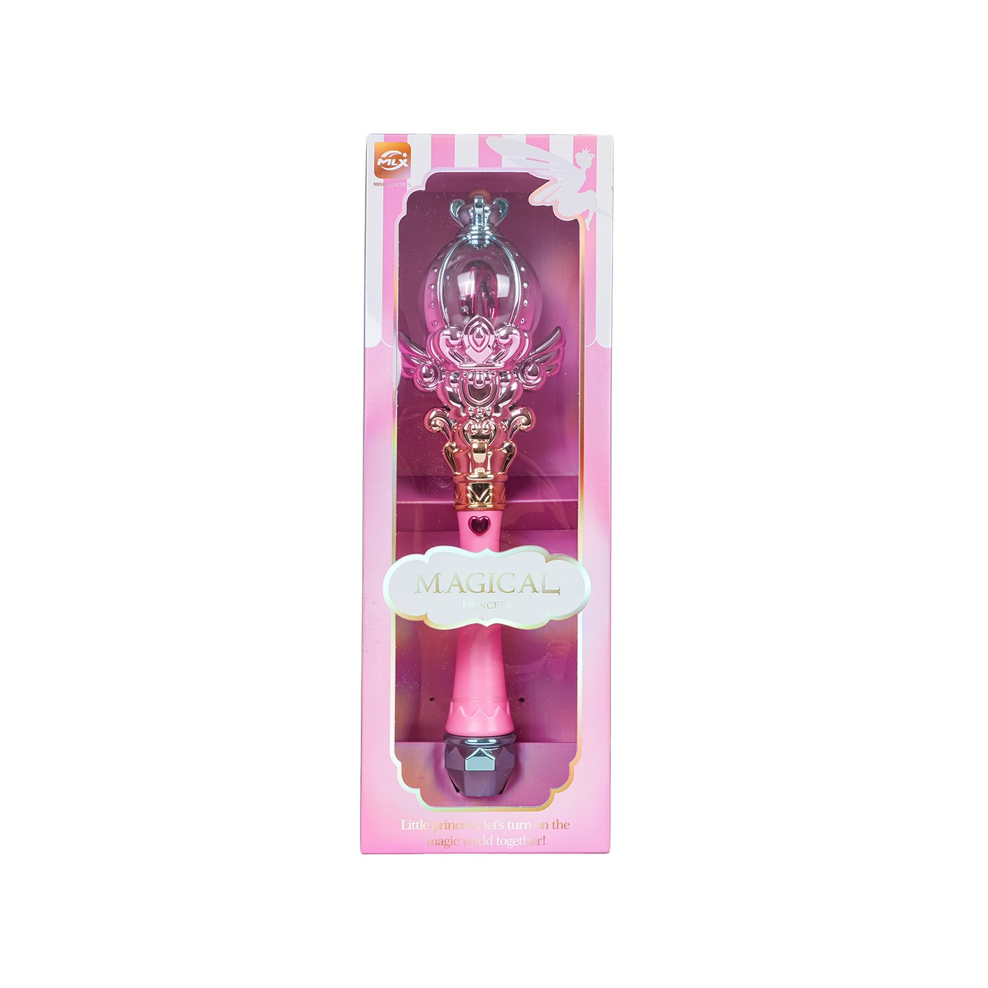 An interactive magic wand with sound and light effects for children aged three and up. The wand is made of safe and durable materials in vibrant colors. It is powered by 3 x AAA 1.5V batteries (not included).