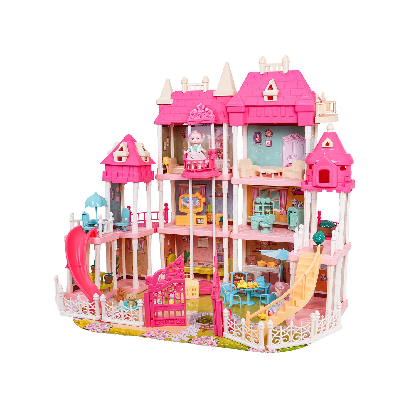 This beautiful, large, pink house with furnishings and dolls is perfect for children aged three and up. The large house features a bedroom, living room, TV room, study room, kitchen, dining room, storage room, stairs, balcony, slide, courtyard, and gate. Each room is fully furnished, and the set also includes two dolls. The set is made of high-quality plastic in vibrant, eye-catching colors. A cardboard base for the house is also included. The set is powered by 2 x 1.5V AAA batteries (not included). Batteries are needed for the house's lighting and music. Set features: - suitable for children over three years of age, - made of the highest quality plastic in vivid colors, - fully equipped, - many rooms, a large courtyard and 2 dolls included, - sound and light effects: a calm melody and a glowing lamp, - perfect for a gift. |