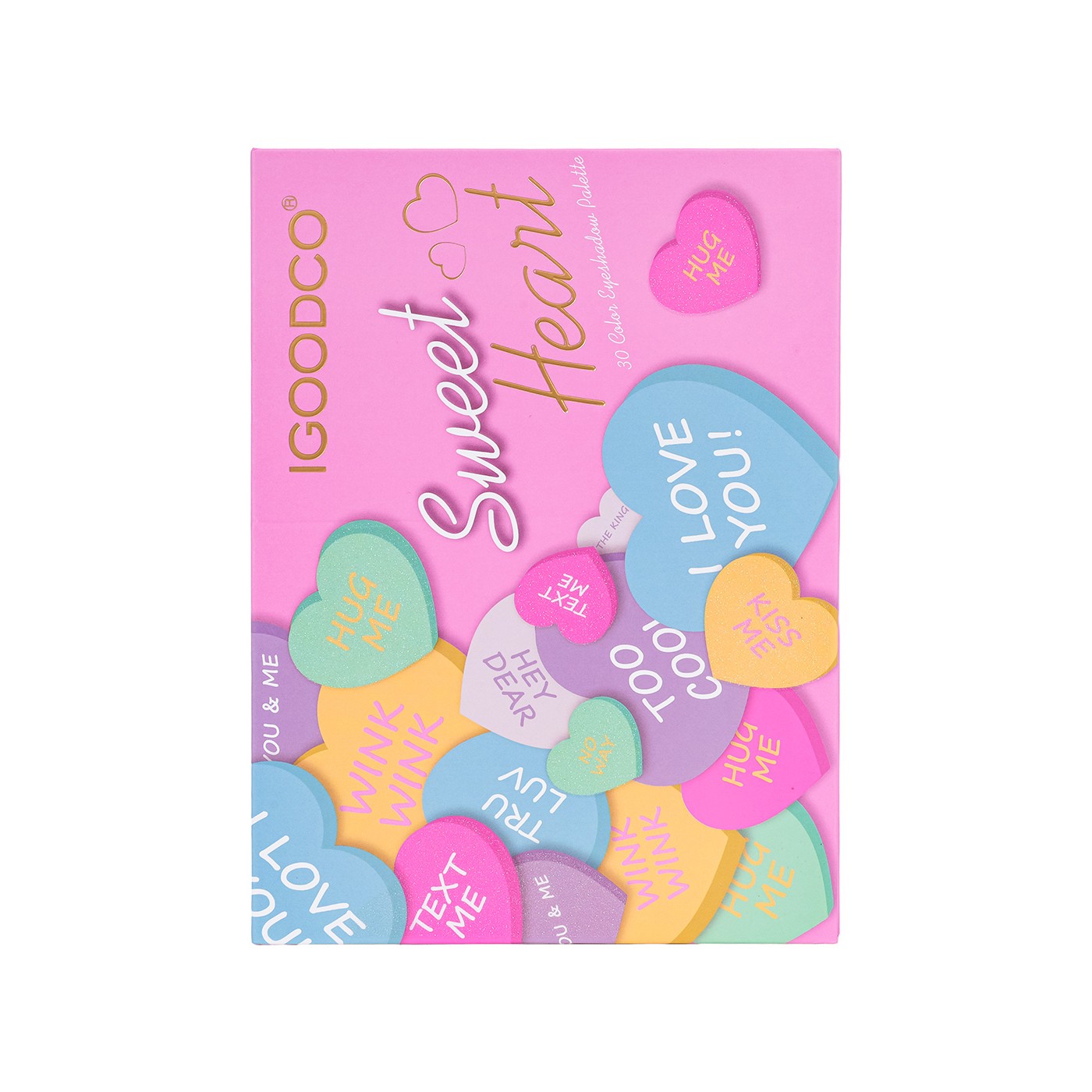 - palette with mirror, - 30 heart-shaped eyeshadows. |