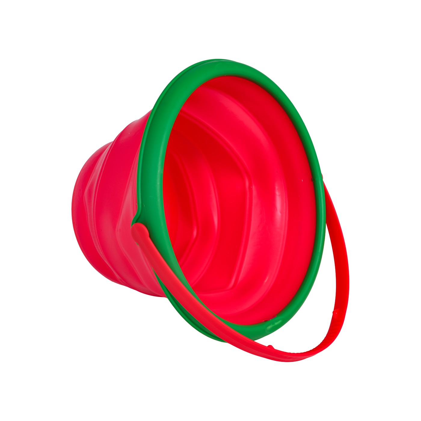 This sand play set includes a collapsible bucket, rake, watering can, and shovel for children aged three and up. It's the perfect set for the sandbox or the beach. The collapsible bucket doesn't take up much space, but it's spacious enough to take with you anywhere. Made of plastic and silicone, it's child-friendly and safe to use.