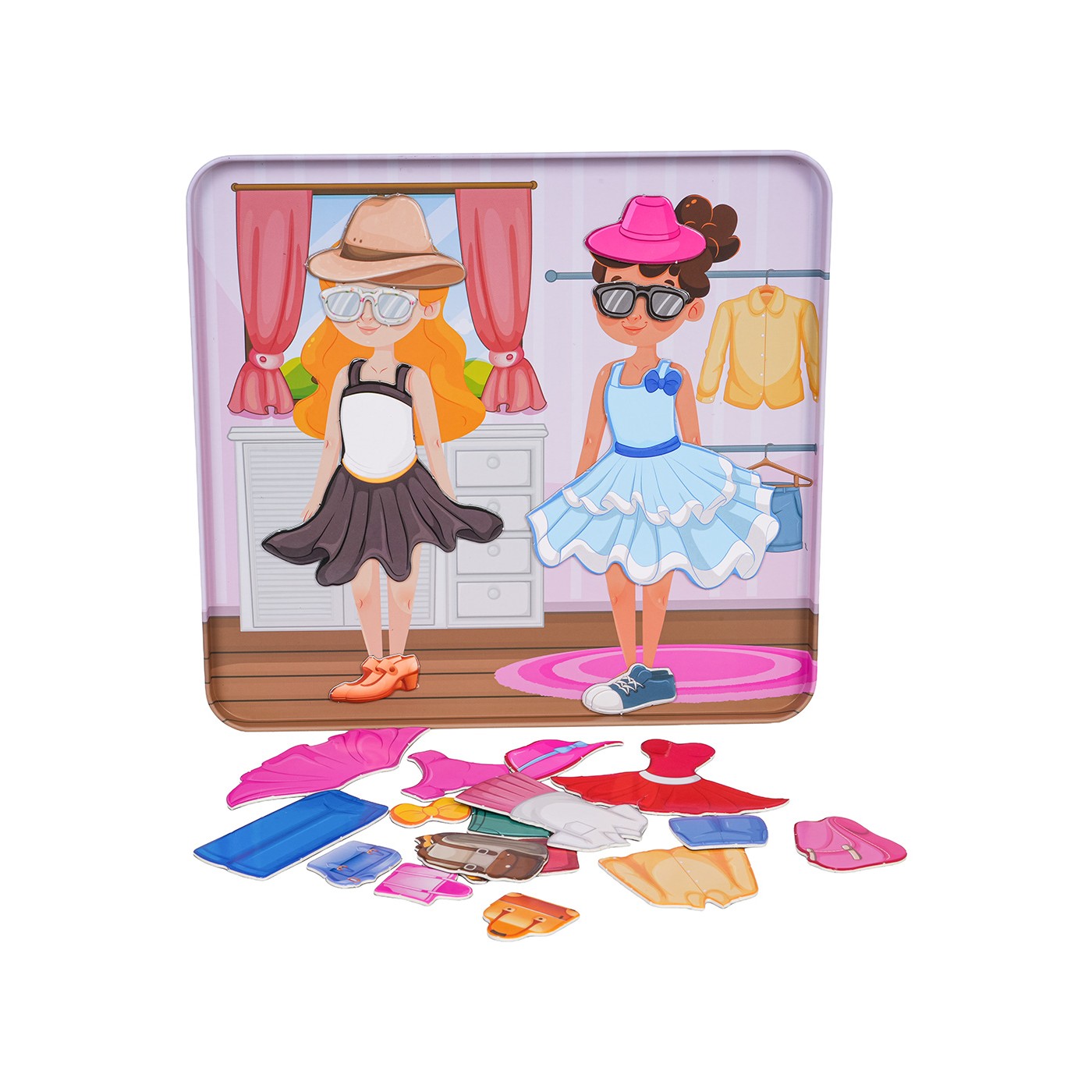 A magnetic stylist kit for children aged three and over. The kit consists of 25 magnetic pieces. The models on the box lid can be dressed to your liking. The kit develops creativity, manual dexterity, and imagination. Made entirely of magnetic components, the kit can be used anywhere without worrying about losing any pieces. Features: - set suitable for children over three years of age, - made of magnetic elements, - perfect gift set. |