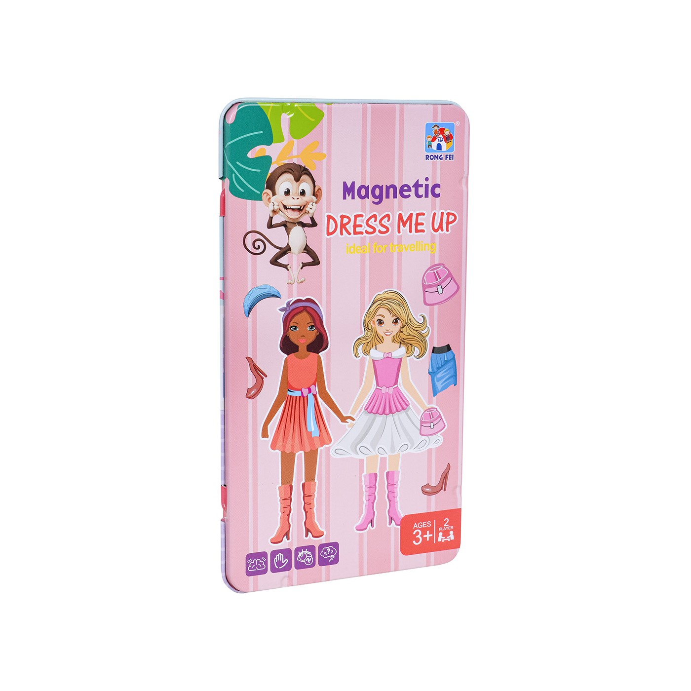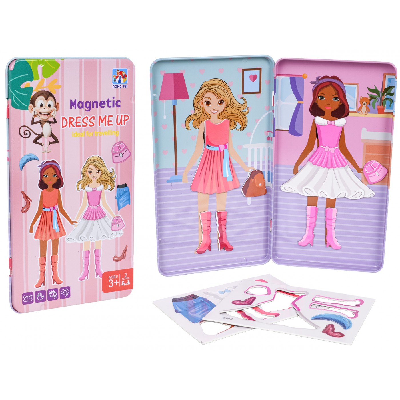 A magnetic stylist/stylist set for children aged three and over. The set consists of 13 magnetic clothing items. The models on the inside of the box lid can be dressed to your liking. The set develops creativity, manual dexterity, and imagination. Made entirely of magnetic elements, the set can be used anywhere without worrying about losing pieces.