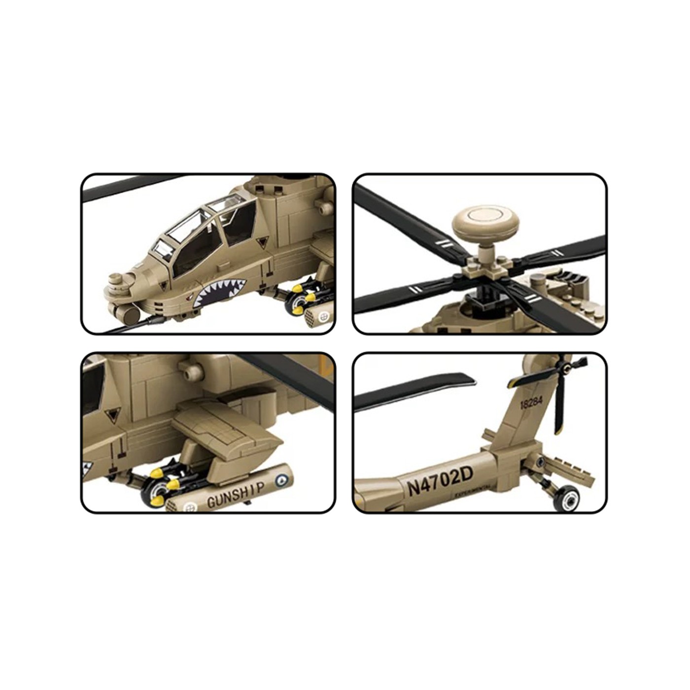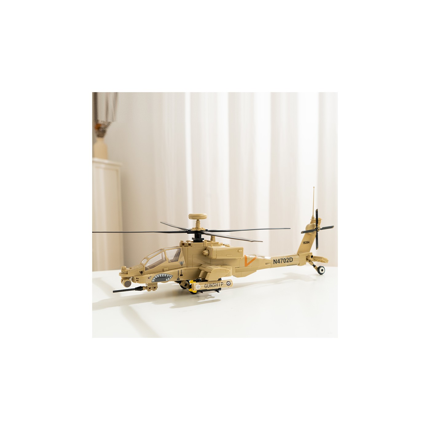 High-quality building blocks for children aged six and up. This set consists of 255 pieces that can be used to build a military helicopter. This stunning helicopter model is sure to attract attention with its detailed design.