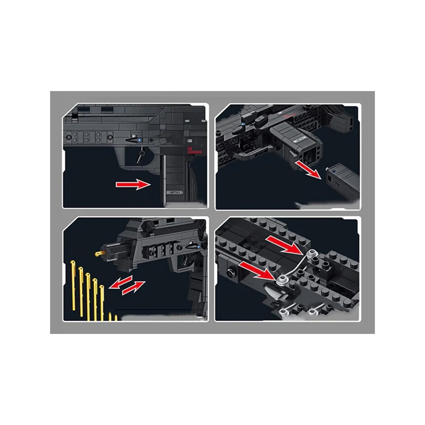 High-quality building blocks for children aged six and up. This set consists of 625 pieces, from which you can build a rifle that fires projectiles.