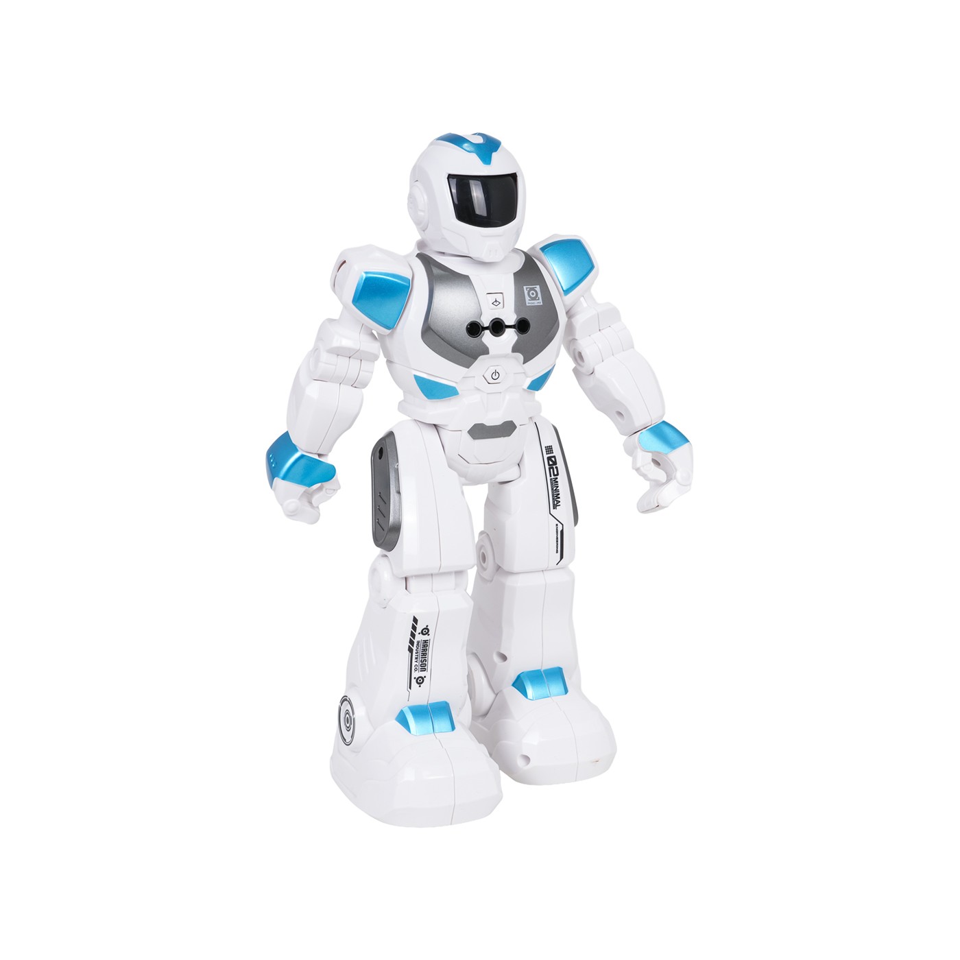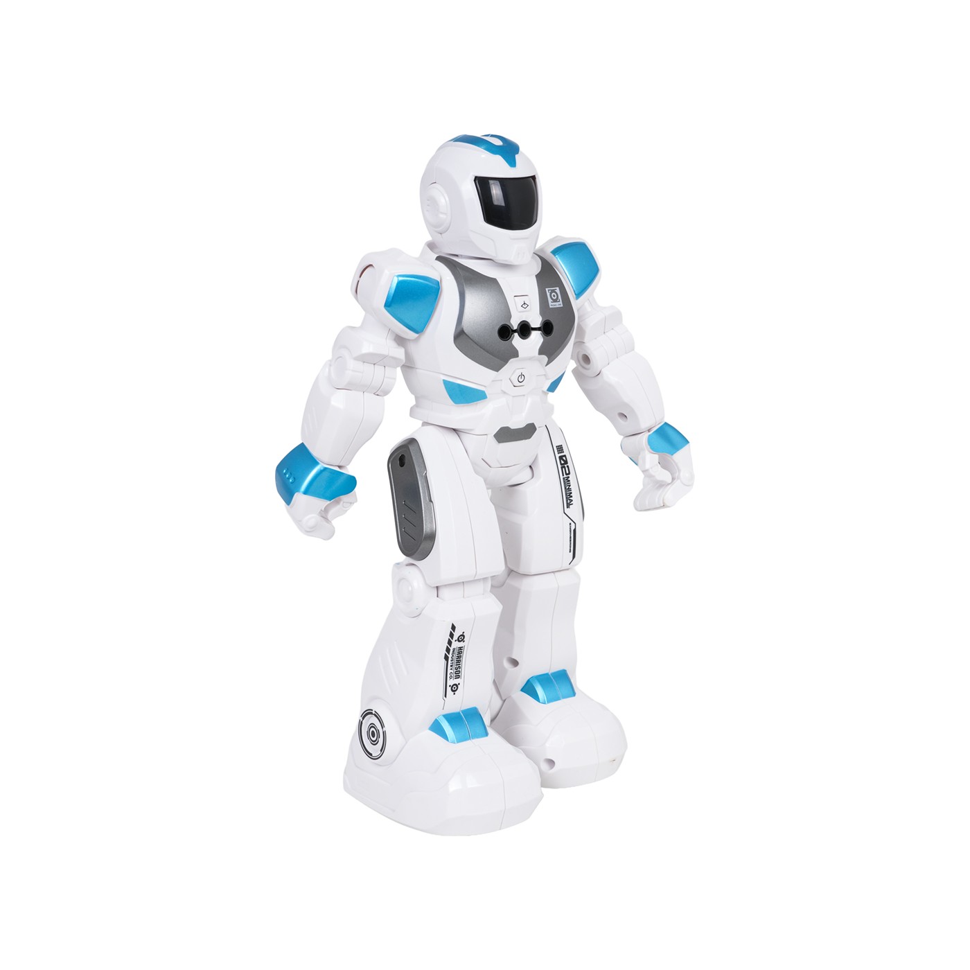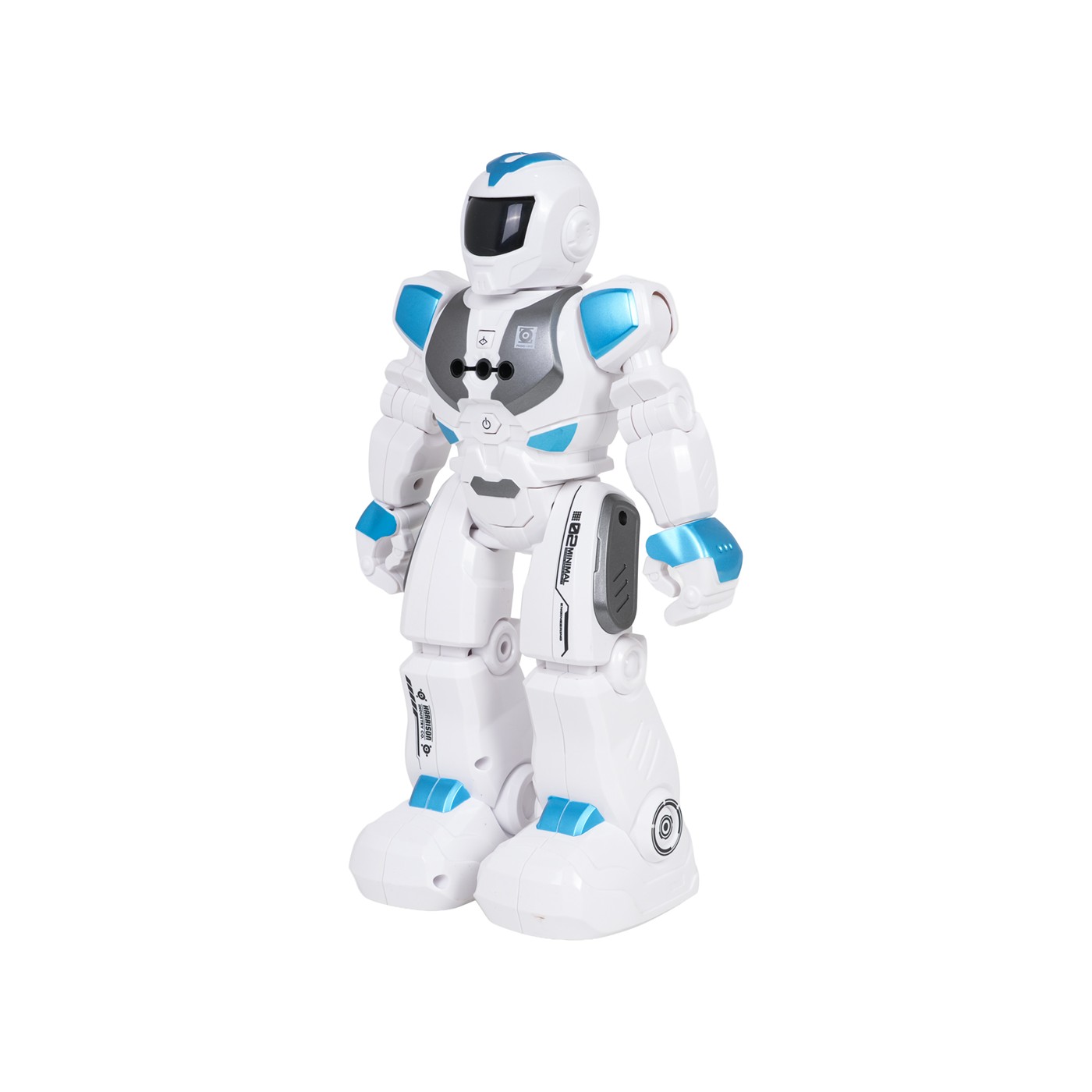 The interactive Minimal 02 robot is designed for children aged three and up. The robot is made of high-quality plastic. It features light-up eyes, responds to hand gestures, moves in all directions, walks, moves its arms, and dances. The toy features programmable movements and a demo mode that showcases its full capabilities. The robot is powered by a 3.7V rechargeable battery (included), and the remote control uses 2 x AA 1.5V batteries (not included). Features: - for children from three years of age, - remotely controlled 2.4 GHz, - illuminated eyes, - moves forward, backward, turns left and right, rotates, stops, - walks forward, backward, turns right and left, turns, stops, - moves at two speeds, - moves his shoulders, - a demo function in which it shows all its possibilities, - robot movement programming function, - dances to the accompaniment of music (3 modes), - motion sensor, responds to hand gestures. |