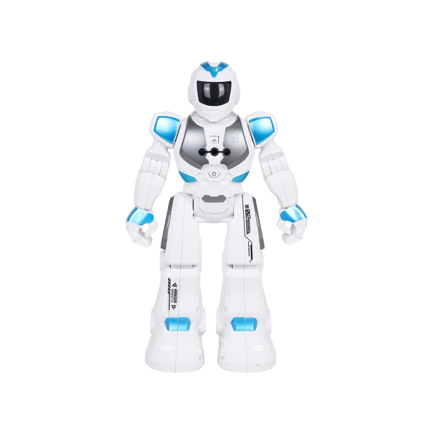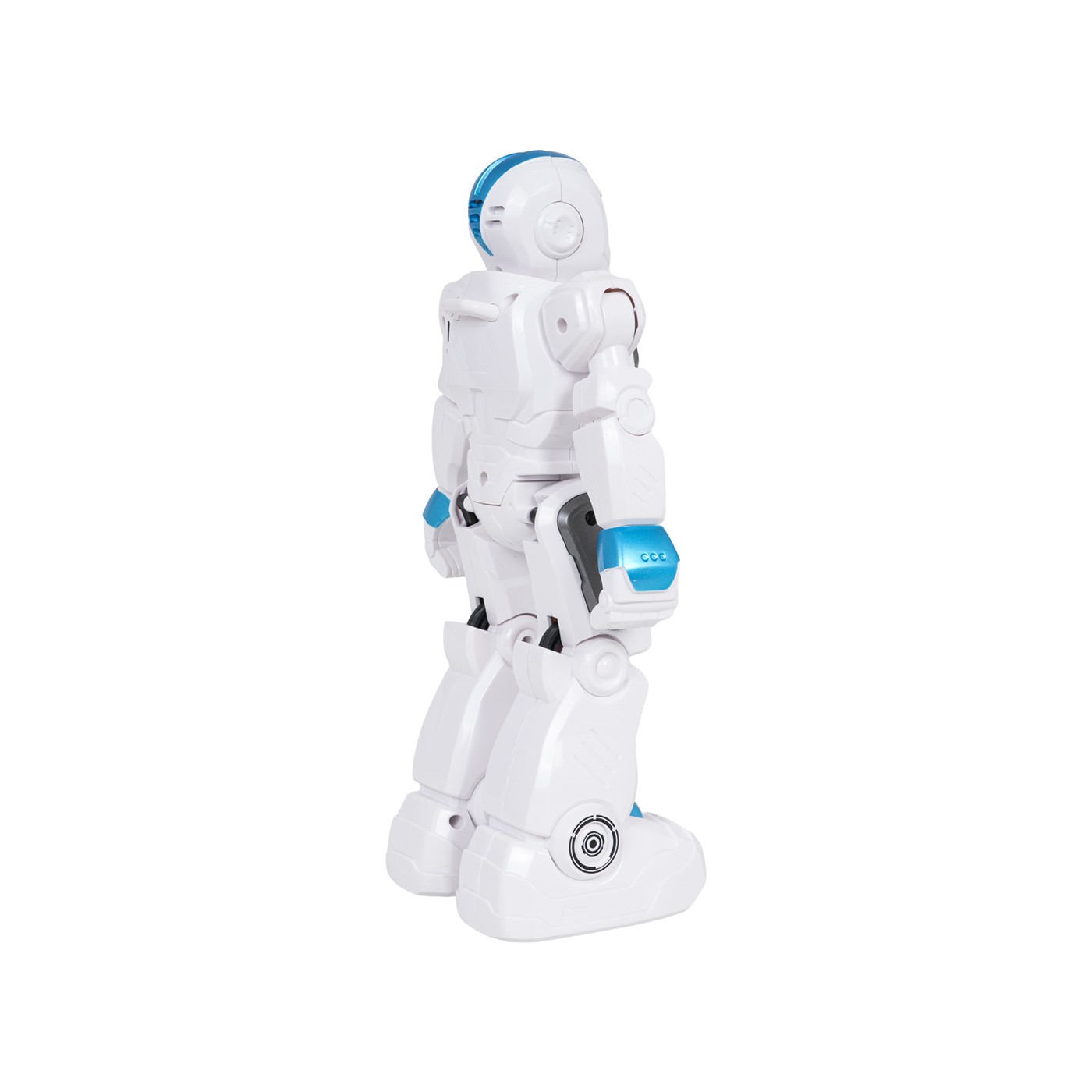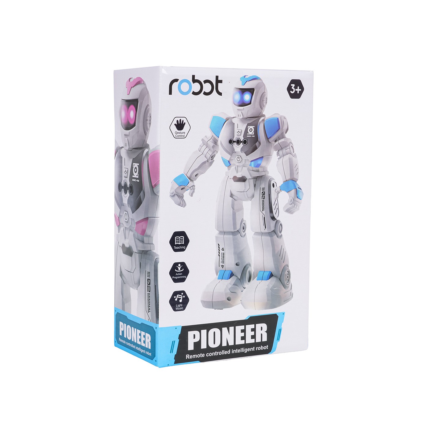 The interactive Minimal 02 robot is designed for children aged three and up. The robot is made of high-quality plastic. It features light-up eyes, responds to hand gestures, moves in all directions, walks, moves its arms, and dances. The toy features programmable movements and a demo mode that showcases its full capabilities. The robot is powered by a 3.7V rechargeable battery (included), and the remote control uses 2 x AA 1.5V batteries (not included). Features: - for children from three years of age, - remotely controlled 2.4 GHz, - illuminated eyes, - moves forward, backward, turns left and right, rotates, stops, - walks forward, backward, turns right and left, turns, stops, - moves at two speeds, - moves his shoulders, - a demo function in which it shows all its possibilities, - robot movement programming function, - dances to the accompaniment of music (3 modes), - motion sensor, responds to hand gestures. |