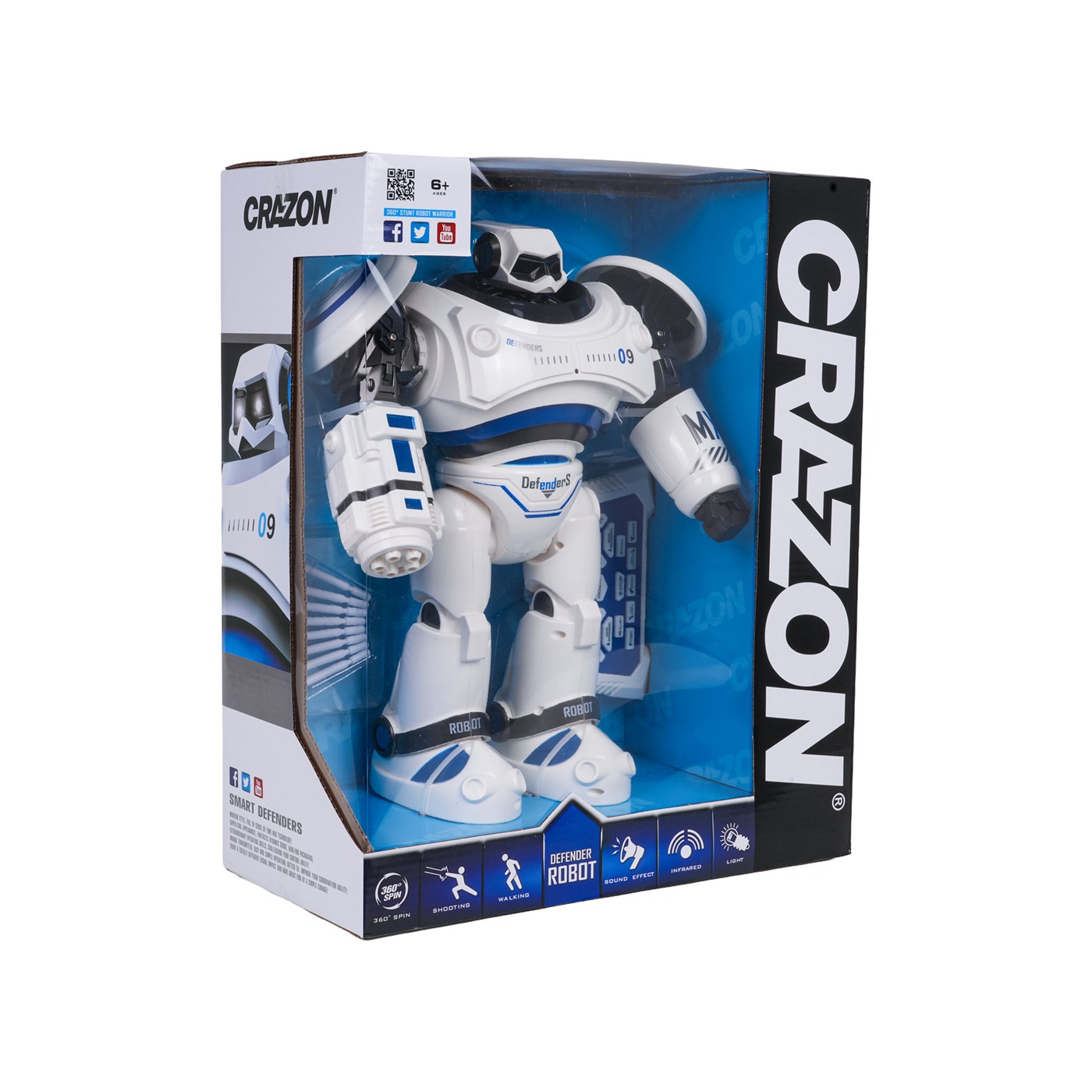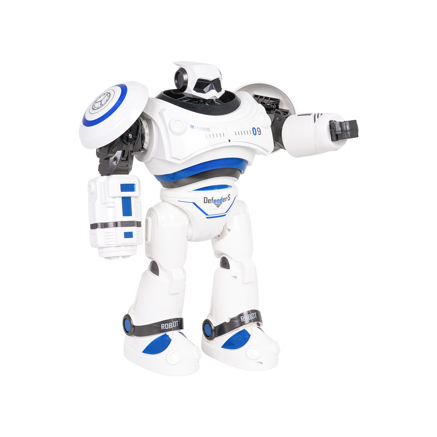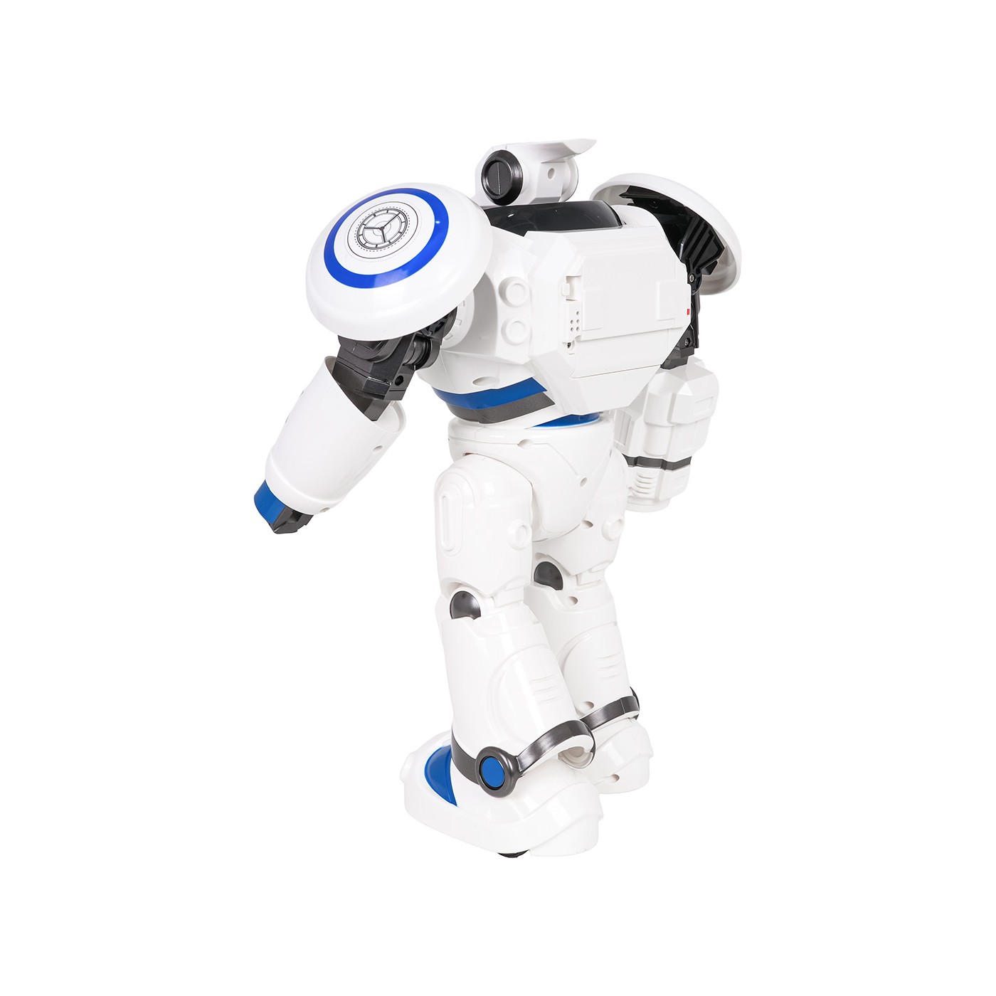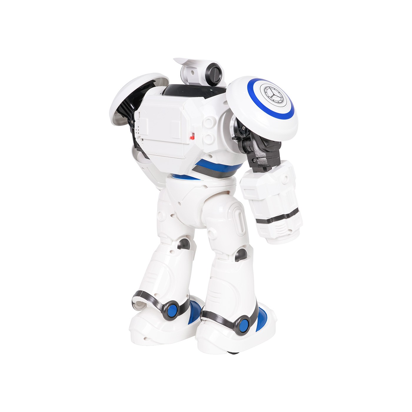 Features: - for children from six years of age, - made of solid materials, - illuminated robot eyes, - multi-stage volume control, - moves forward, backward, turns right and left, and also performs a 360-degree turn, - shoots plastic suction cups, - moves his shoulders, - movement programming, - dancing, - sings, - demo function showing the robot's capabilities, - stop button, - the firing range of the bullets is approximately 5 m, - the perfect gift set. |