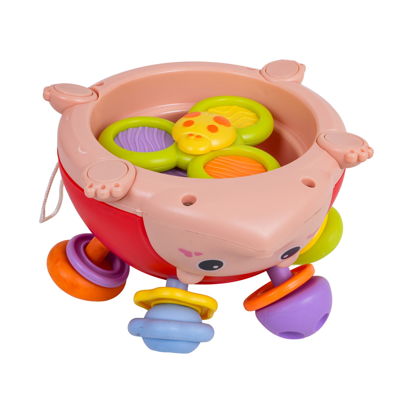 A multifunctional, sensory, and manipulative toy for toddlers from eighteen months of age. Made of child-safe materials, it has no sharp edges. Vibrant colors attract little ones' attention and encourage educational play. The toy offers children many play options. The protrusions on the hedgehog are soft and have various textures, which will aid teething. Below the protrusions are colorful rings that make a rattling sound when shaken. The protrusion at the center of the hedgehog's top can be pushed and pulled, strengthening baby's fingers. The hedgehog's arms and legs are attached to the body with an elastic band, which the baby can pull. A spinner is located underneath the hedgehog, which can be rotated. Instead of a tail, the hedgehog has a string, so it can be hung, for example, on a bed. Features: - a toy for children from eighteen months of age, - made of the best quality materials, - has no sharp edges, - it offers many opportunities for play, exercises hands, stimulates on many levels, - vivid colors encourage play. |