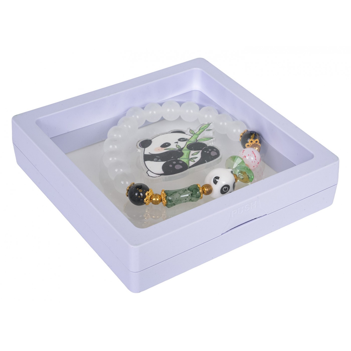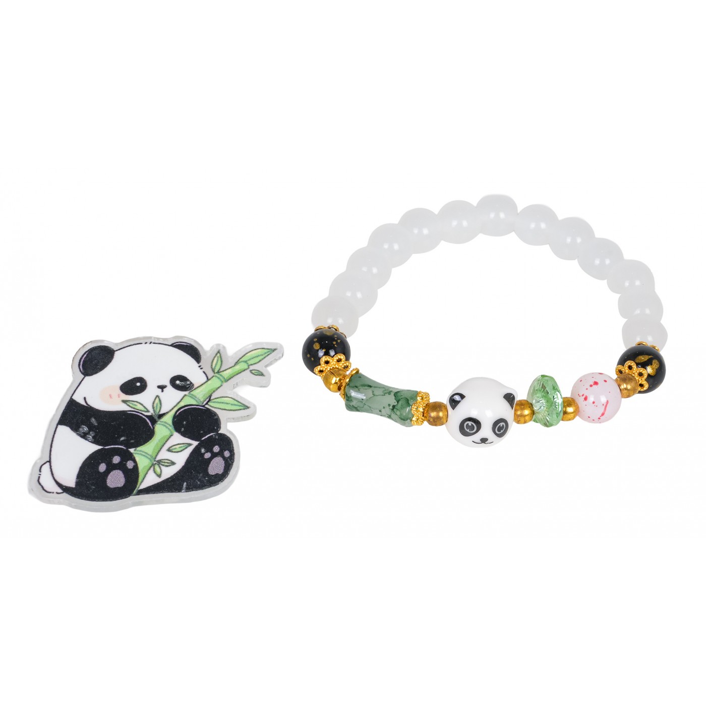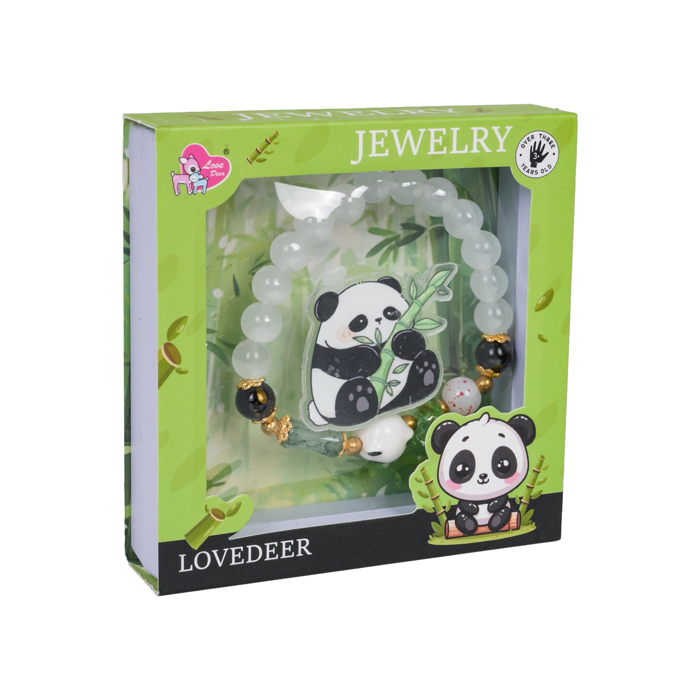 This panda jewelry set is perfect for children aged three and up. The set includes a beautiful bracelet made of multicolored beads, a panda head element, and a panda clasp. The set is crafted with attention to detail and vibrant colors.