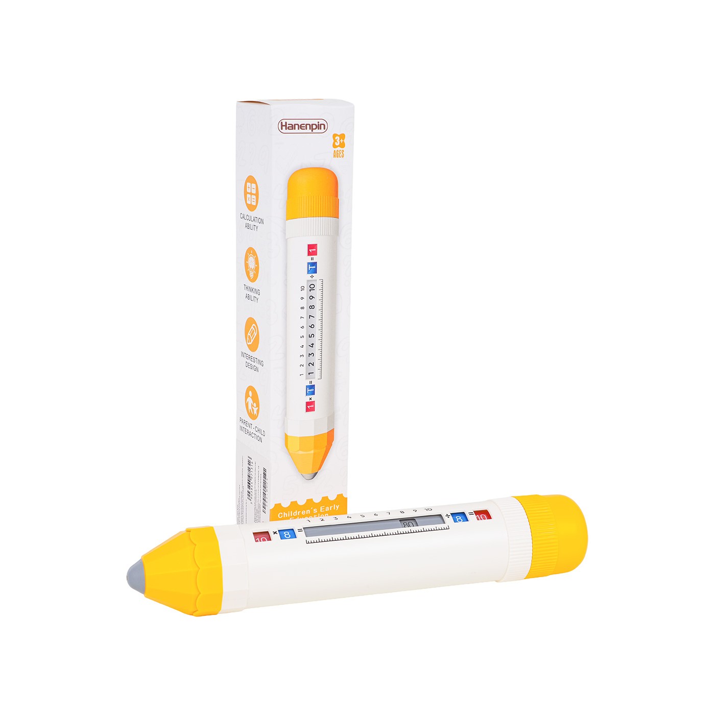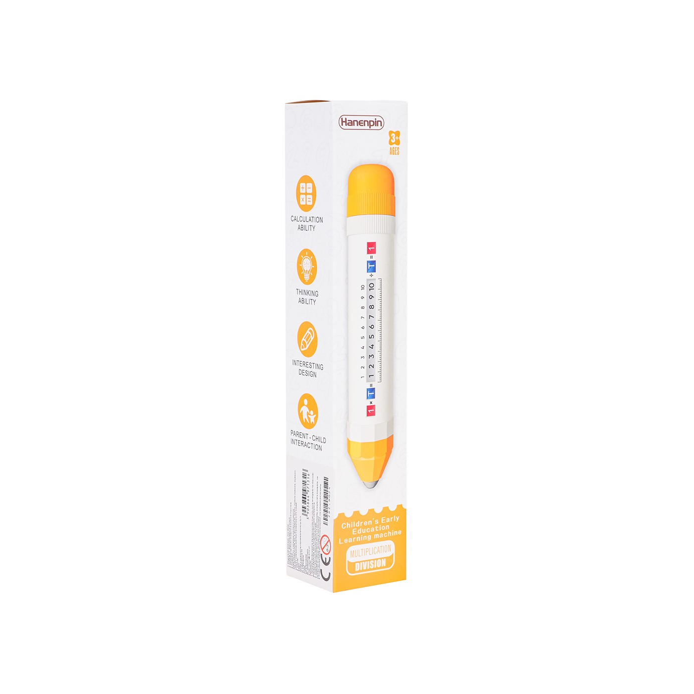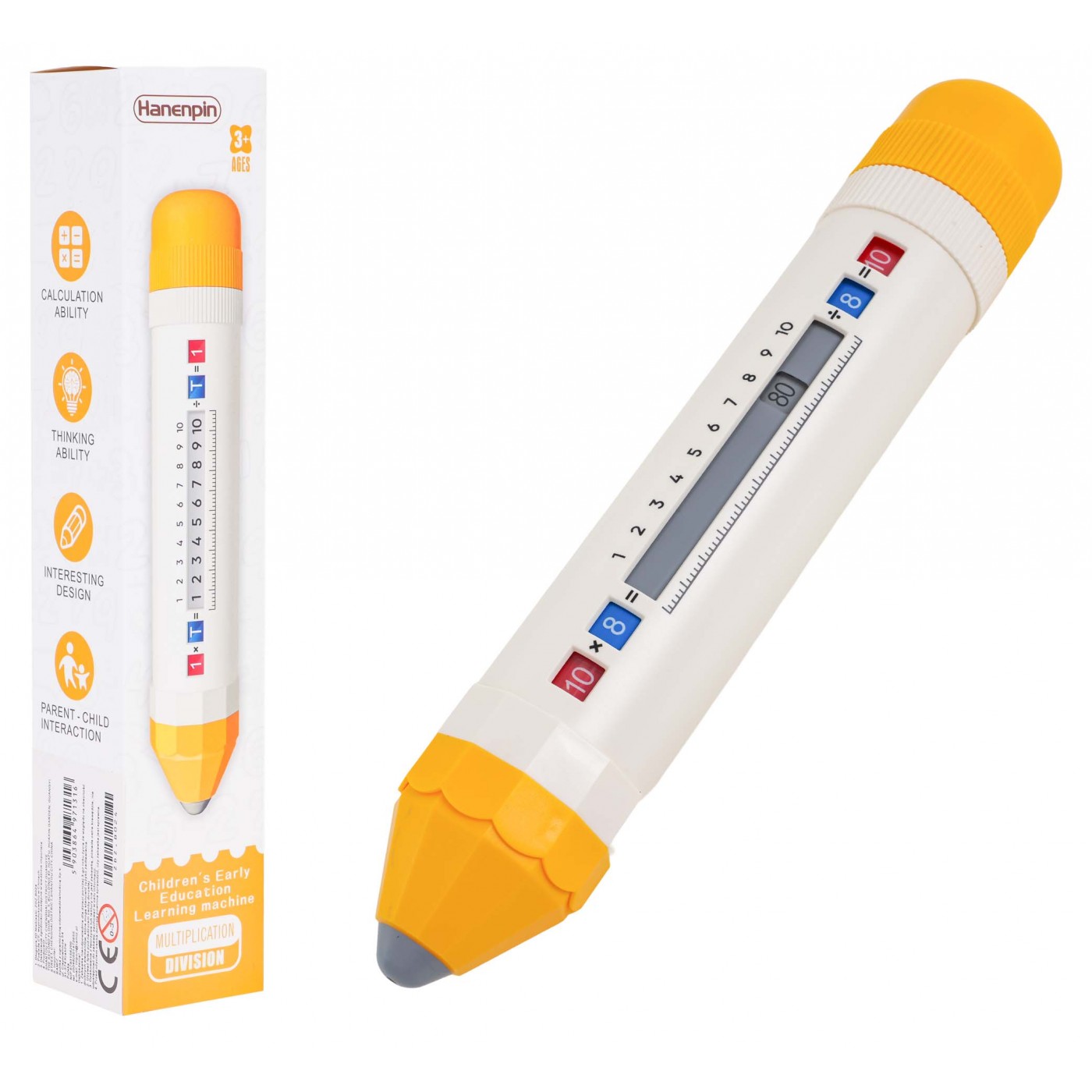 An educational pen for teaching multiplication and division for children aged three and up. The pen is easy to use; simply twist the two handles at either end to obtain the multiplication or division result. This toy teaches through play.