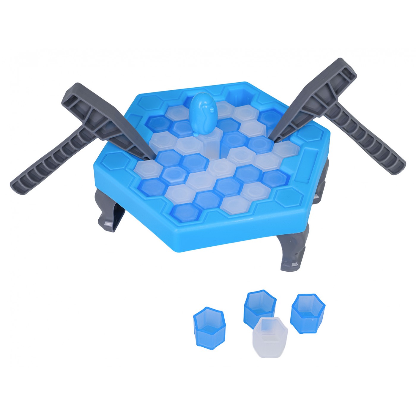 - 2 x hammer, - penguin figurine, - spinning disc, - 19 x white ice cubes, - 19 x blue ice cubes, - gaming table. |