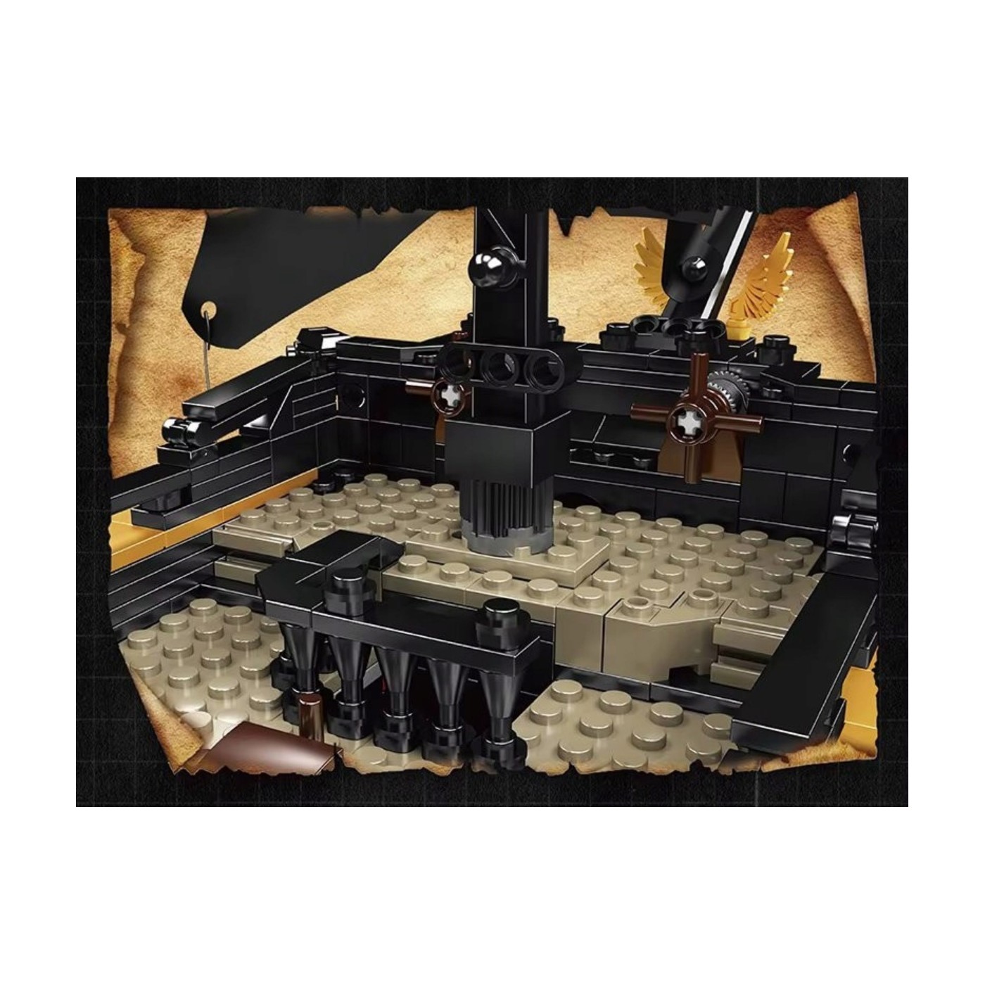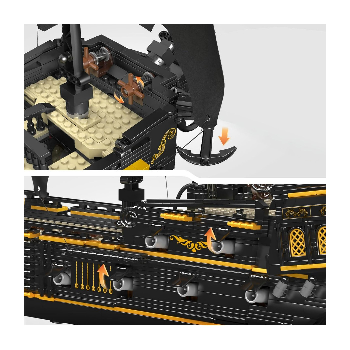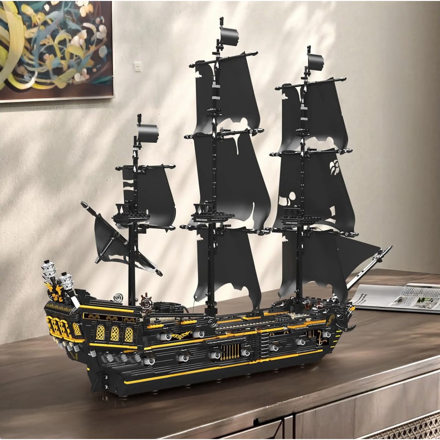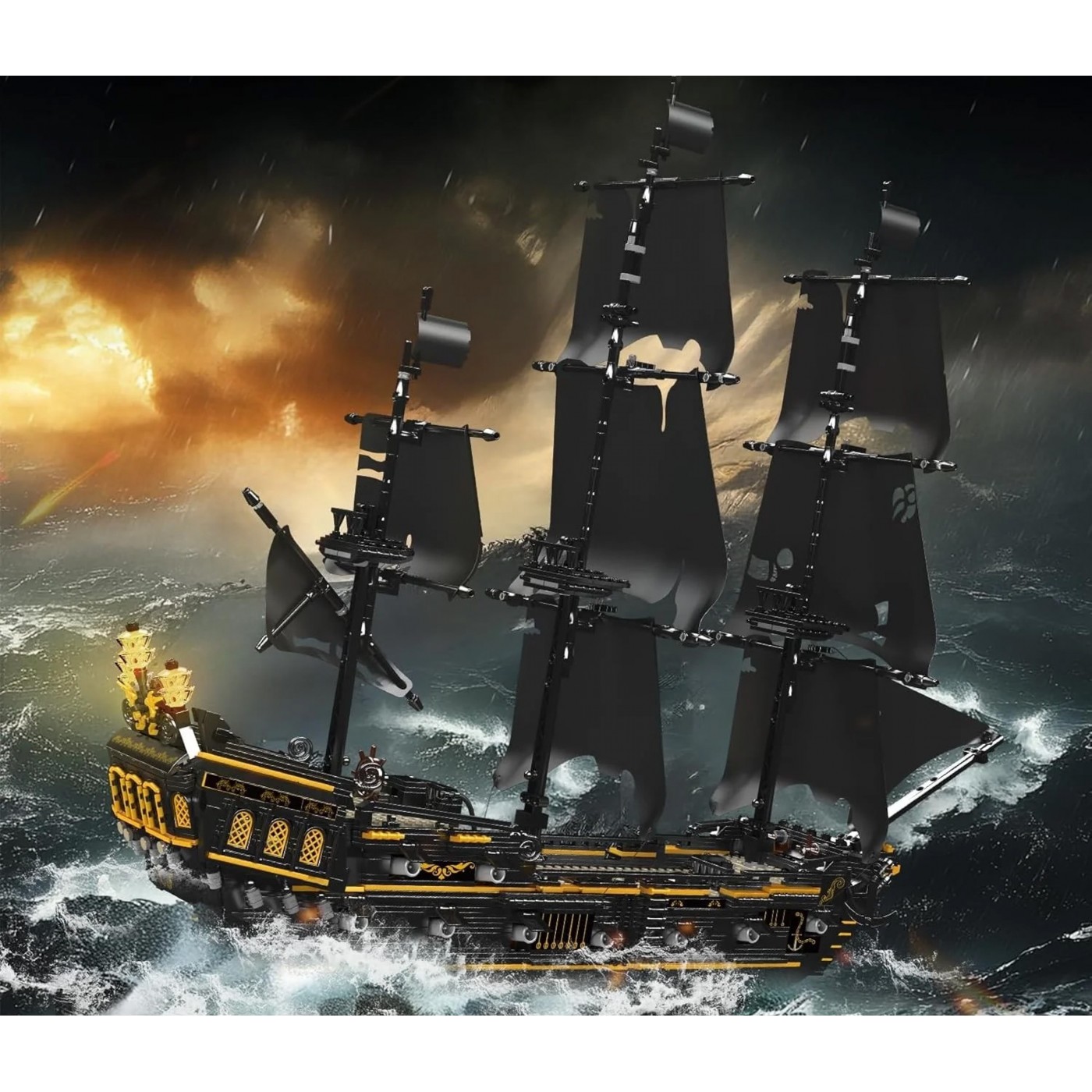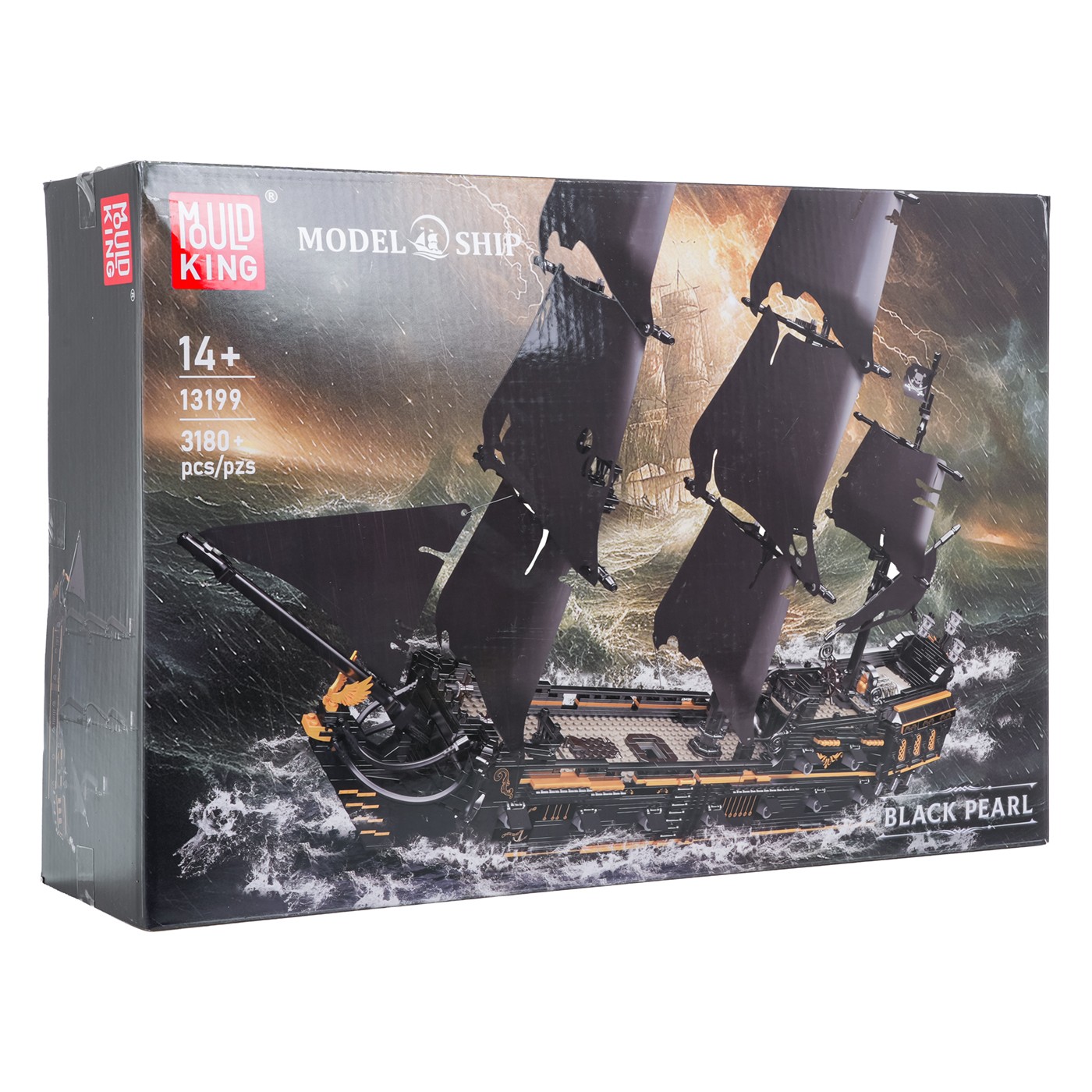 High-quality Mold King building blocks for children aged fourteen and up. This set consists of 3,180 pieces, allowing you to build a black pirate ship. This stunning model is sure to attract attention with its detailed features: a removable deck and a realistic sail.
