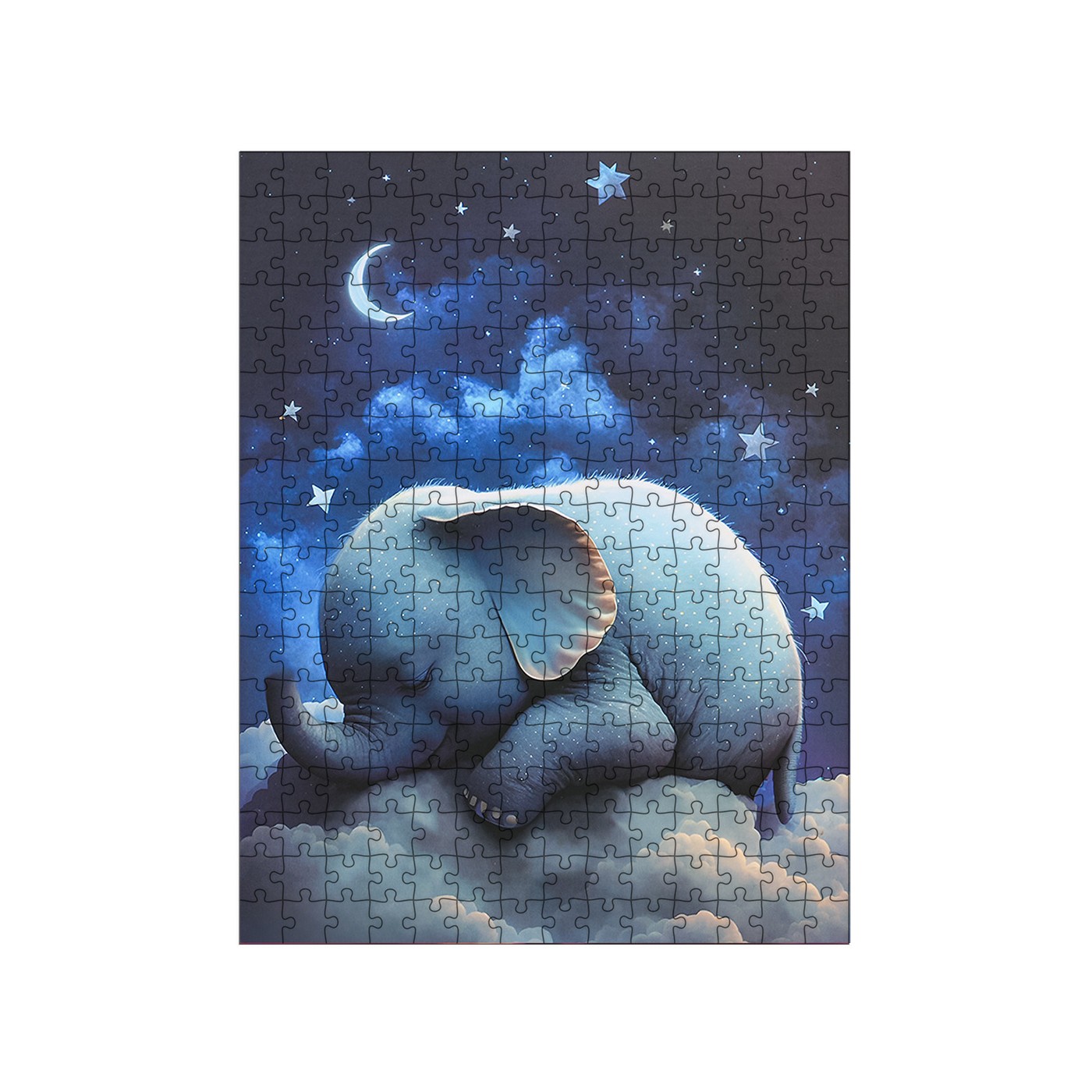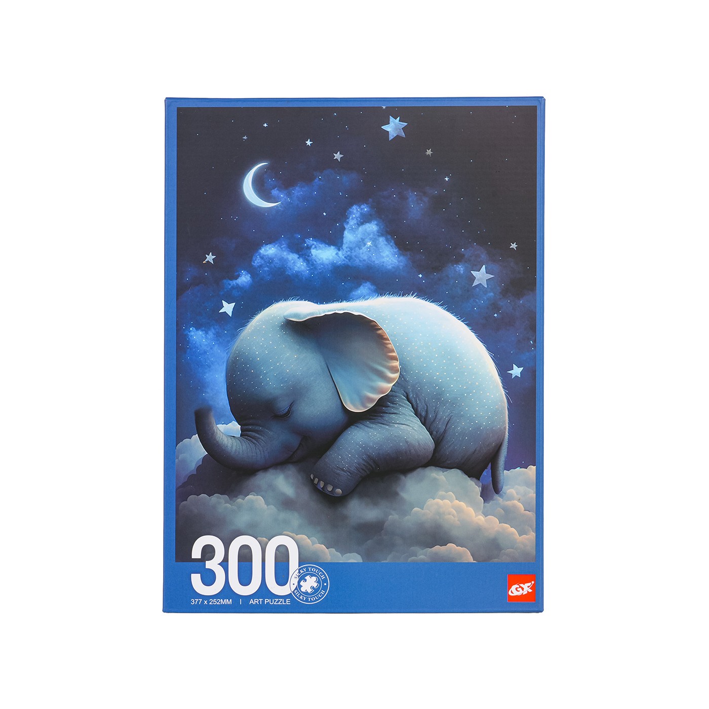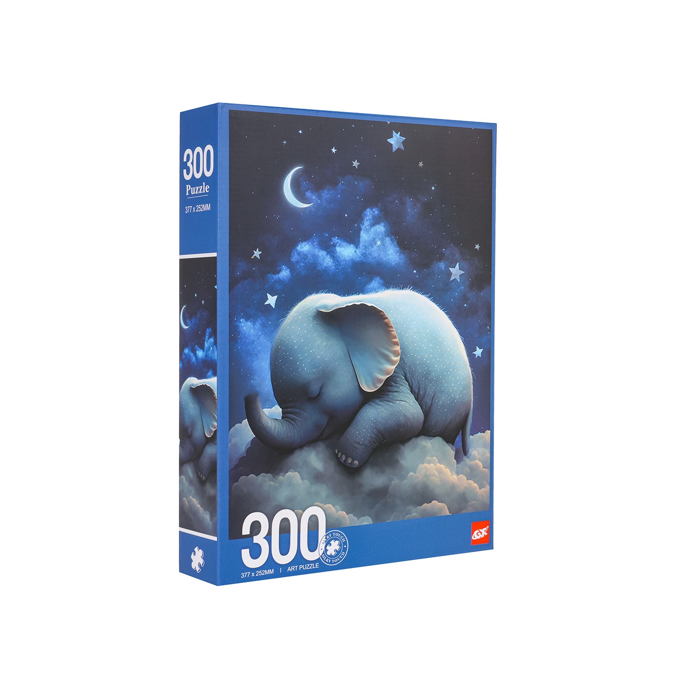 A 300-piece puzzle set featuring an elephant in the clouds for children aged eight and up. Putting together a puzzle teaches us concentration and focus on one thing. It helps us de-stress and forget about problems. Puzzles teach us logical thinking, shape matching, and have a beneficial effect on our visual memory.