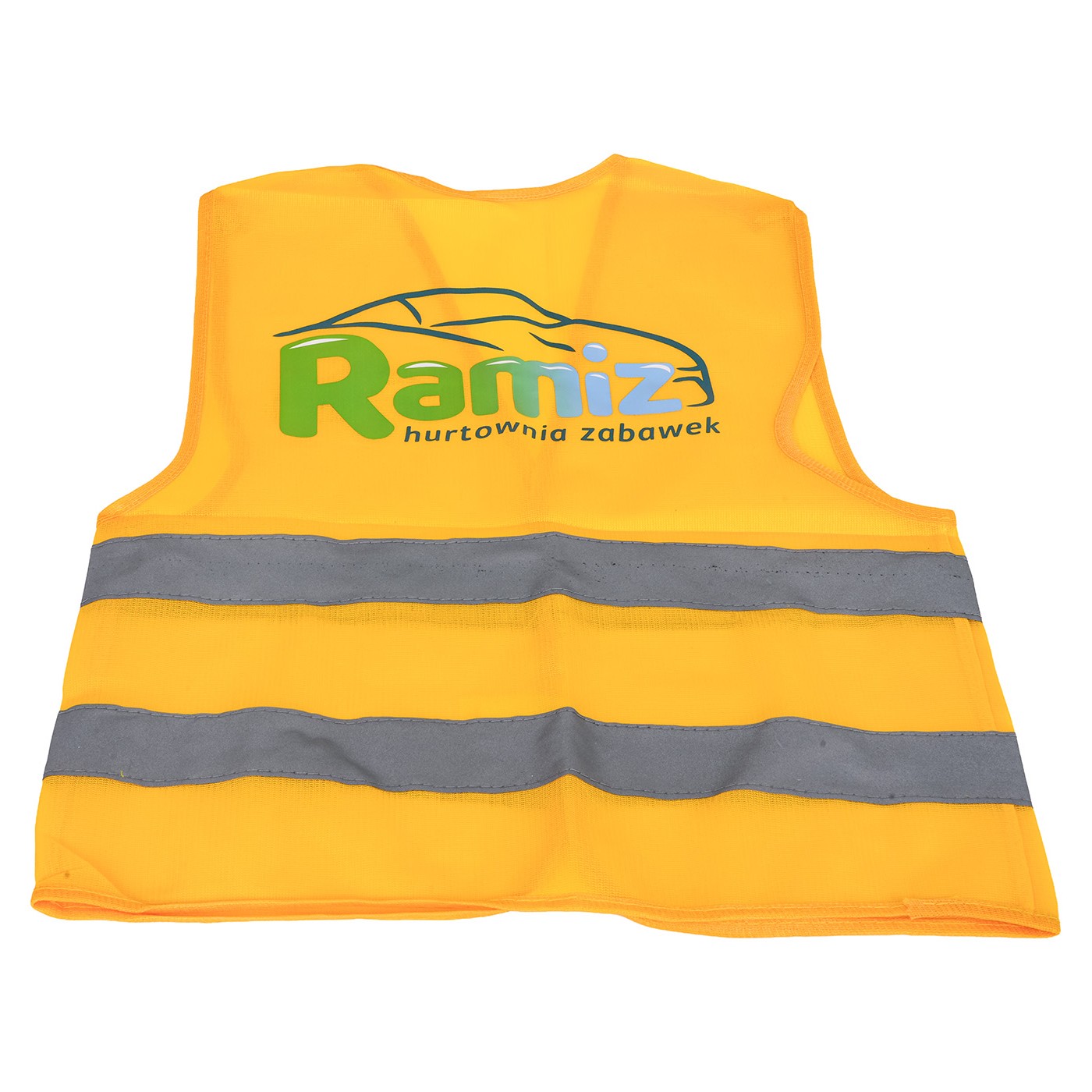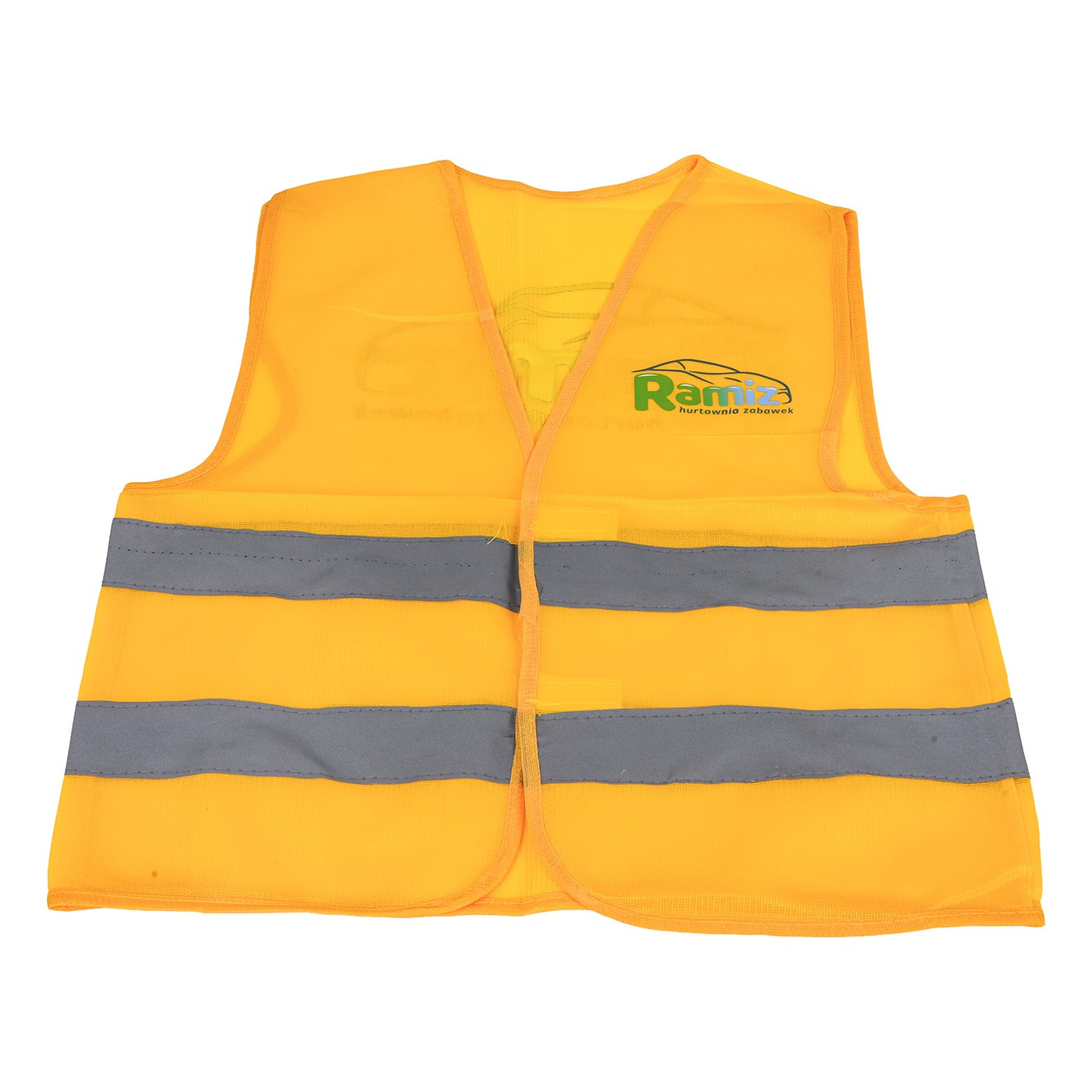 A Ramiz reflective vest for children aged three and up. This vest will increase your child's visibility and road safety while walking, cycling, or playing outside on a cloudy day.