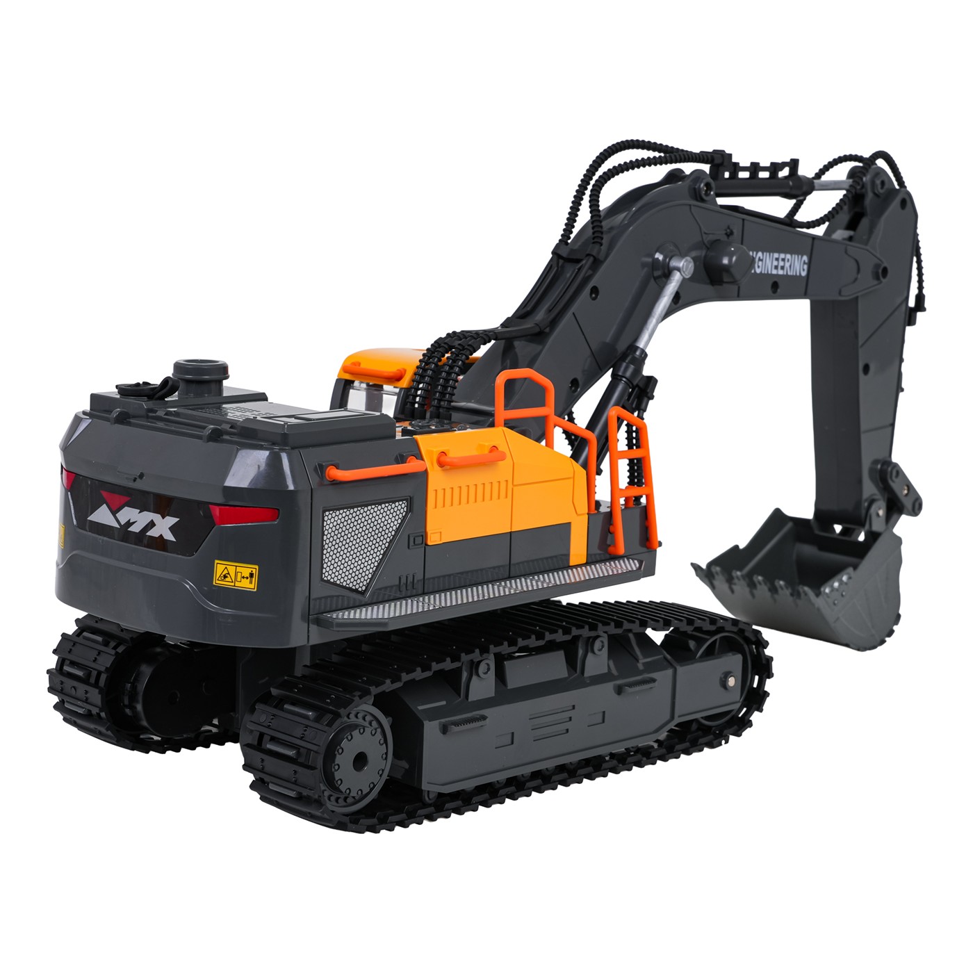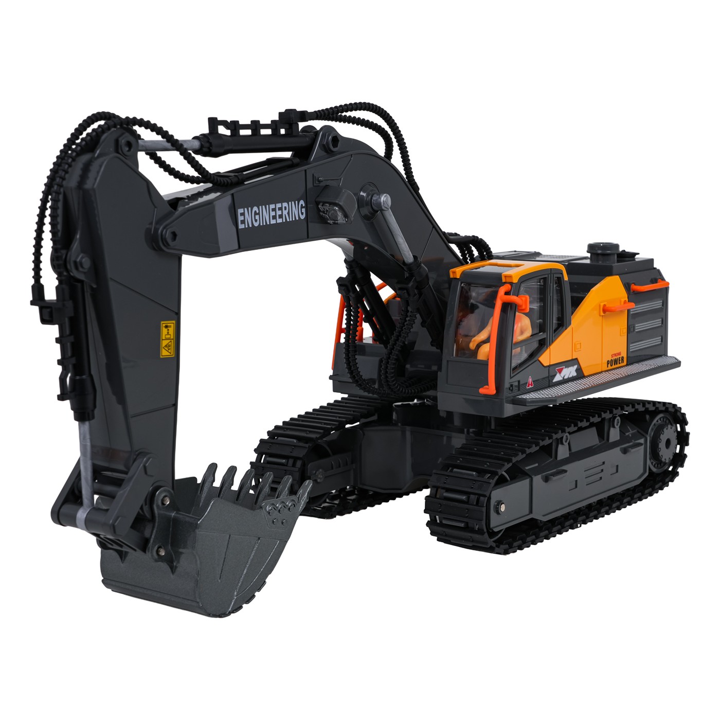 Excavator functions: - suitable for children from eight years of age, - 2.4 GHz remote control - lighting of the rear of the vehicle and the excavator arm, - smoke function, - arm movable up and down, - the bucket performs the scooping and pouring maneuver, - metal spoon, - drives in all directions, - 360-degree rotating body, - demo mode, - excavator operating sounds, reversing sound, - ability to turn off sounds and lighting, |