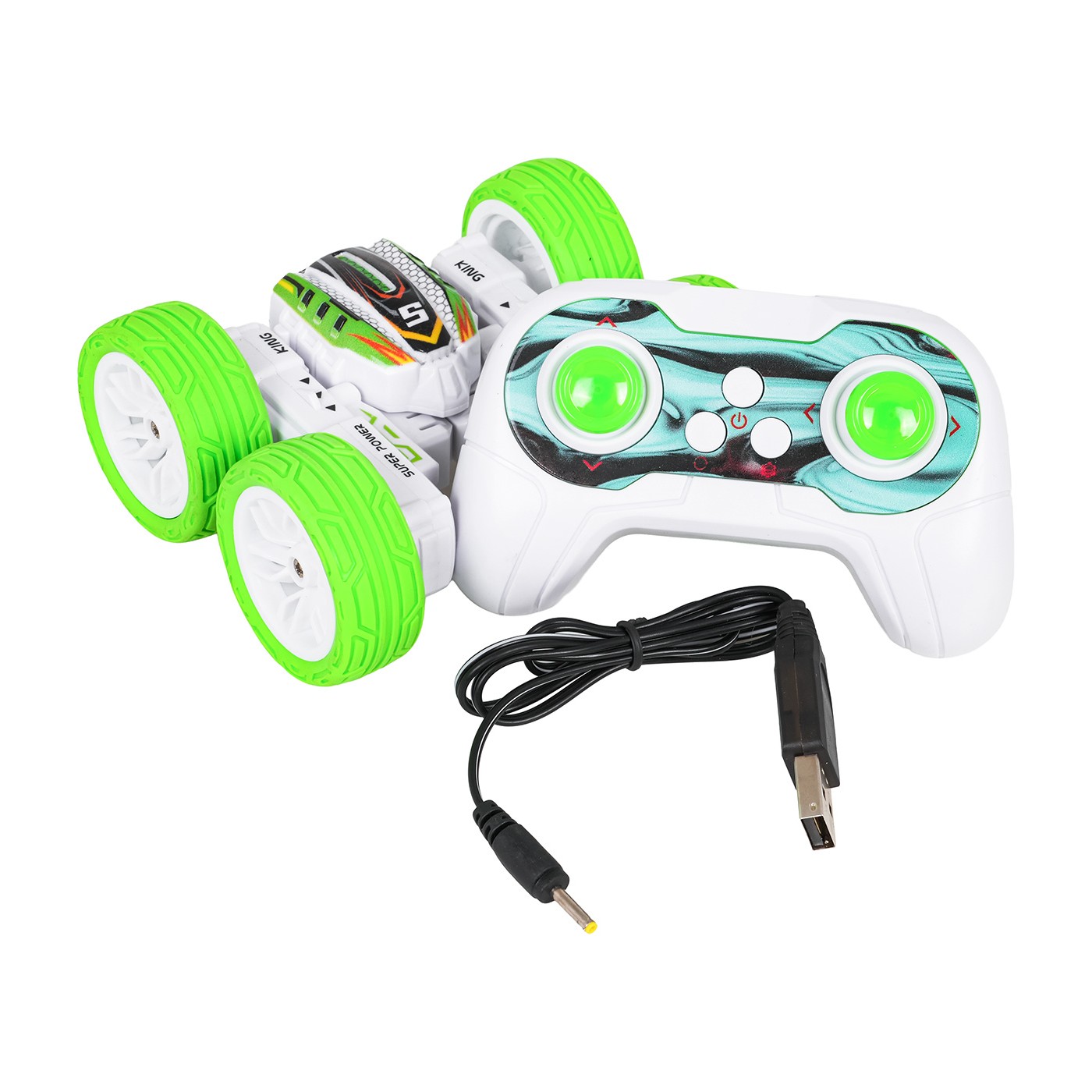- car, - RC remote control, - battery charging cable. |