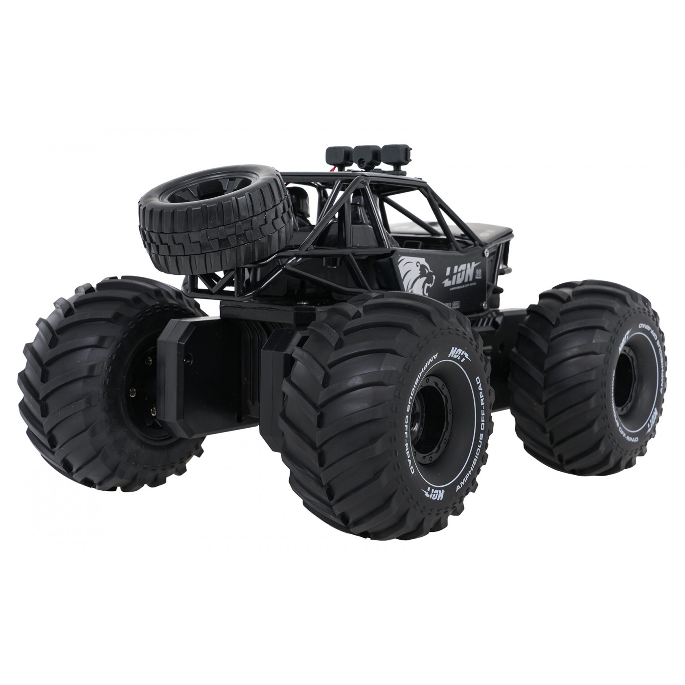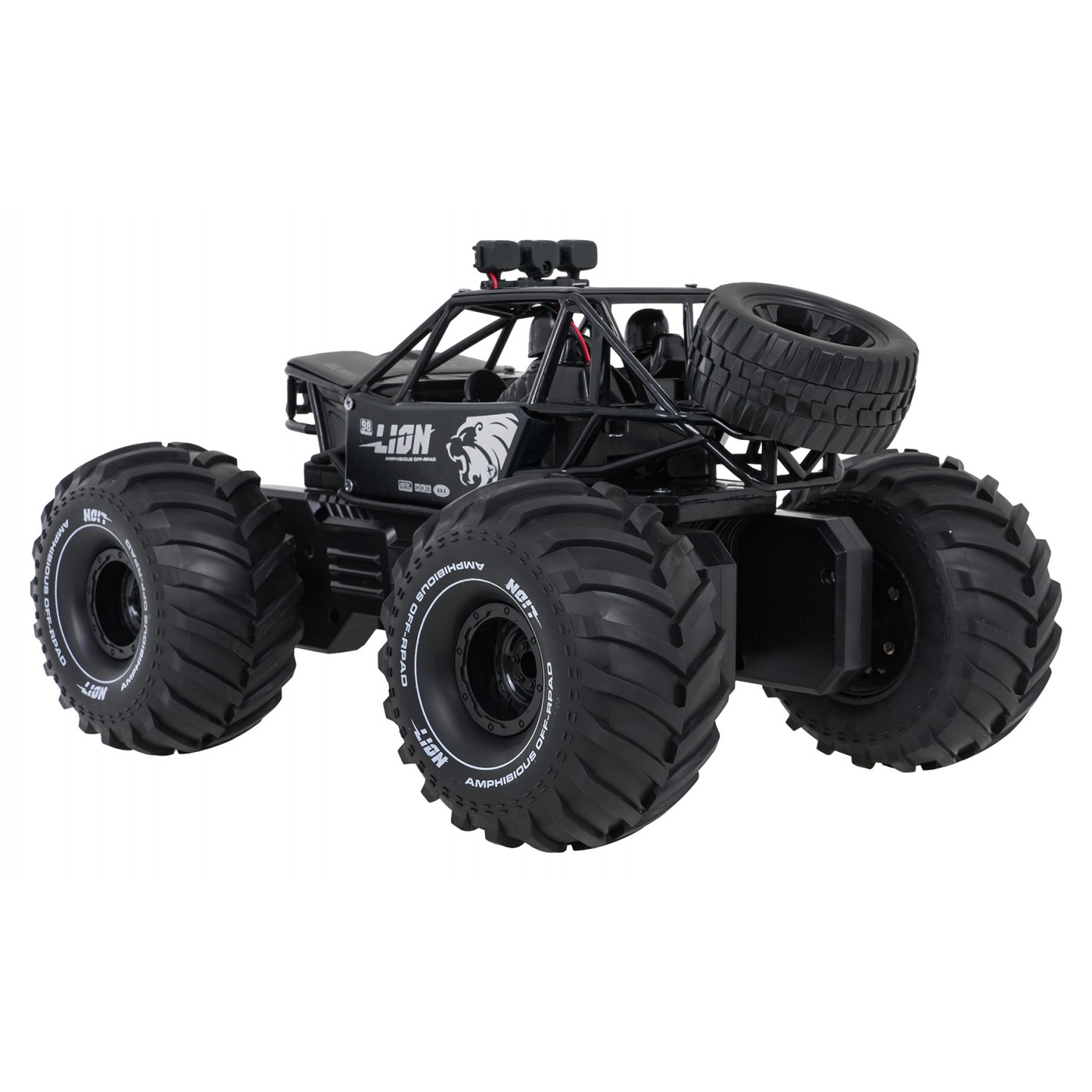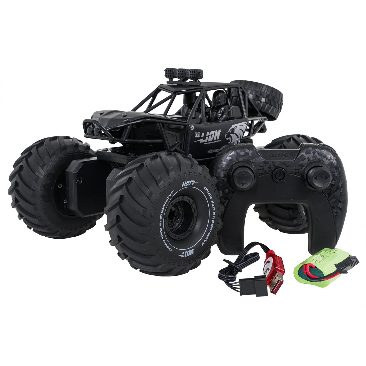 The Lion metal crawler, remote-controlled with four-wheel drive, is suitable for children aged fourteen and over. Large, non-slip rubber tires facilitate driving in all conditions and provide excellent grip. The crawler is made of high-quality materials and has a metal body for durability. The toy is powered by a 7.4V rechargeable battery (included), while the remote control uses 2 x AA 1.5V batteries (not included).